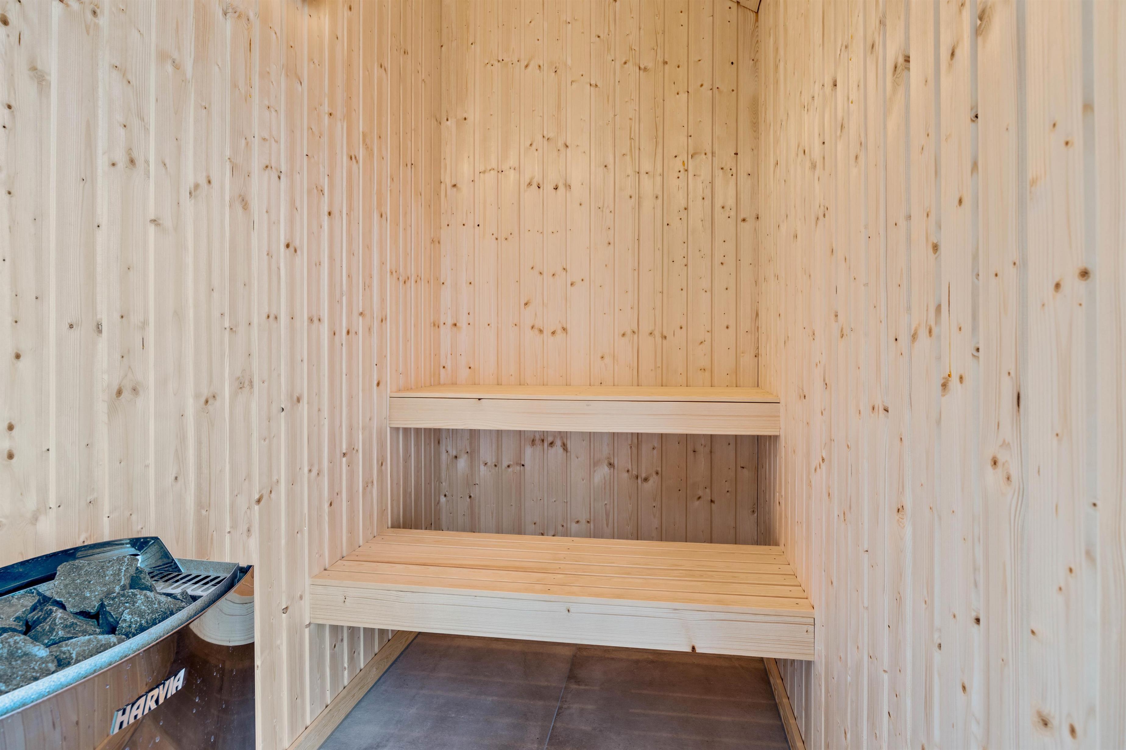 The holiday home comfortably accommodates up to 6 people across three bedrooms. One bedroom features a double bed, while the remaining bedrooms each have two single beds. The two bathrooms ensure privacy when travelling with friends or two families. A highlight of the holiday home is the double shower installed in one of the bathrooms. The private sauna provides extra relaxation.