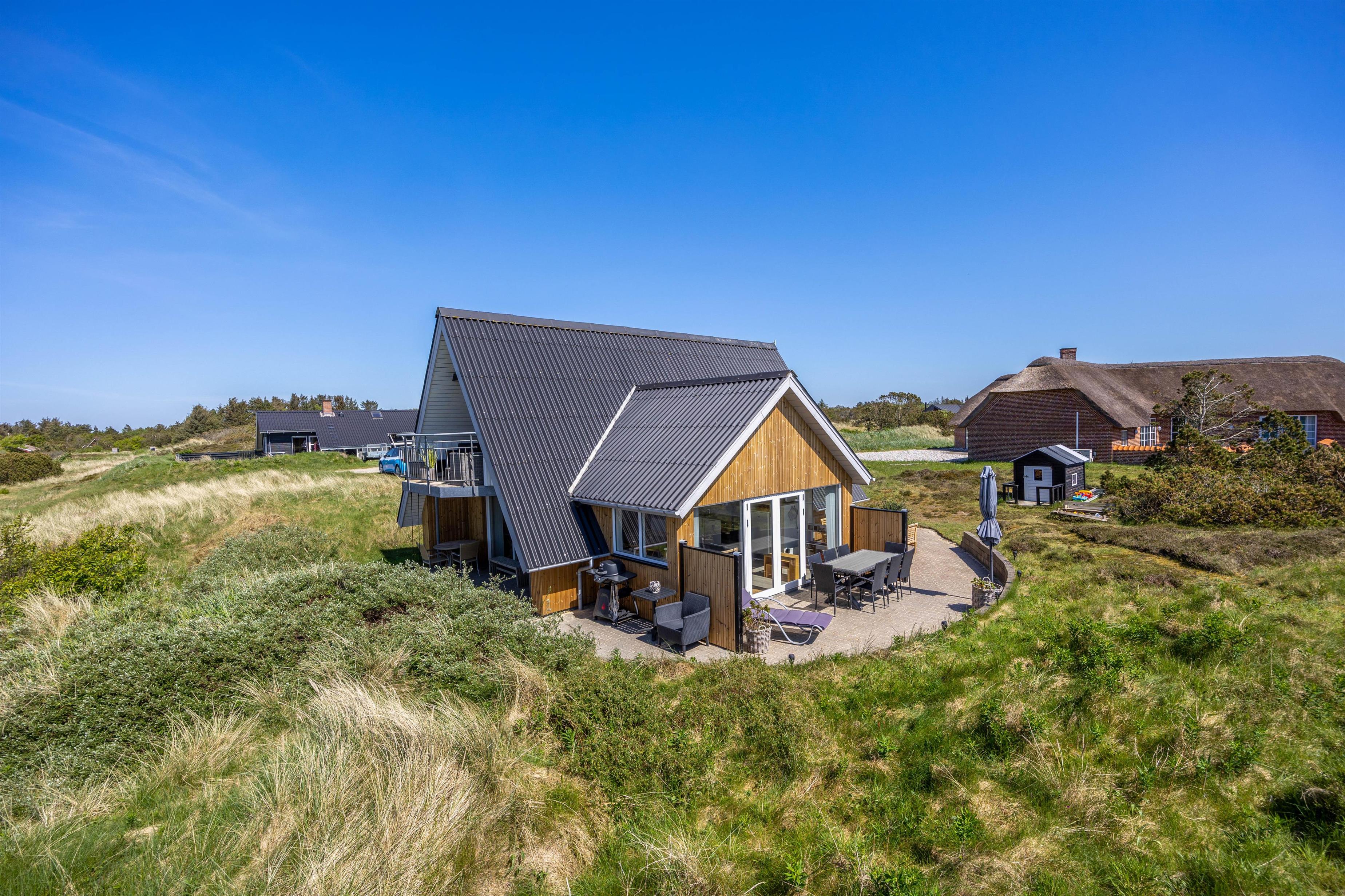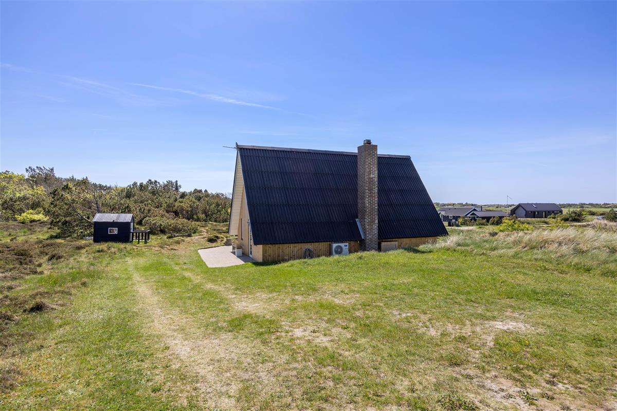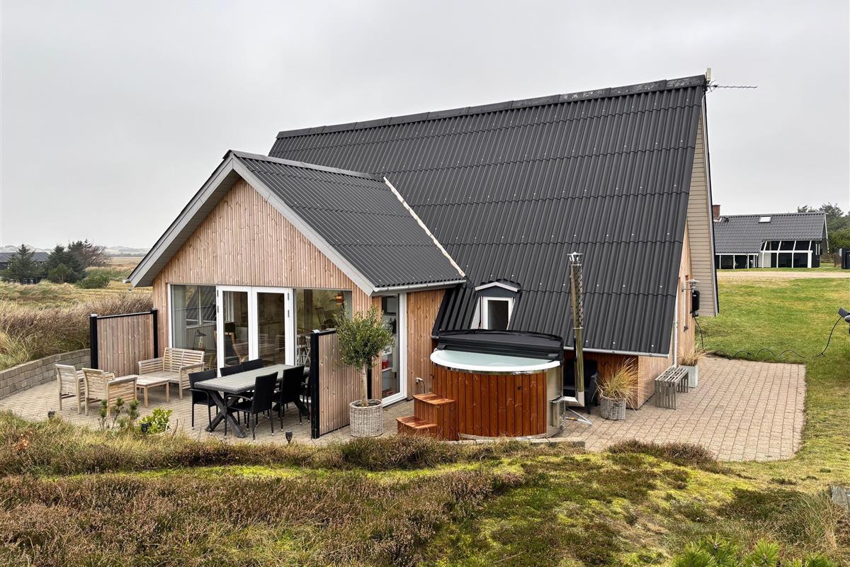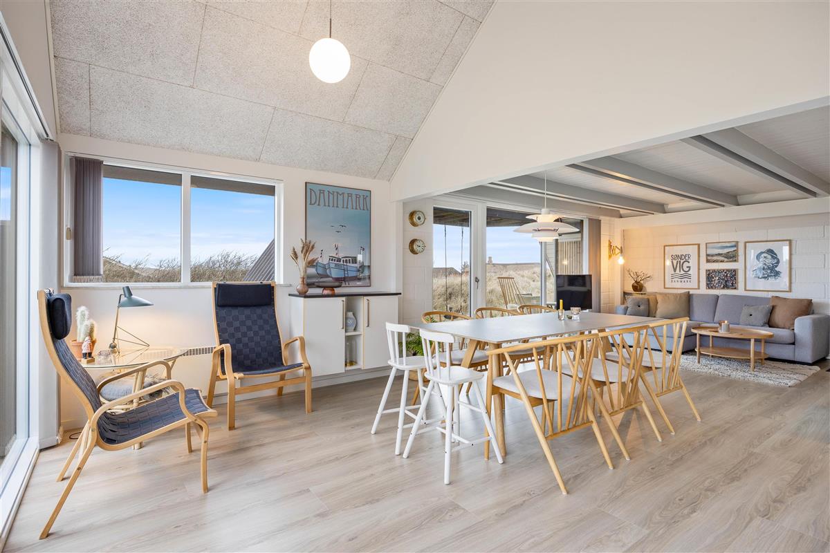Lodbjerg Hede is a small holiday home area near Søndervig, distinguished by its peaceful, secluded location. The magnificent natural beach and high dunes are just minutes away. Let yourself be captivated by the fantastic views from atop a dune and enjoy the vast expanse of beautiful nature surrounding you.
