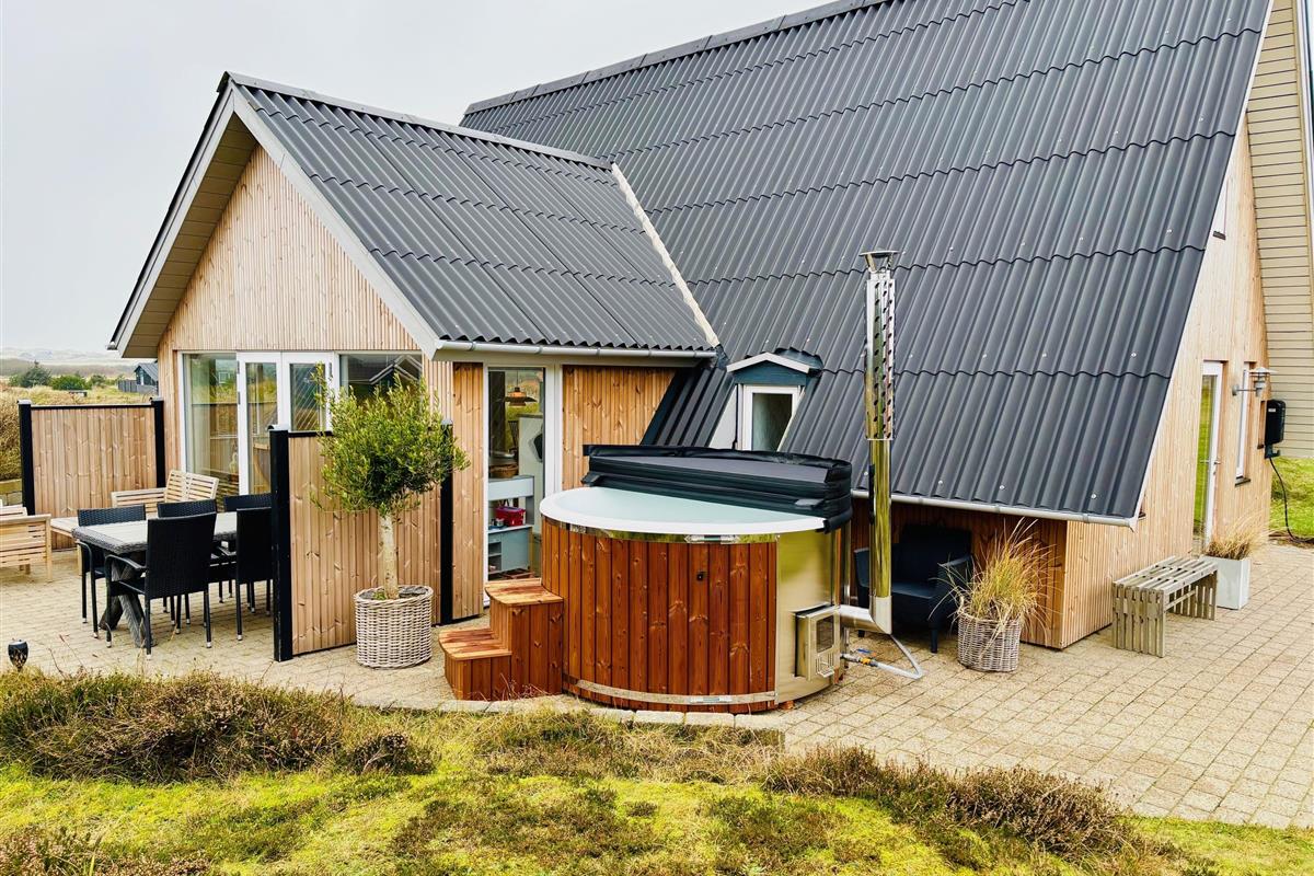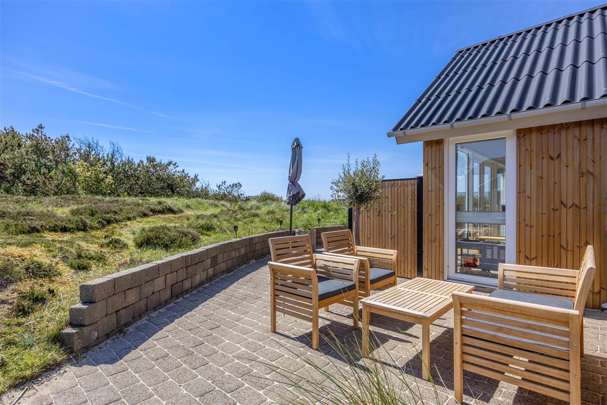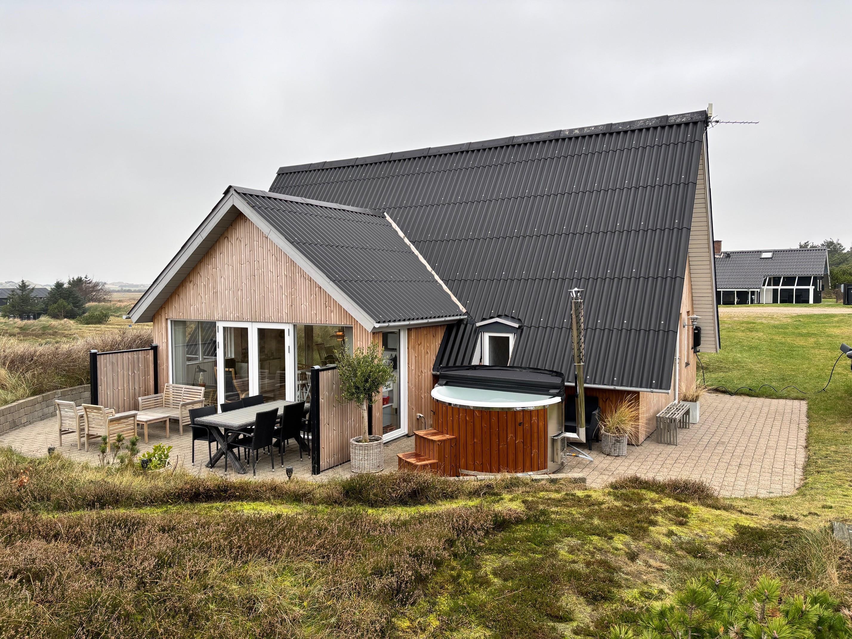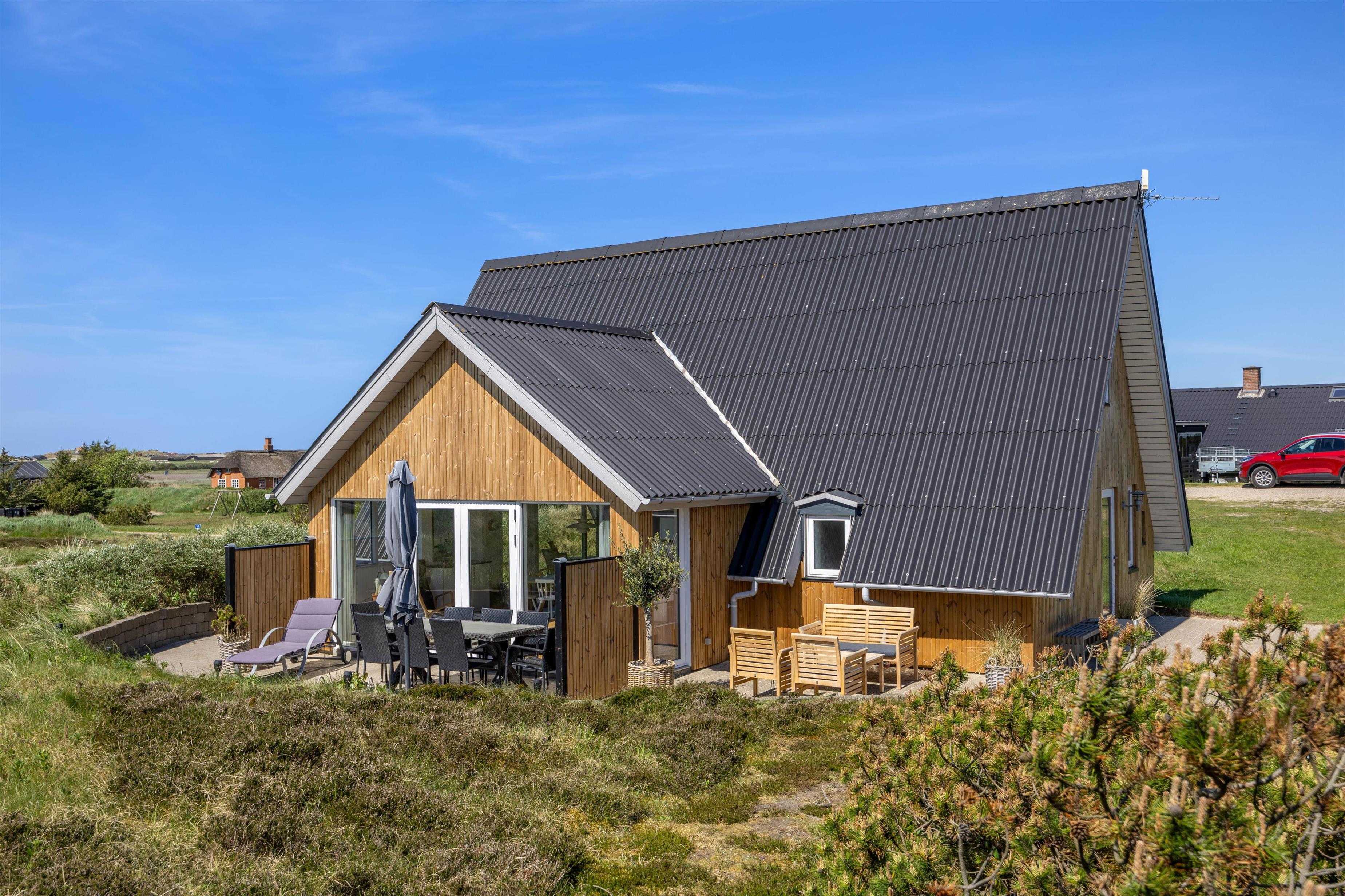 Lodbjerg Hede is a small holiday home area near Søndervig, distinguished by its peaceful, secluded location. The magnificent natural beach and high dunes are just minutes away. Let yourself be captivated by the fantastic views from atop a dune and enjoy the vast expanse of beautiful nature surrounding you.