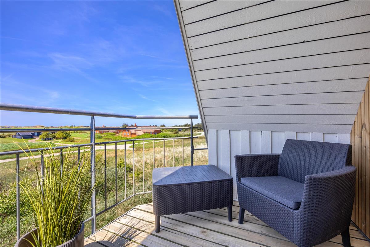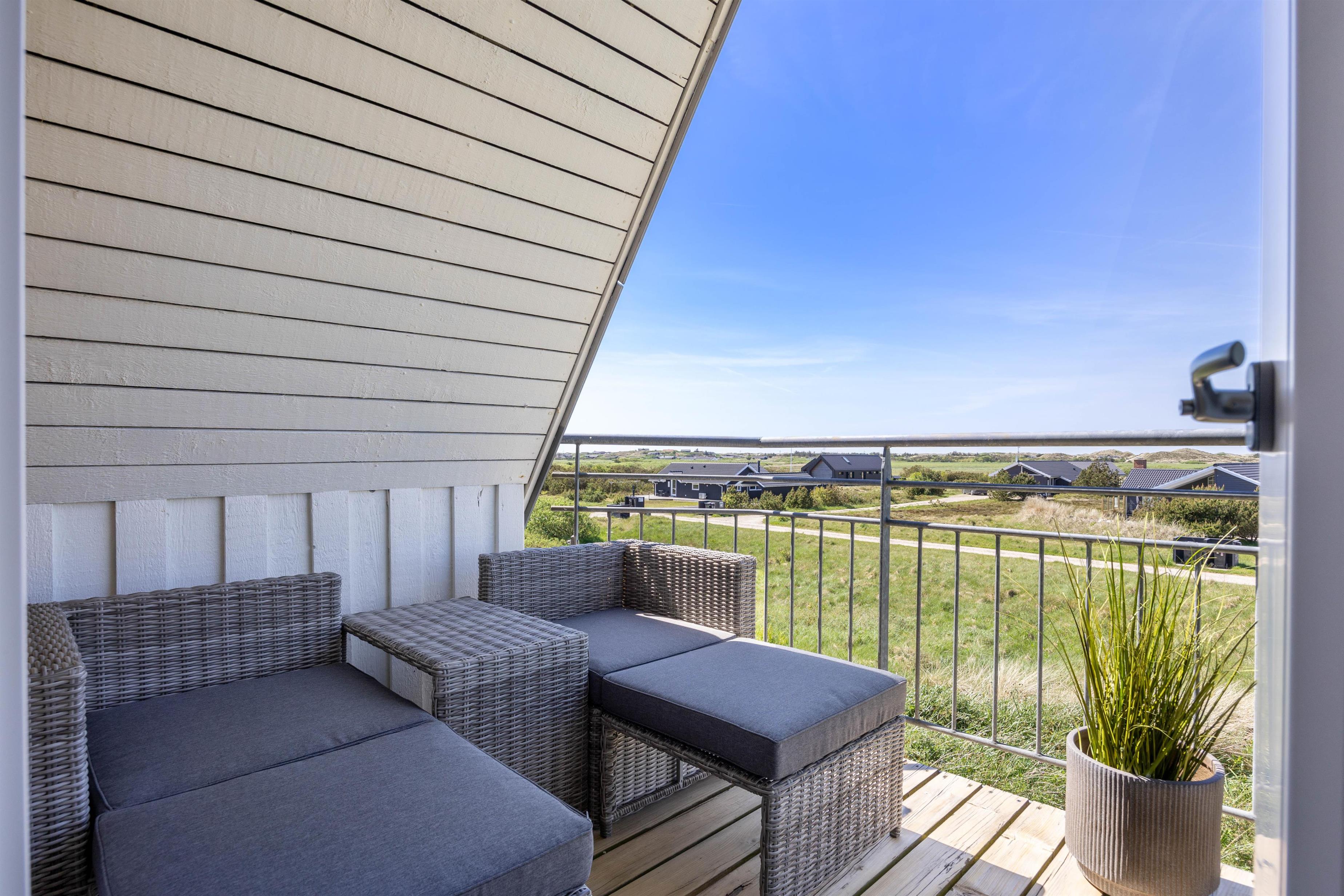 There are 3 bedrooms in total, all furnished with double beds. Two bedrooms are located on the first floor, with a balcony offering splendid views across to the dunes.