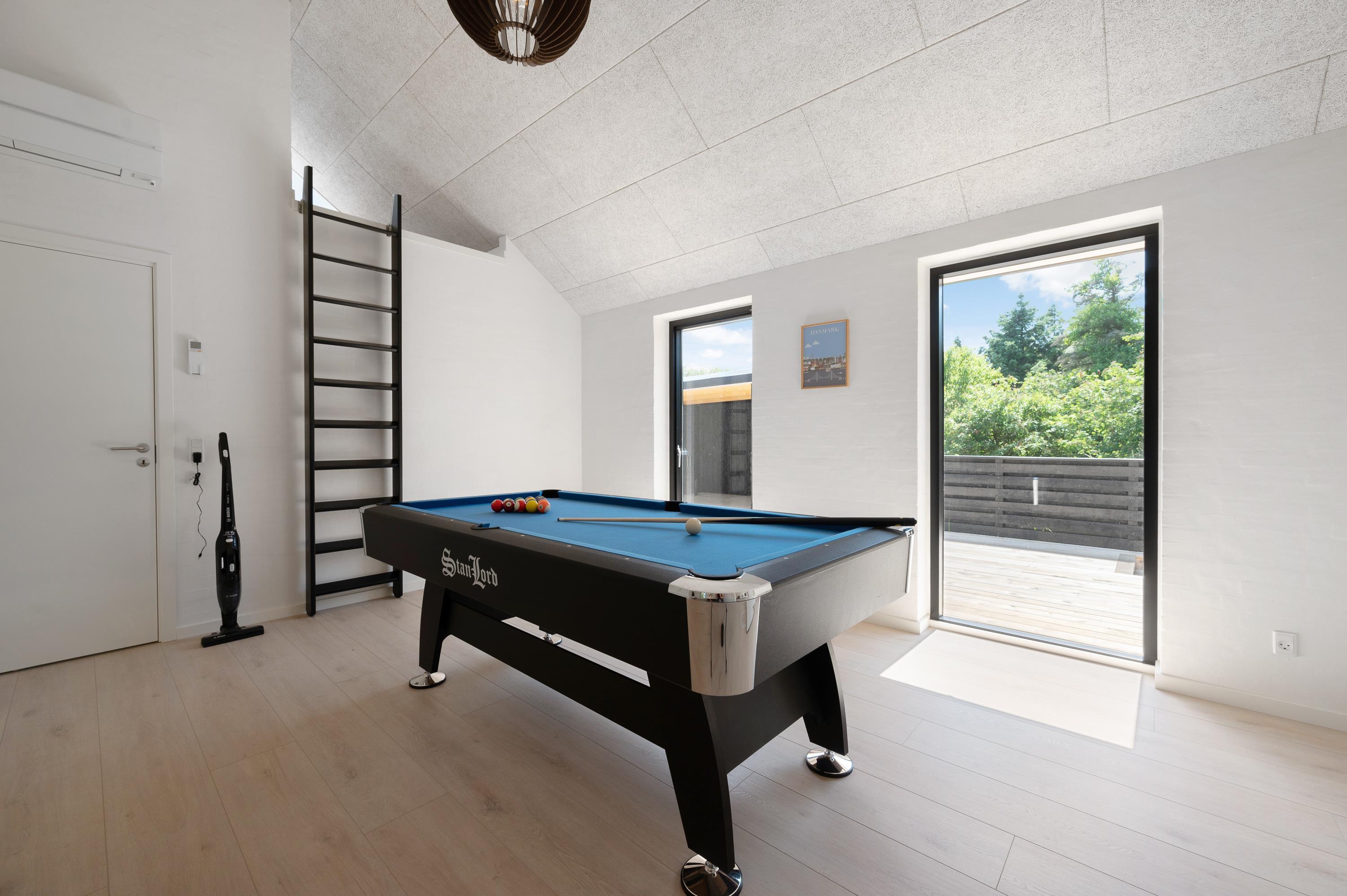 The games area offers entertainment and action for everyone. Why not enjoy a game of pool before or after dinner and find out who's champion! Chromecast is available, so you can bring your own PlayStation. While adults compete, children can romp around the large grounds and enjoy the swings. The terrace is fully enclosed, partially covered and includes a sandpit for little ones. The outdoor shower (available April-November) is perfect for cooling off on sunny days or rinsing sandy feet.