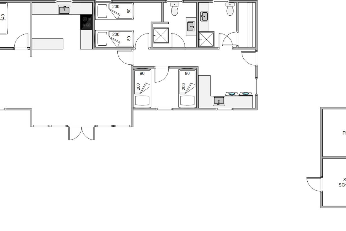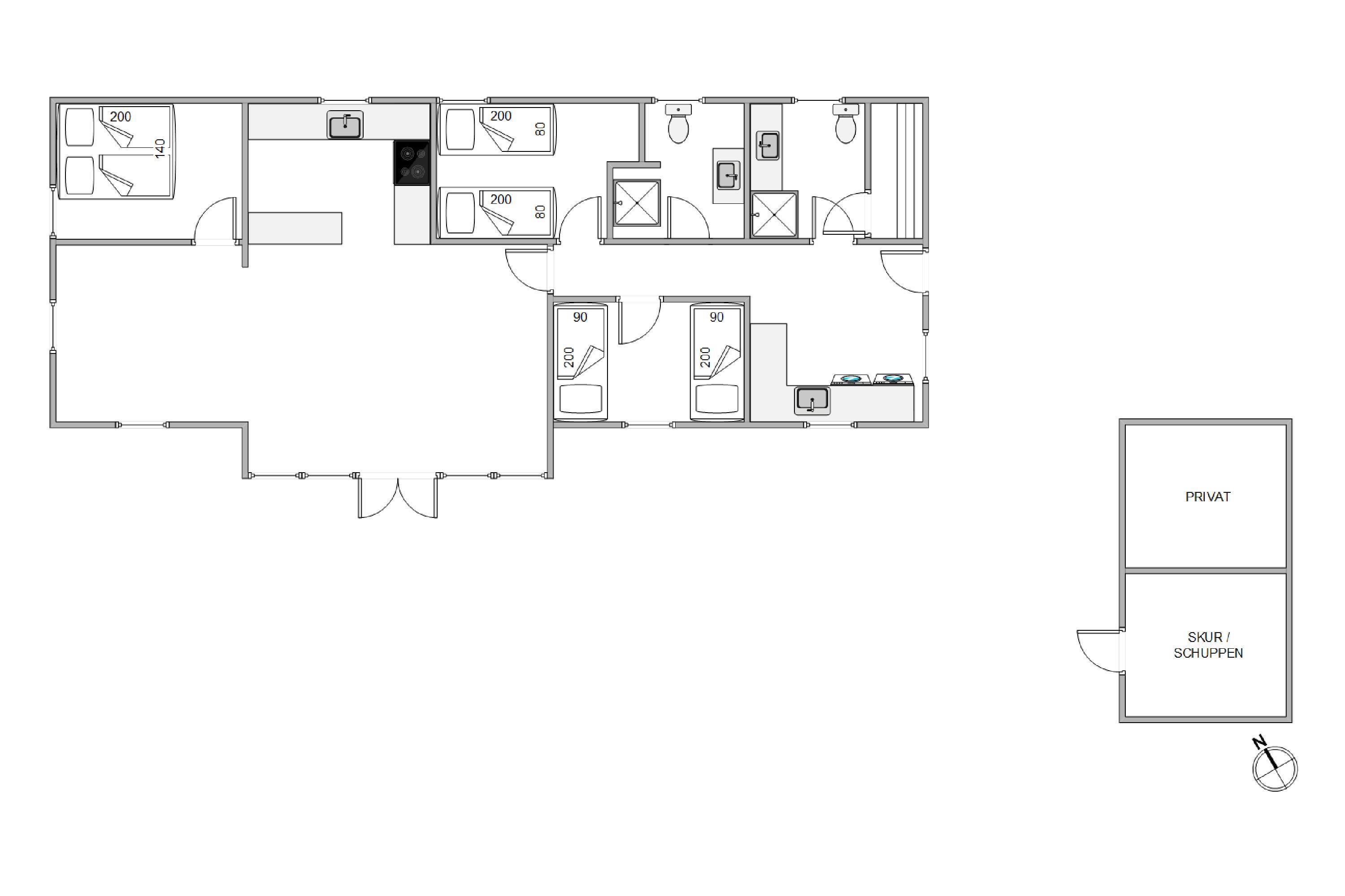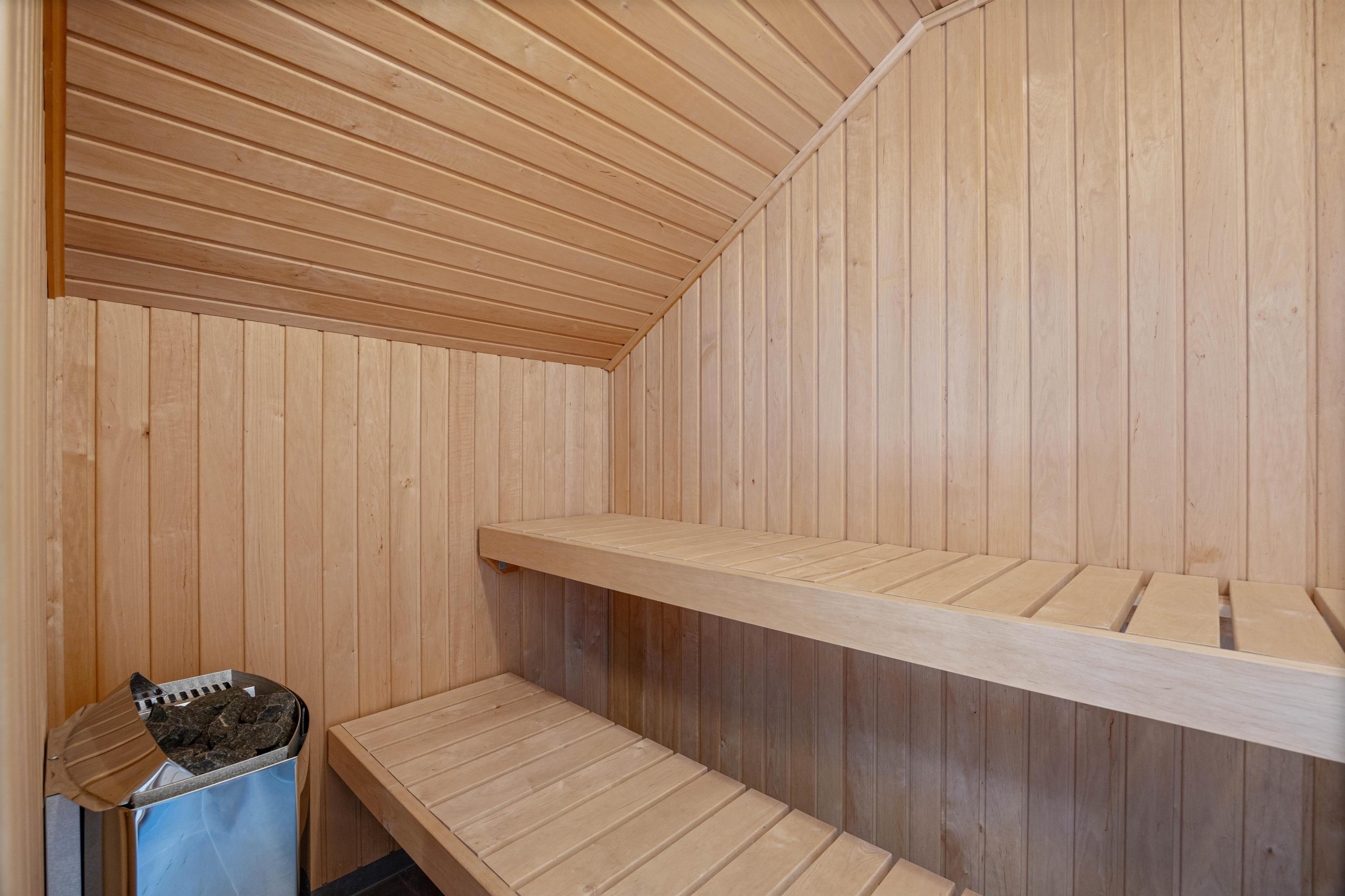 The holiday home features three beautifully furnished bedrooms: one room with a comfortable double bed and two rooms each with twin beds, promising restful nights. The two bathrooms prevent queuing even when the house is fully occupied. The integrated sauna area offers soothing relaxation after an eventful day. The washing machine and tumble dryer mean you only need to pack your favourite clothes, reducing your luggage before arrival.