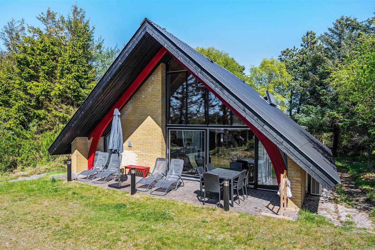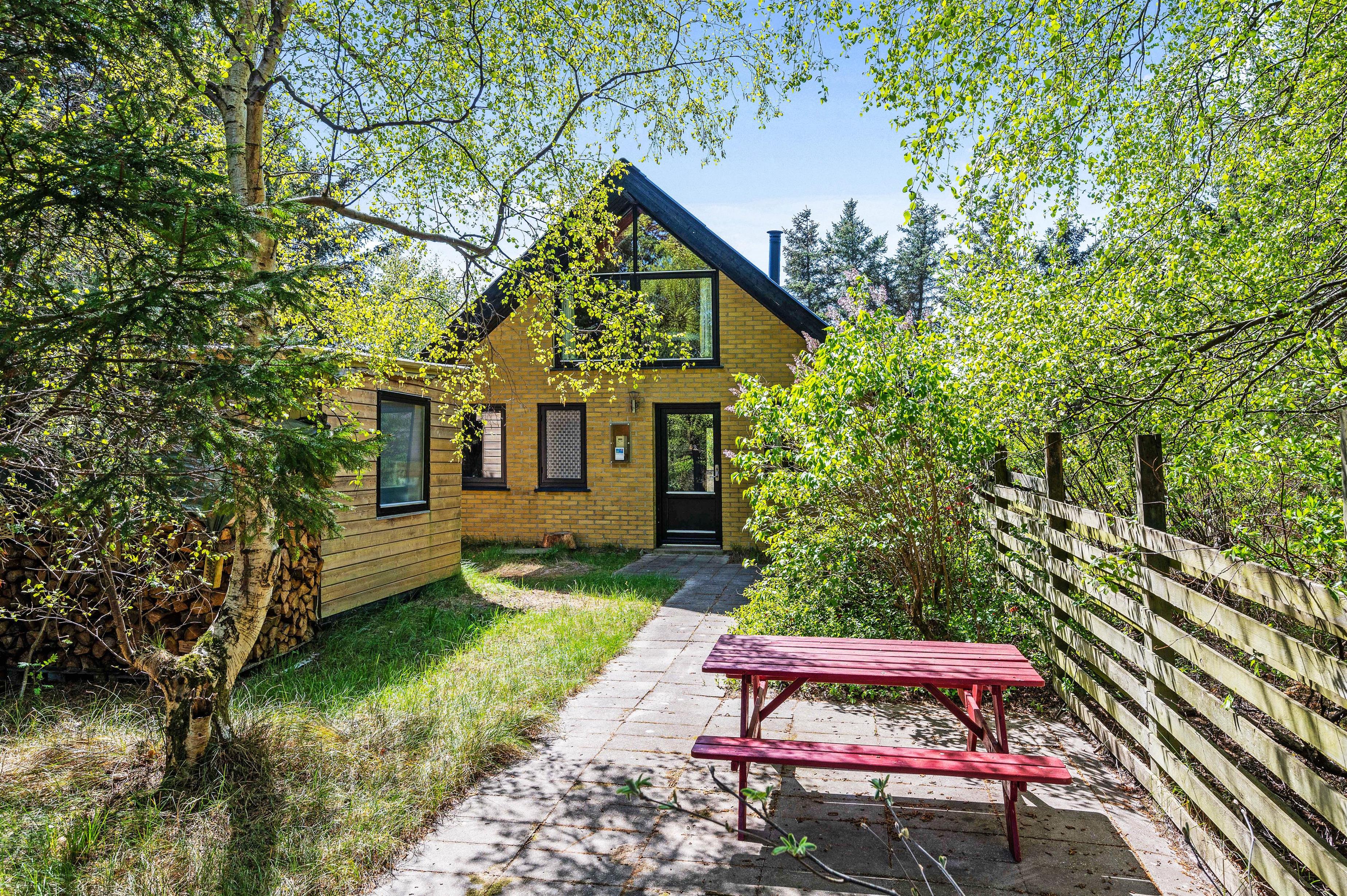 This traditional holiday home is situated on an idyllic plot surrounded by trees and shrubs, close to the fishing lake in Lodbjerg Hede. The holiday home accommodates up to 4 people and one dog. Built in the traditional Nordic single-pitch roof style, the house features rustic stone flooring throughout the living area.