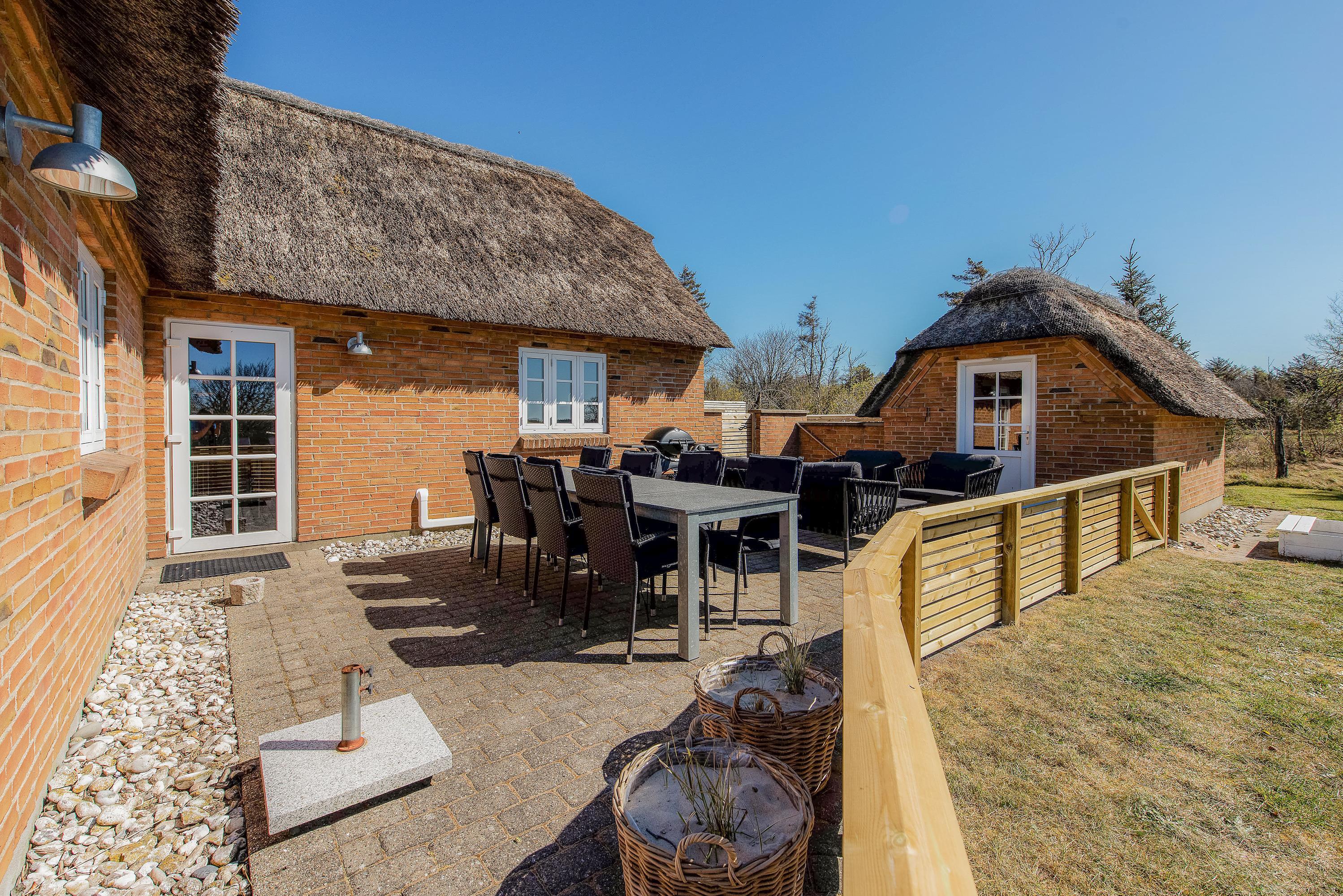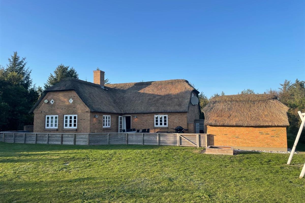 This thatched holiday home sits on a partially sheltered plot close to a golf course and put-and-take lake. The holiday home is tastefully furnished to a high standard, featuring two televisions, DVD player, sauna and two hot tubs. Dogs are welcome at this Risbjergvej 48 holiday home. Additionally, there's an electric vehicle charging point (up to 11 kWh) right at the holiday home.