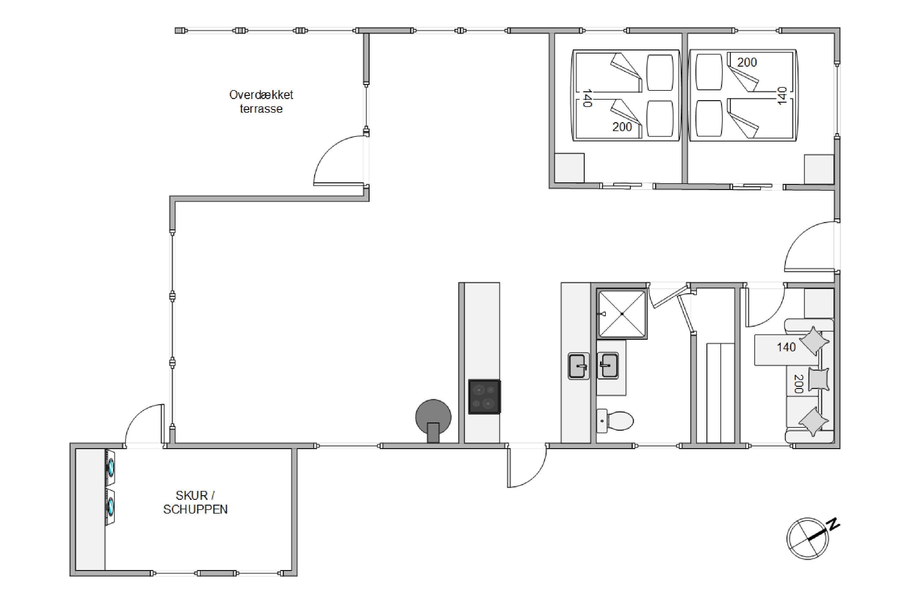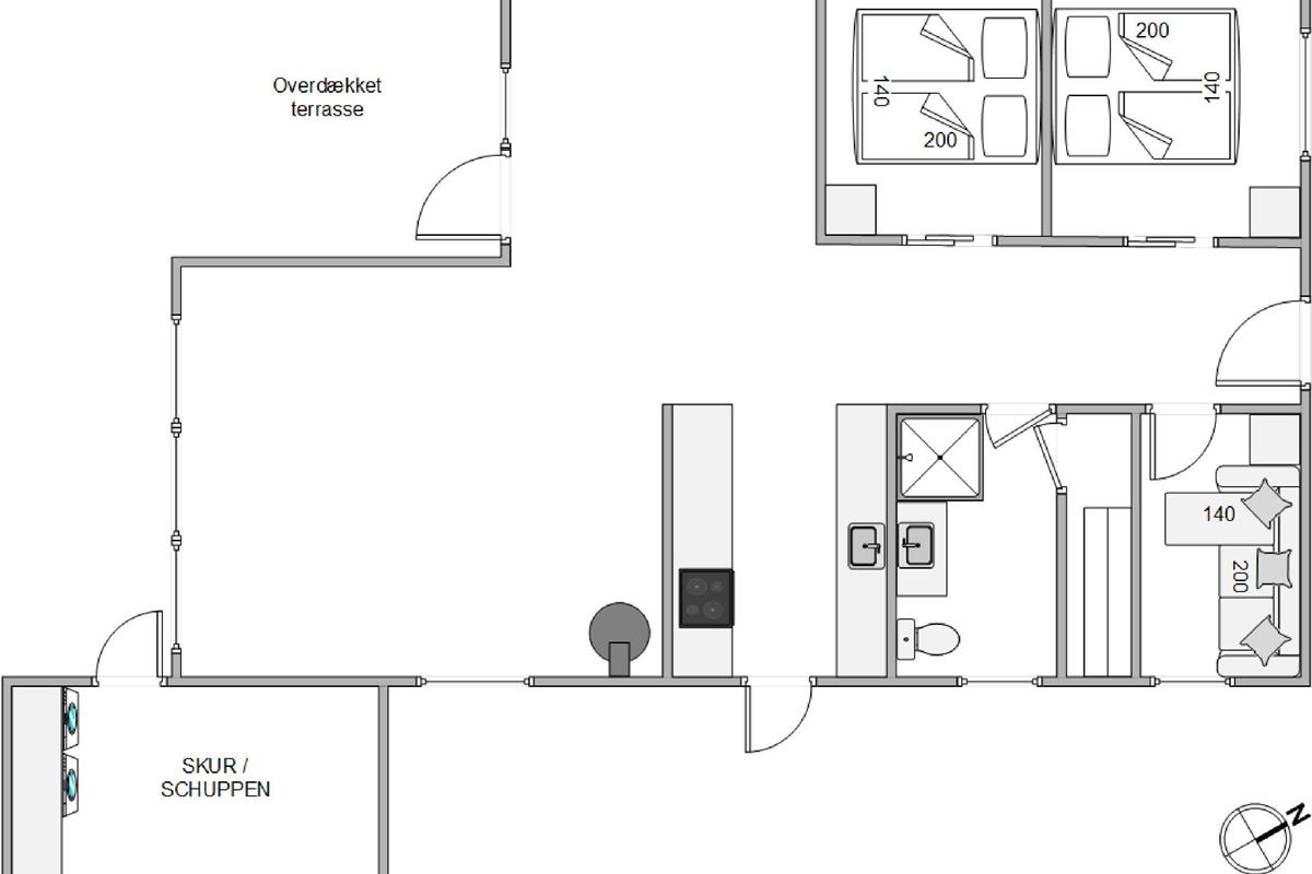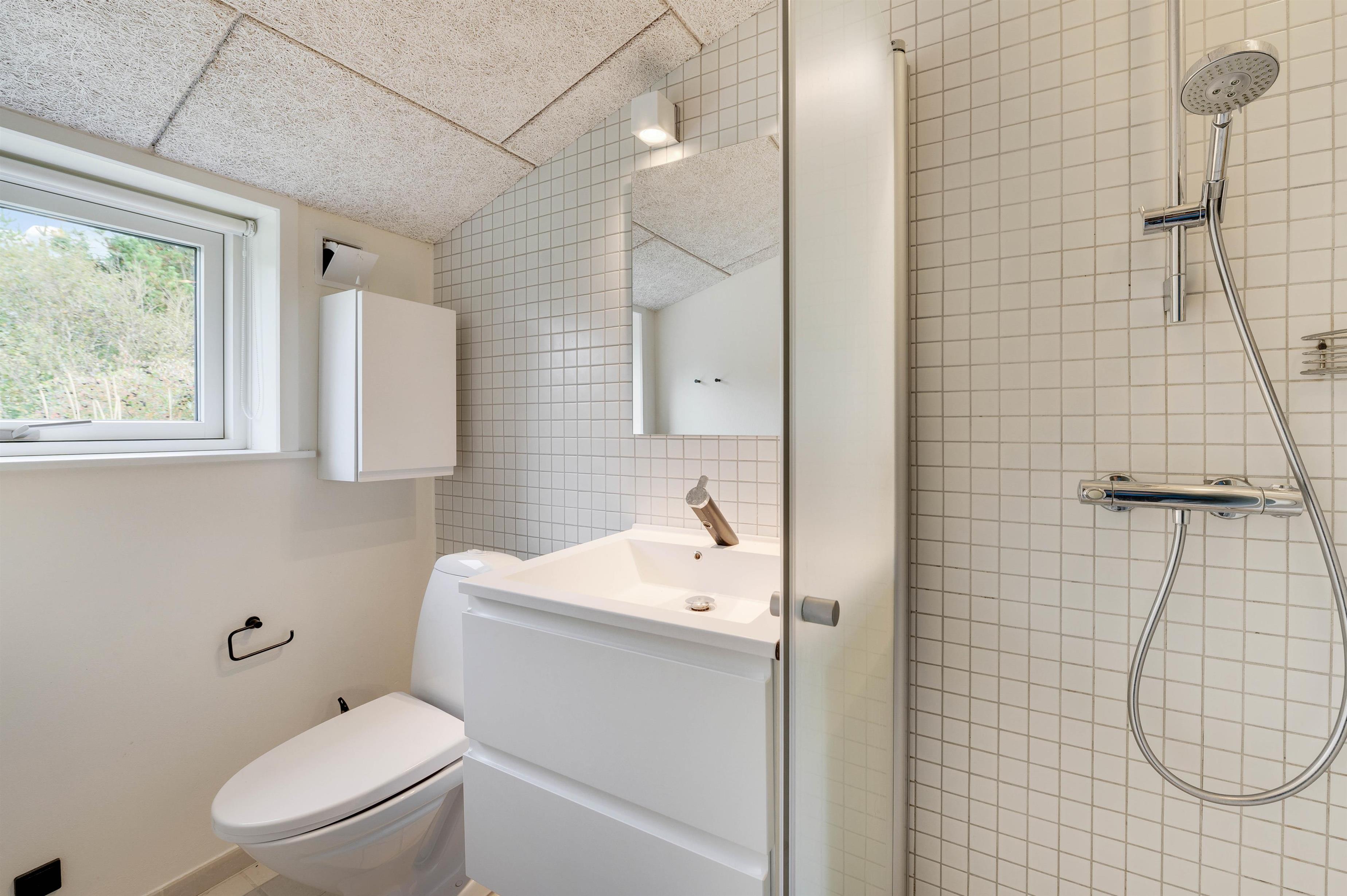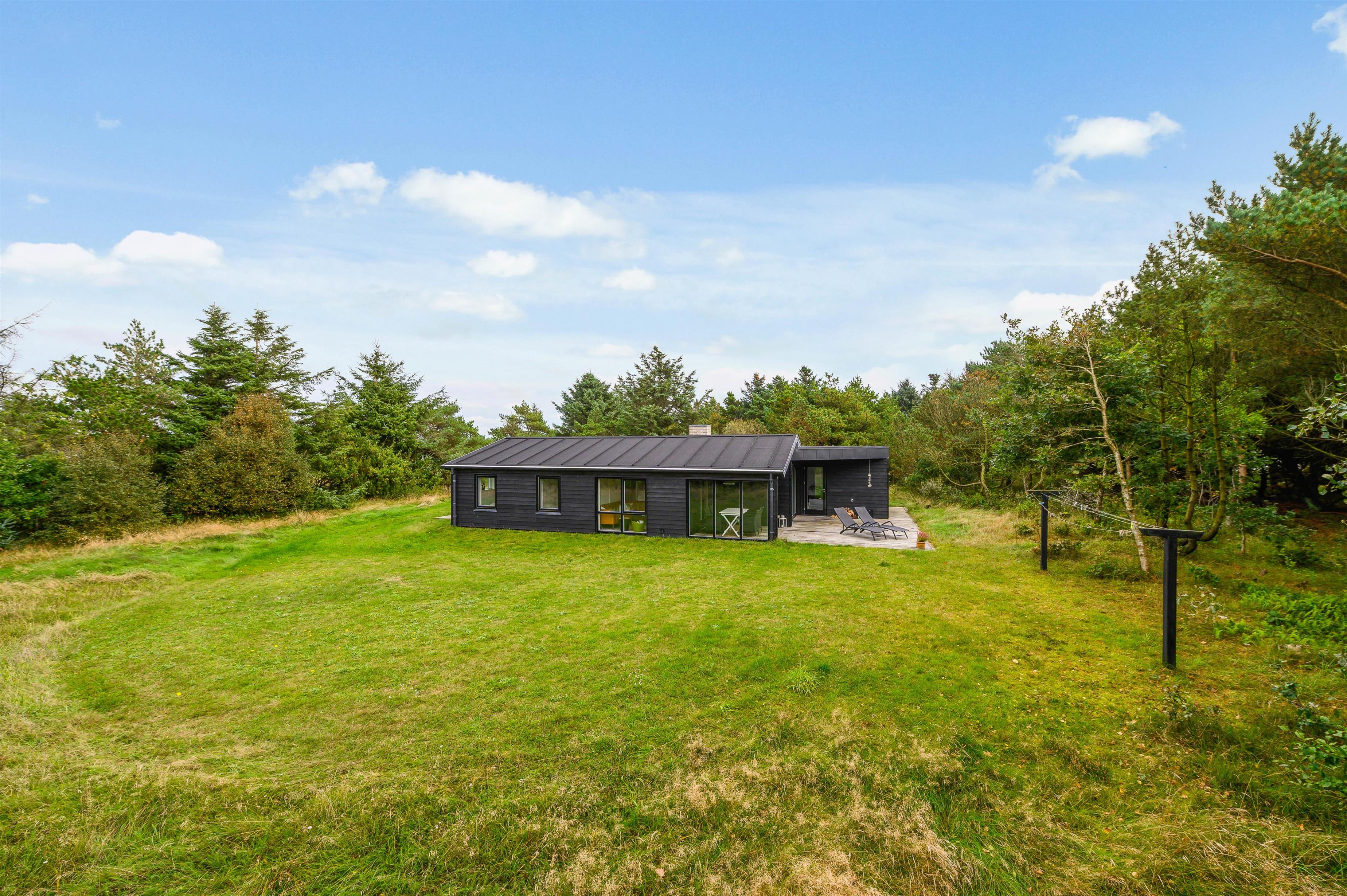 The covered and sheltered terrace offers ample protection, allowing you to enjoy your coffee outdoors even on windier days. The holiday home at Rørsangervej 15 is well-protected on all sides by tall trees and shrubs, providing several shaded spots in the garden.