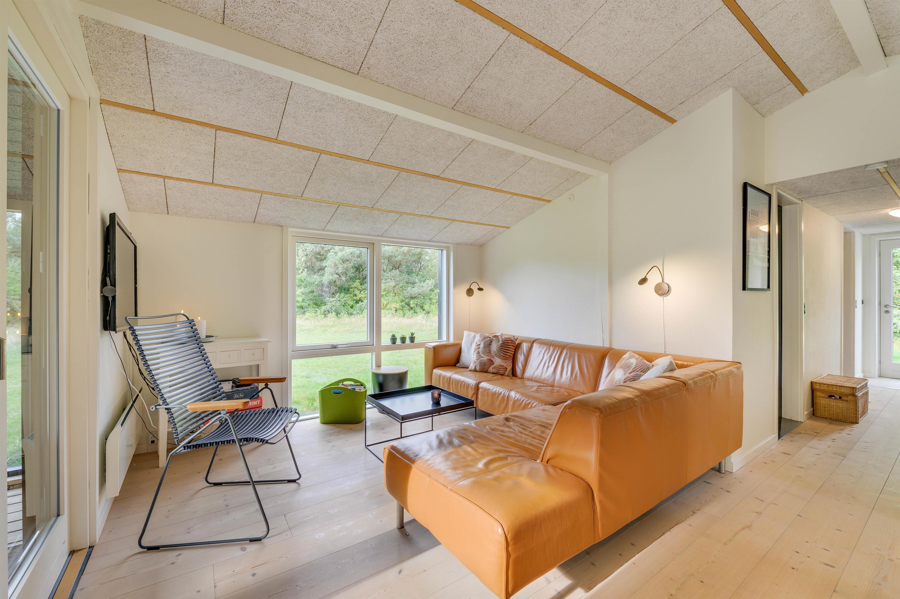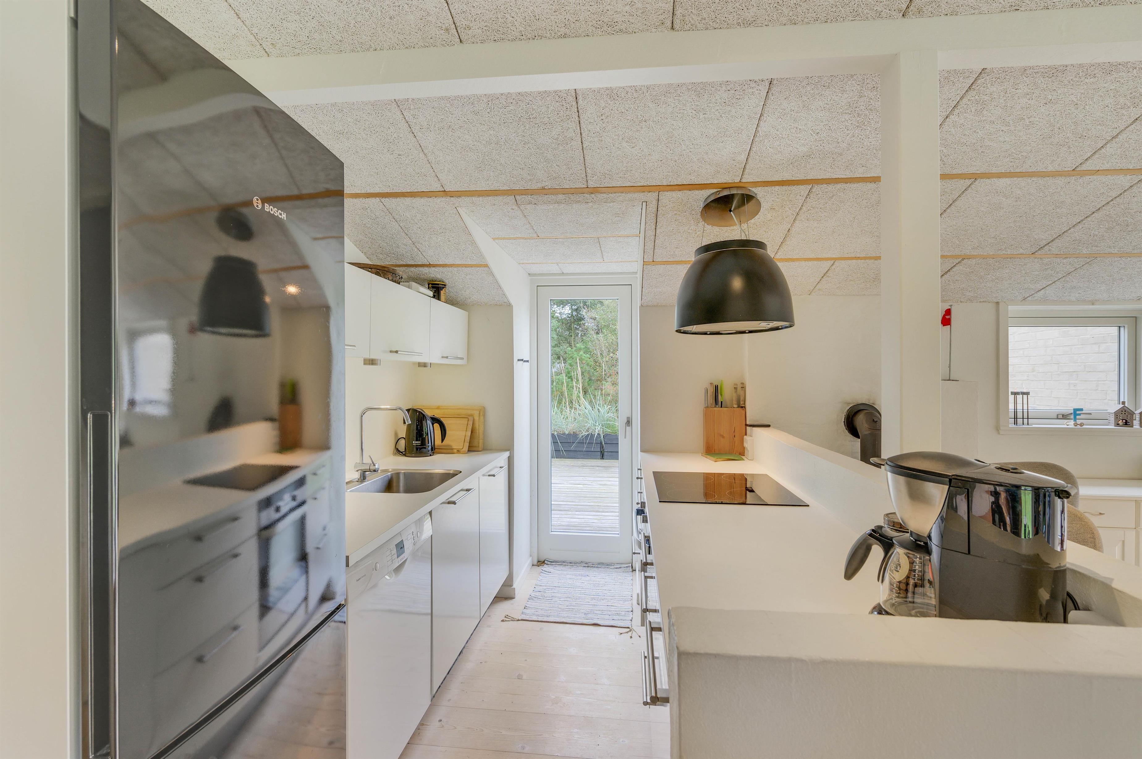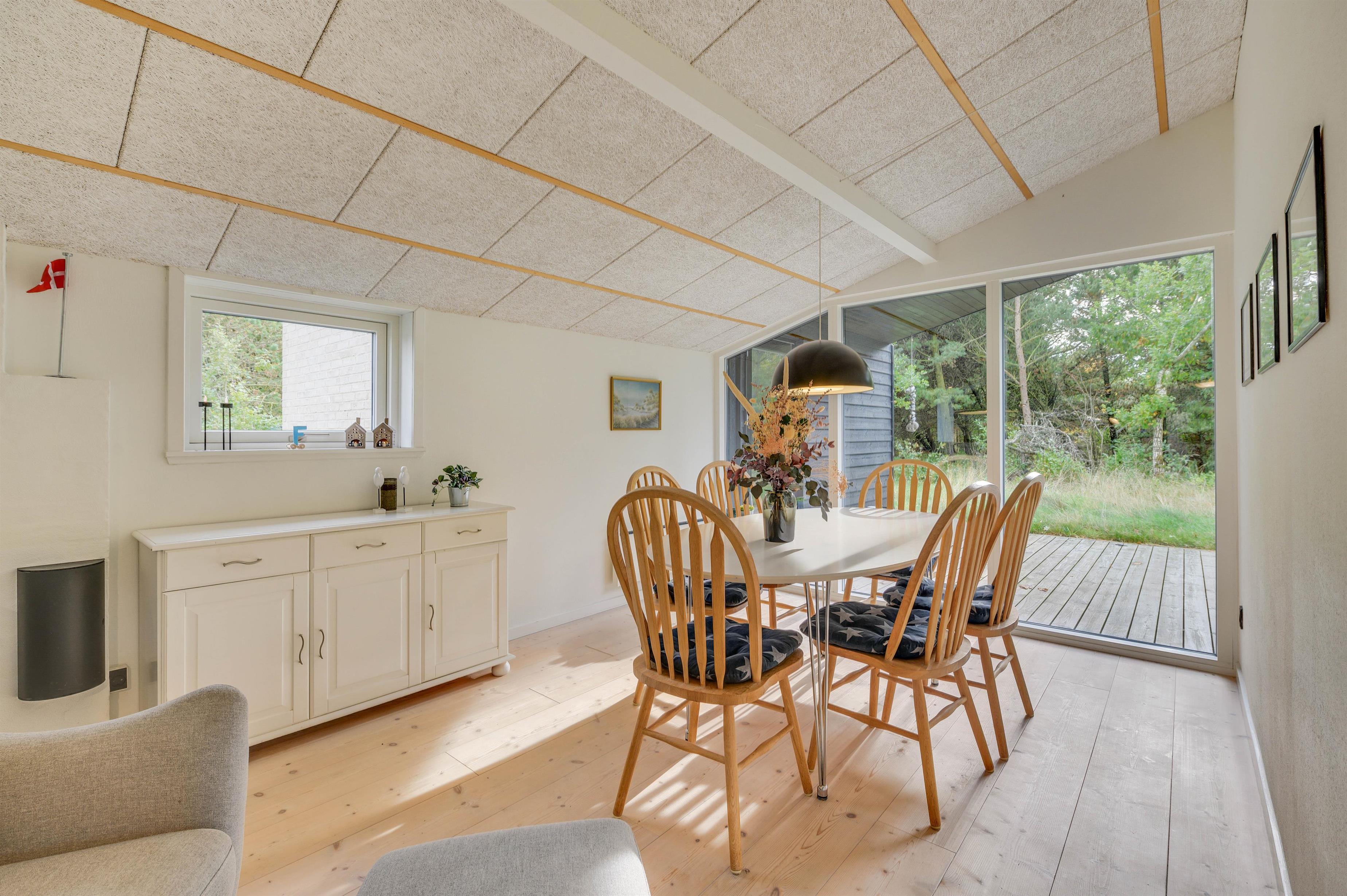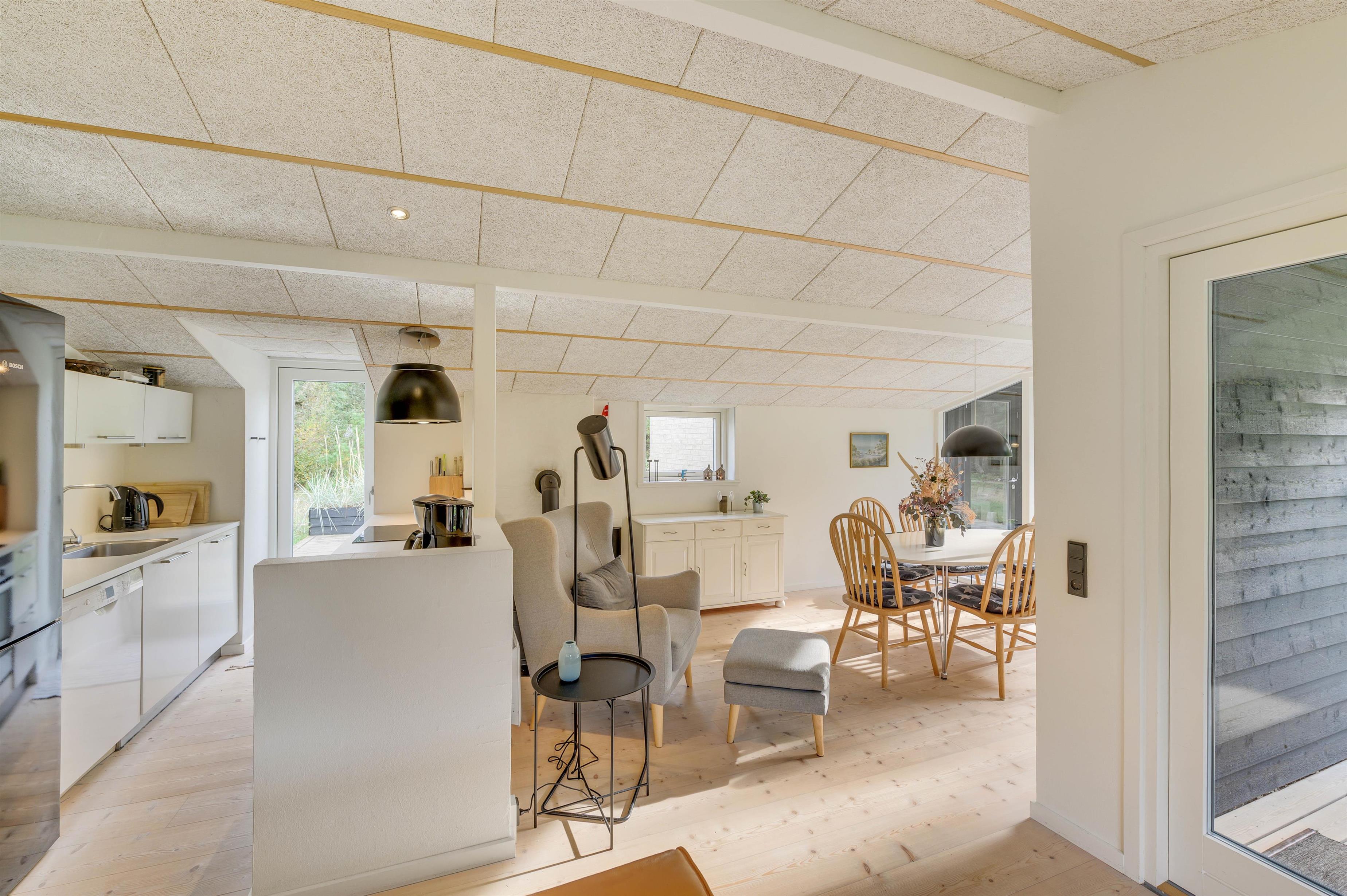 The house at Rørsangervej 15 impresses with its blend of modern and cosy touches, and you'll notice immediately that it has been furnished with great care. You're sure to feel at home within minutes. The open-plan living and dining area with integrated kitchen offers plenty of space for the whole family to spend time together. The kitchen is well-equipped with everything you'll need for your holiday. After a delicious evening meal, the dishwasher takes care of the cleaning up, leaving time for relaxation. Make yourself comfortable on the sofa, light the wood-burning stove and unwind completely.