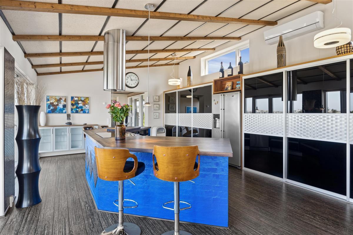 The large open kitchen-dining area is the heart of the home and the perfect place to gather for cozy meals and fun times. The kitchen is fully equipped with modern amenities, including 4 ceramic hobs, oven, refrigerator, 60-liter freezer, dishwasher, and microwave.