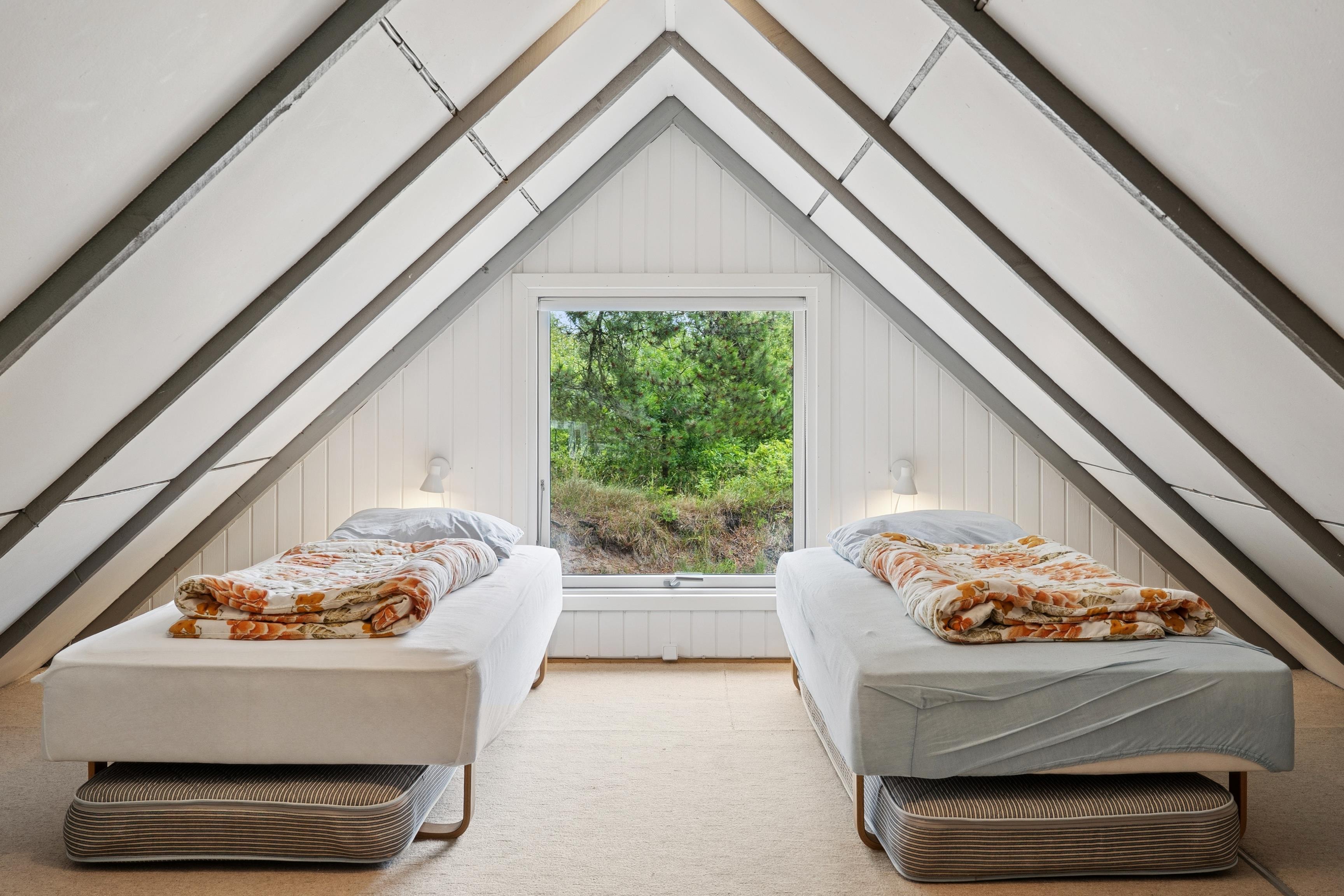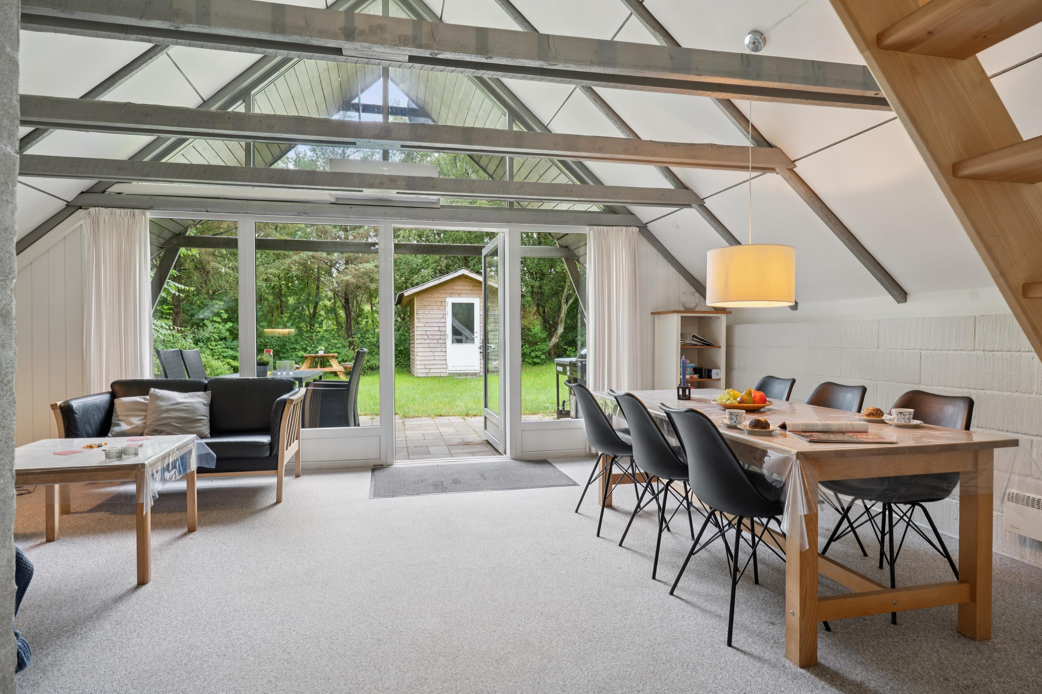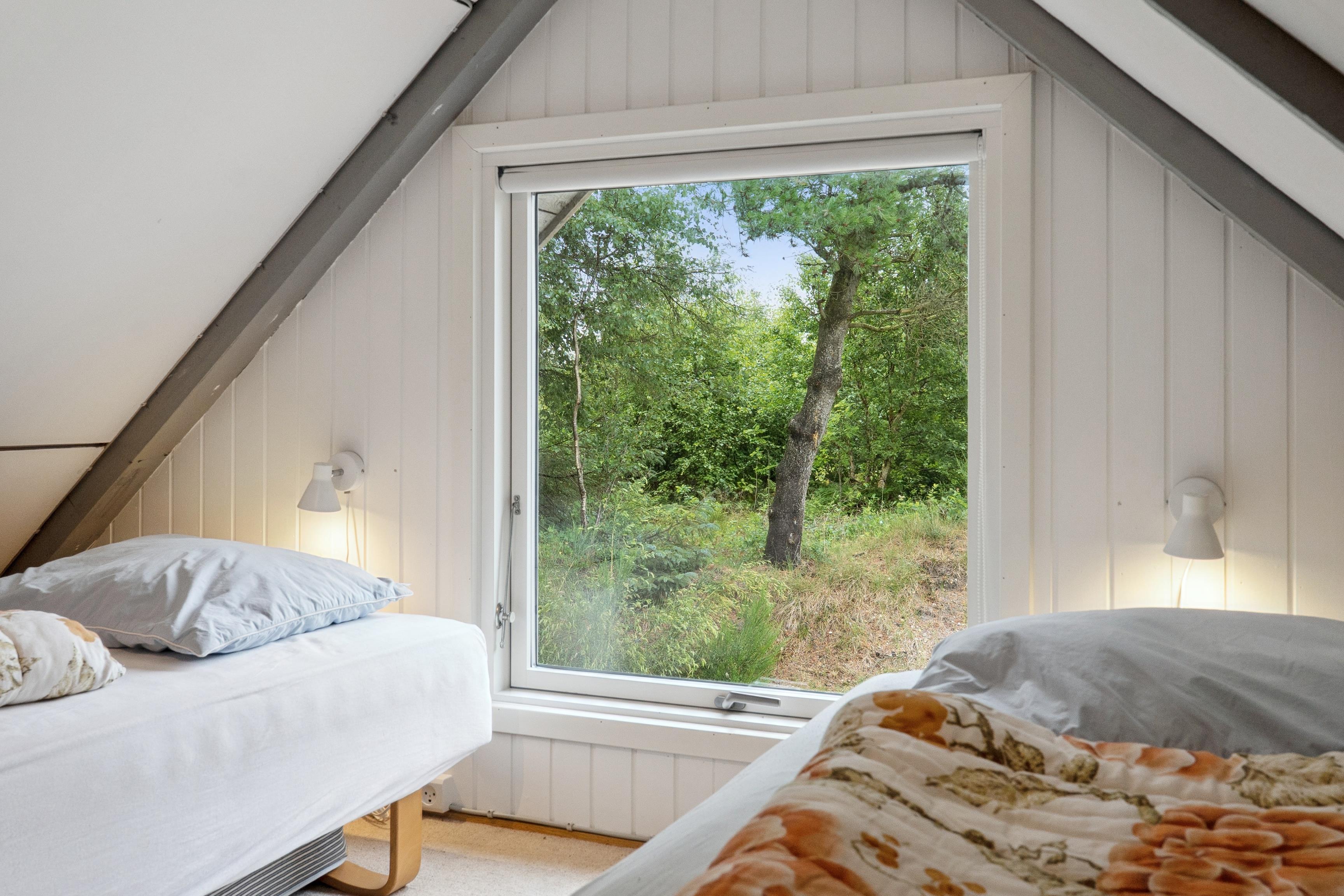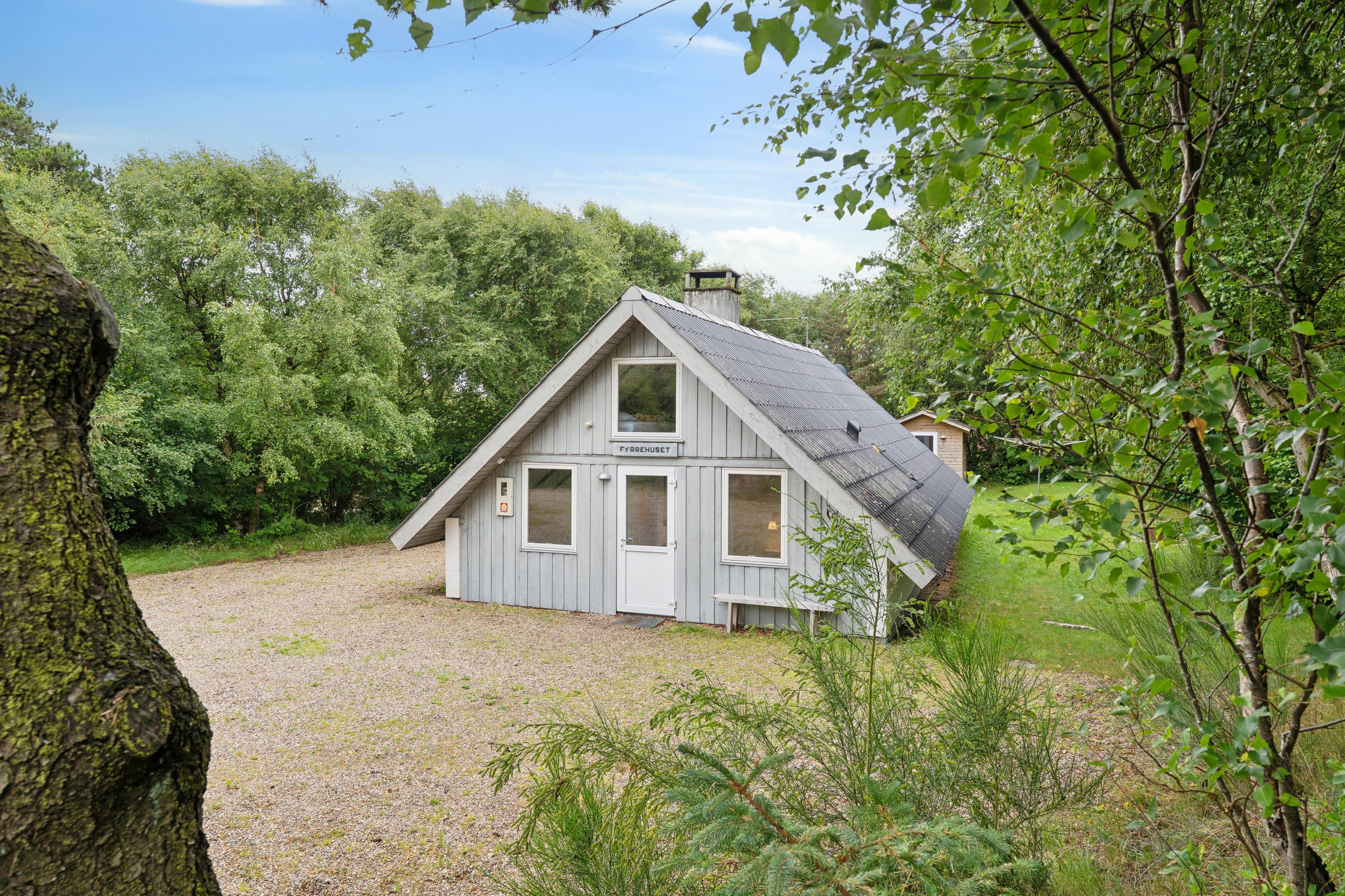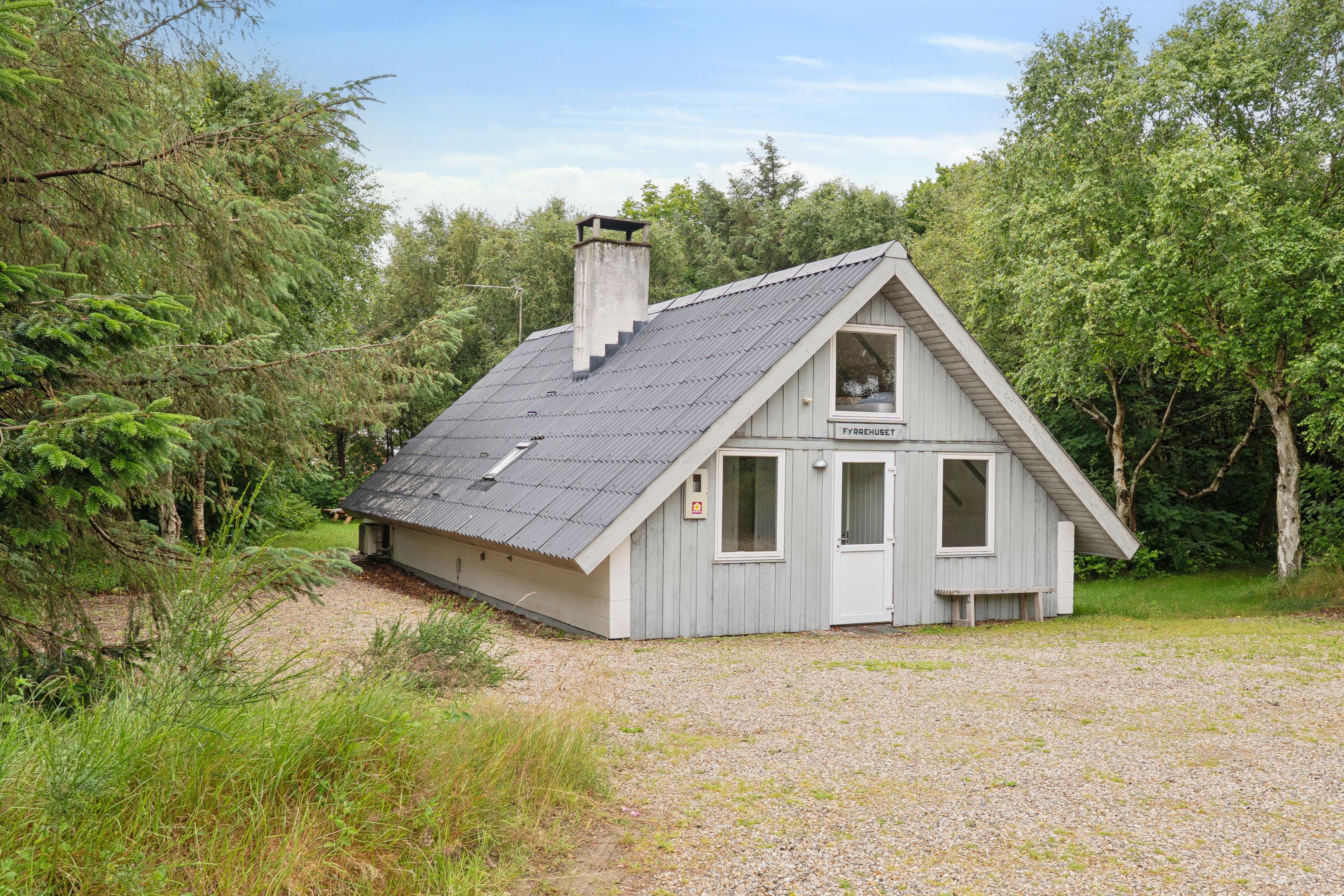 This lovely family holiday home of 68 m² is tucked away on a large natural plot in the quiet and scenic area of Lodbjerg Hede. Surrounded by trees and bushes, the house offers a private and relaxing atmosphere.