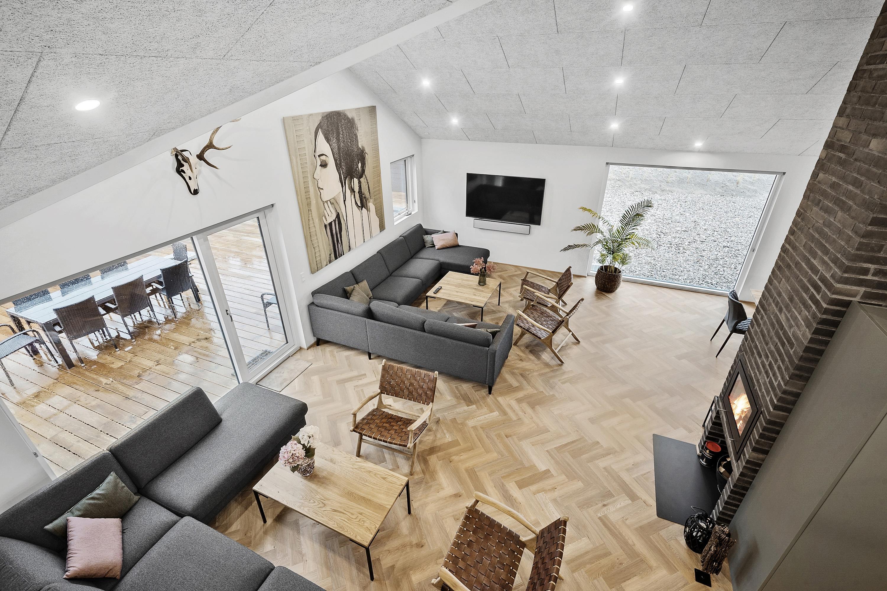 The holiday home has no less than nine rooms and six loft areas, accommodating up to 30 adults and two children up to three years old. With a size of 450 square meters and built in 2022, this is a modern and spacious vacation home. Please note that we do not allow pets. To ensure your comfort, the property features an energy-efficient air-to-water heat pump and underfloor heating throughout the house. You'll also find convenient amenities such as a washing machine, dryer, a 60-liter freezer capacity, and a cozy fireplace. If you're traveling with small children, we also provide two high chairs.
