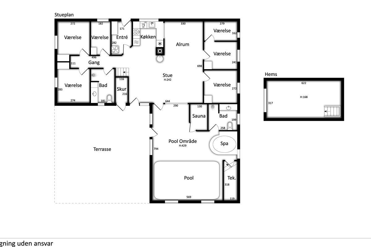 The house is energy efficient with a heat pump to heat both the pool and the living room, ensuring a comfortable indoor climate and helping to keep energy consumption down while protecting the environment.