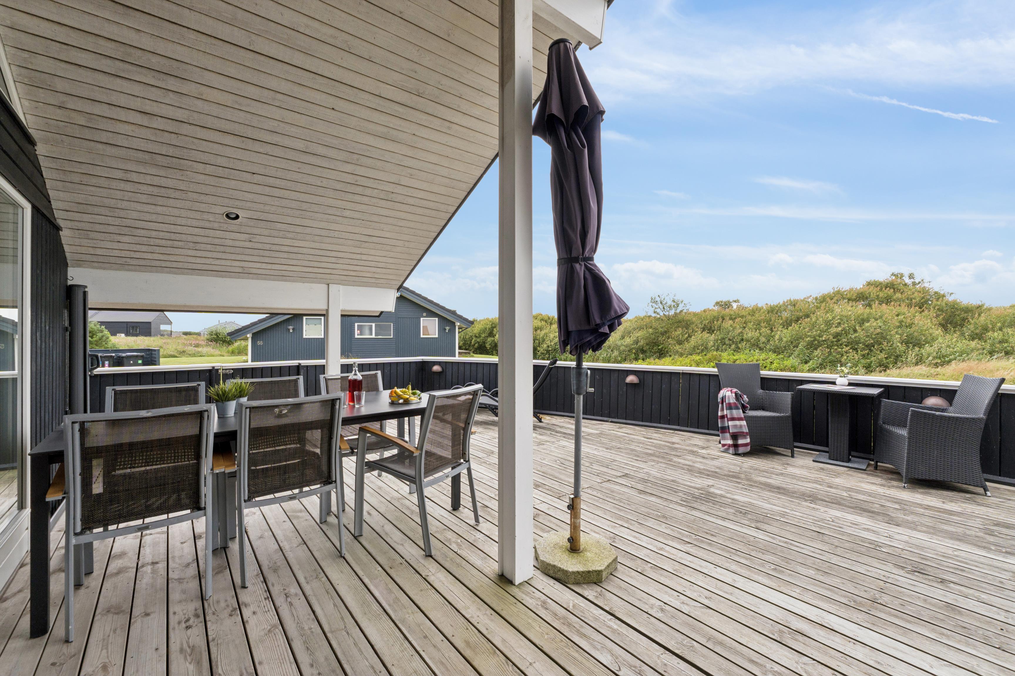 The 18-hole Holmslandklit Golf Club – with a small café – is only 2 km from the holiday home. The Lodbjerg Hede Ørredsø fishing lake is also within easy reach, as it is only 200 m from the house. Enjoy the beautiful nature around Lodbjerg Hede, which is ideal for jogging, hiking and cycling. The roaring North Sea with its long white sandy beaches and historic bunkers is also a must-see and can be explored on a walk along the beach. Ringkøbing Fjord offers numerous water sports such as surfing, kitesurfing, stand-up paddleboarding, etc.
