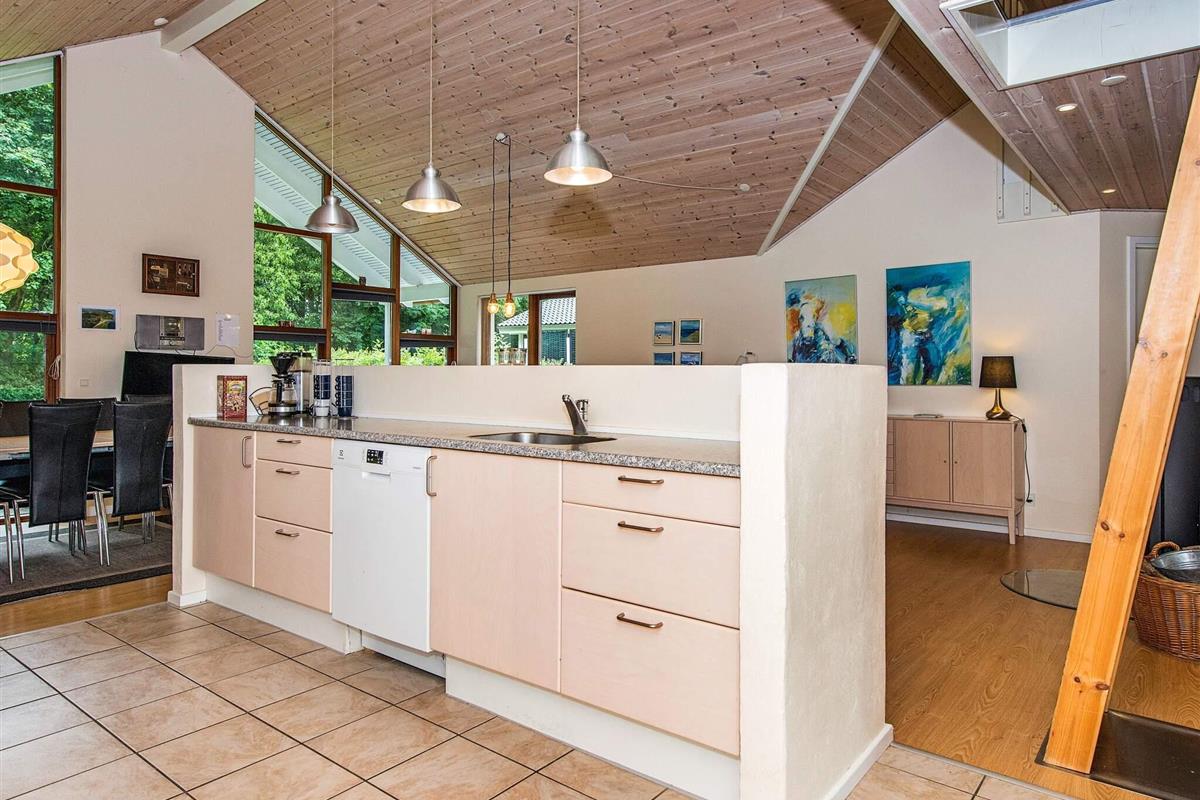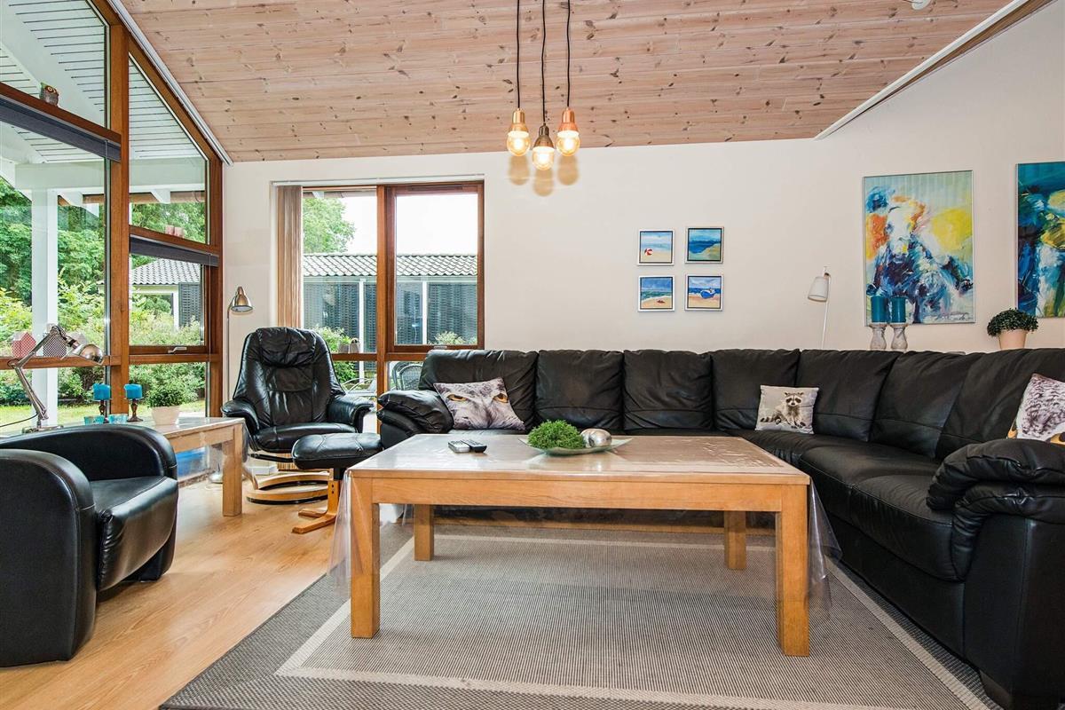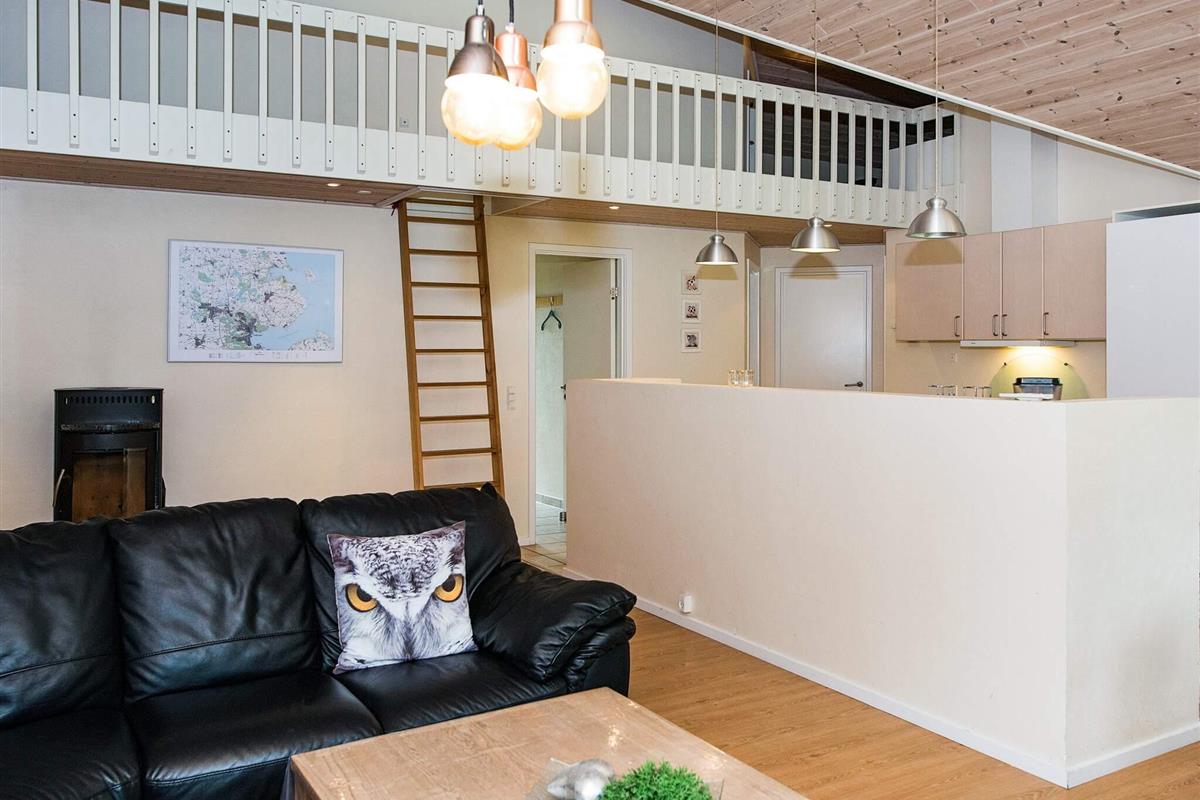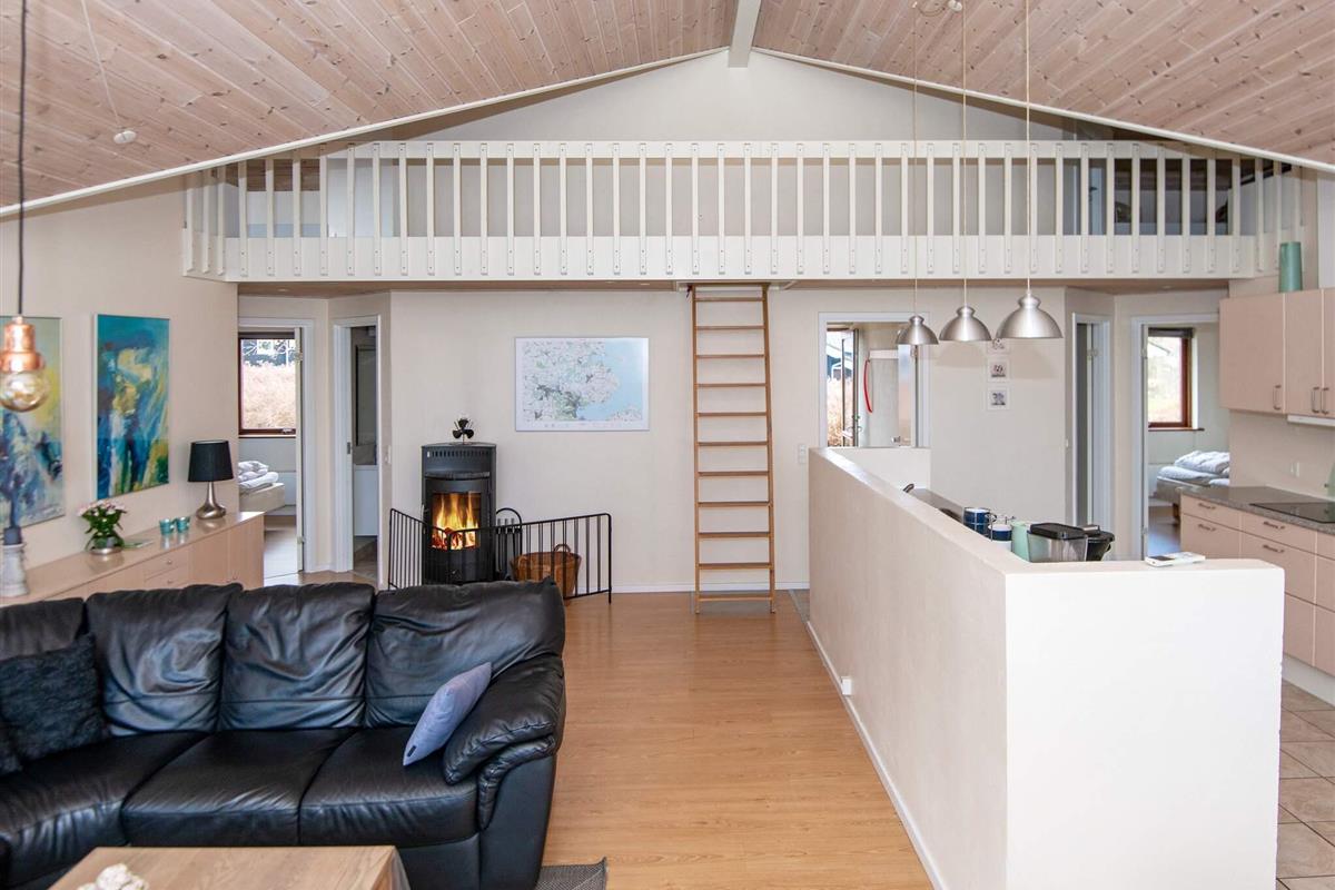 Dieses Ferienhaus liegt in dem landschaftlich reizvollen Gebiet Løjtland. Zu dem Haus gehört ein heller Aufenthaltsbereich mit einem Holzofen, der an kühleren Tagen für Wärme und Gemütlichkeit sorgt. In der Küche und in den Badezimmern gibt es Fußbodenheizung. Insgesamt gibt es vier Schlafzimmer und zwei Schlafböden. Die großen Terrassen führen um das gesamte Haus herum und bieten geschützte Ecken.