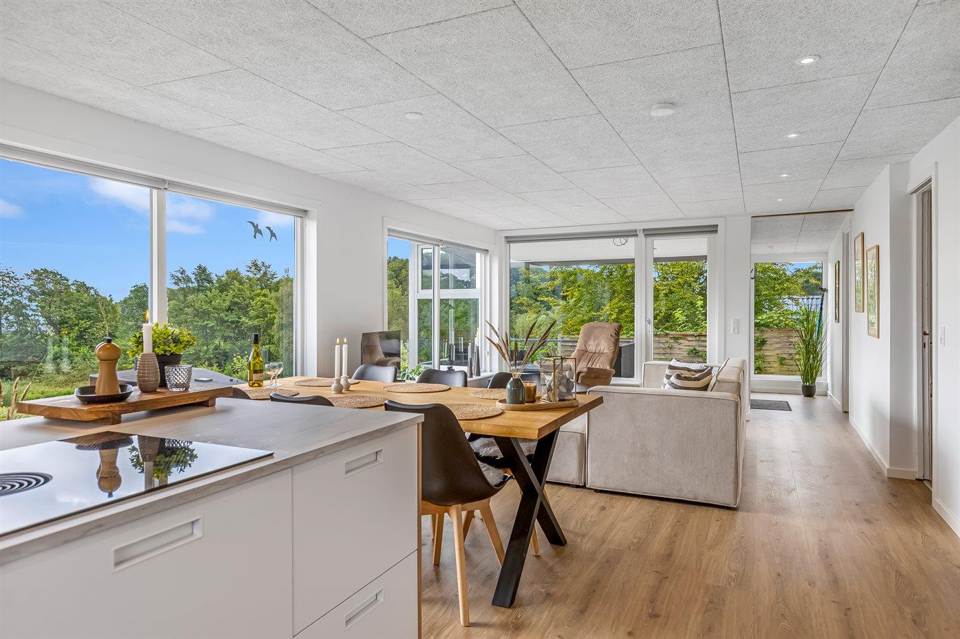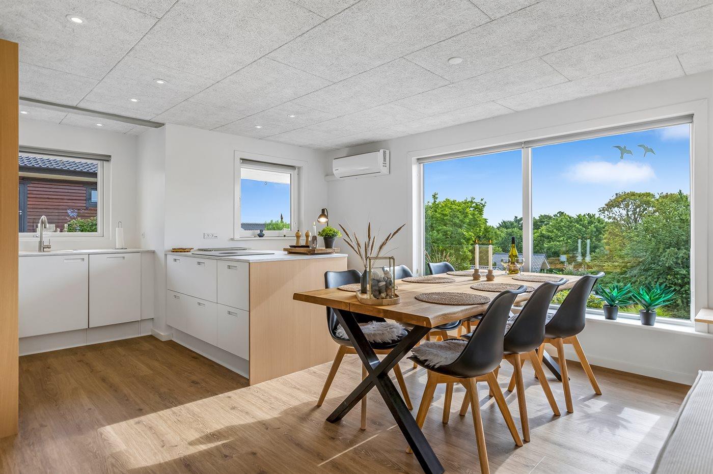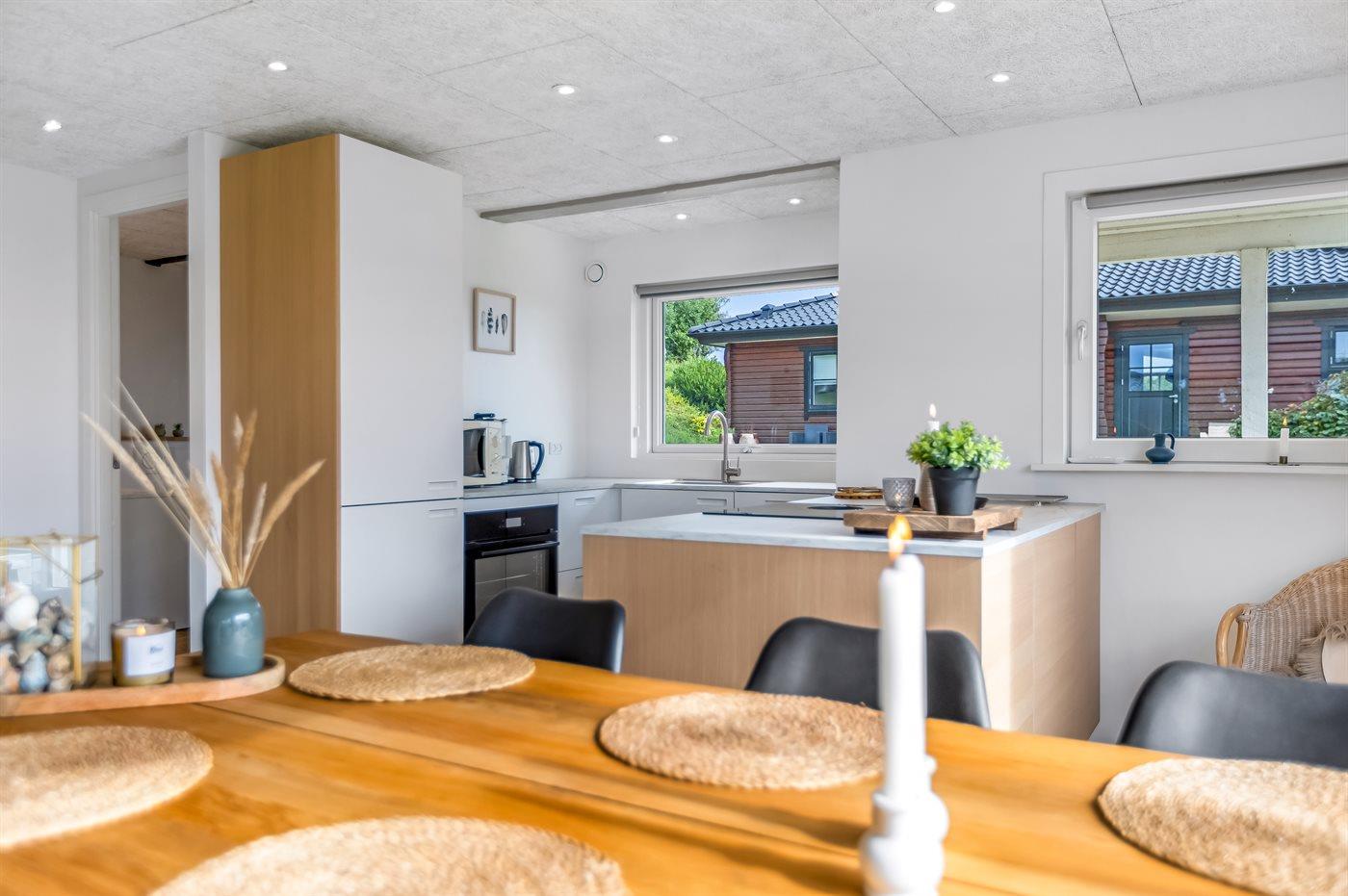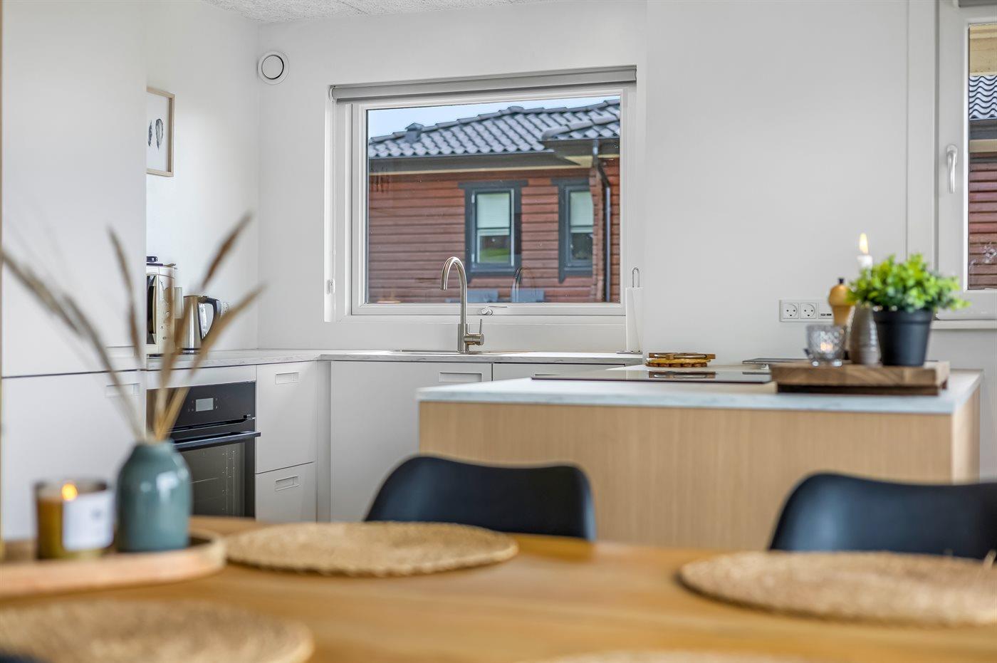 De keuken is uitgerust met koelkast Er is 4 inductiekookplaten, heteluchtoven, magnetron en vaatwasser.