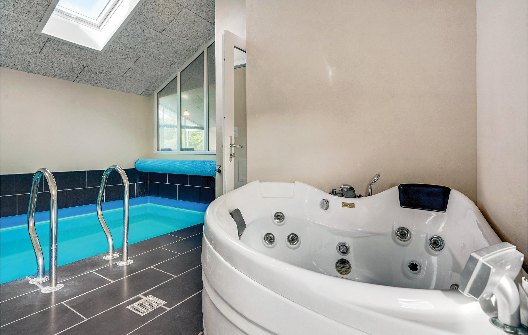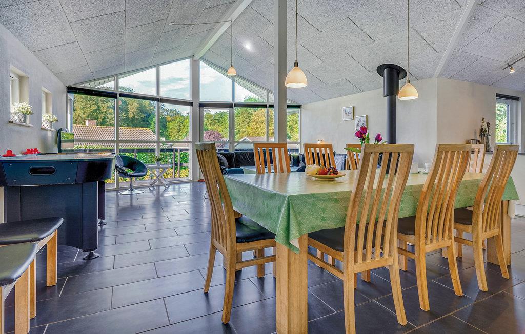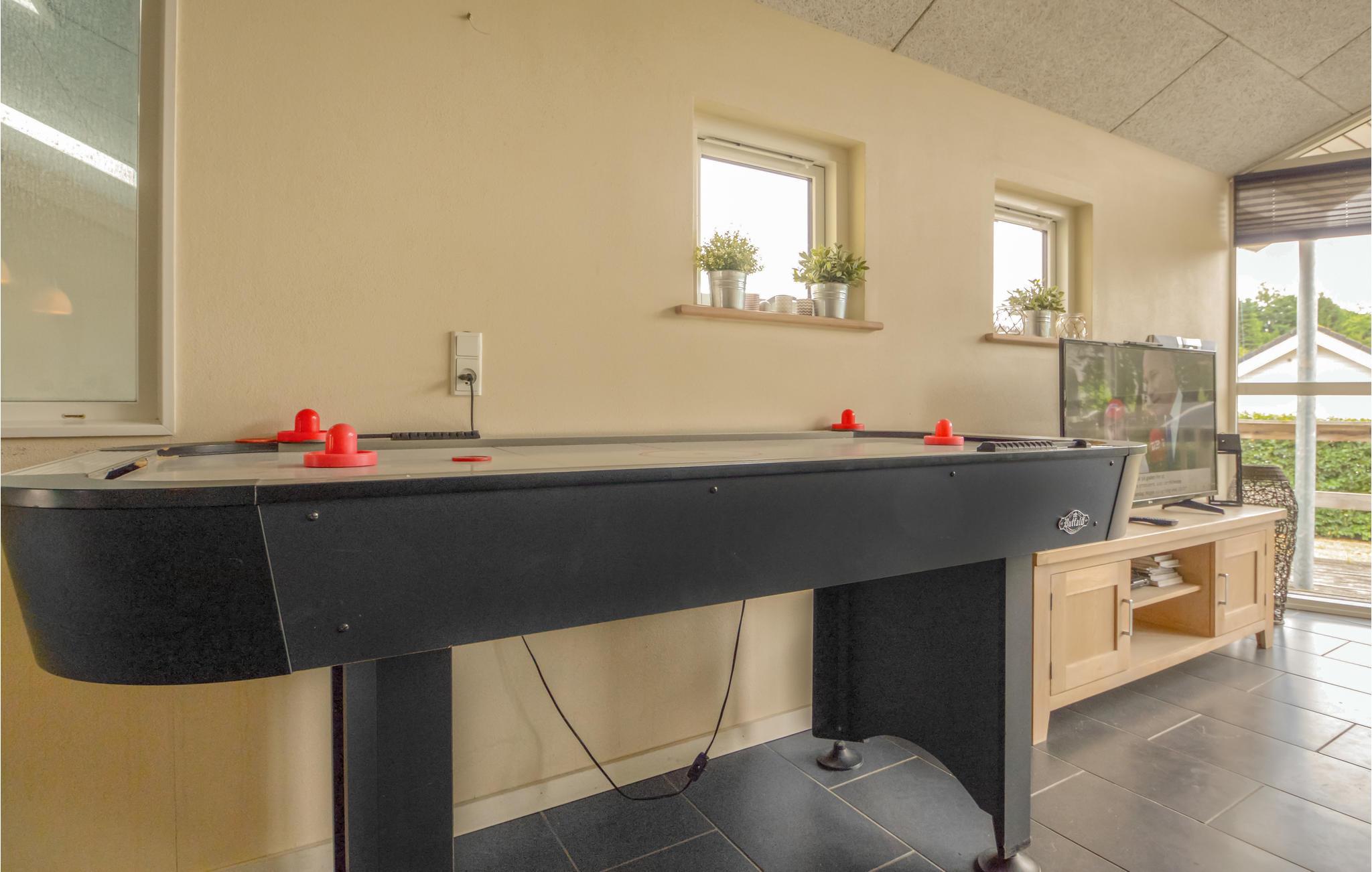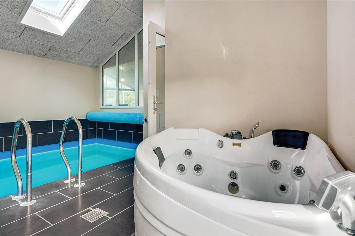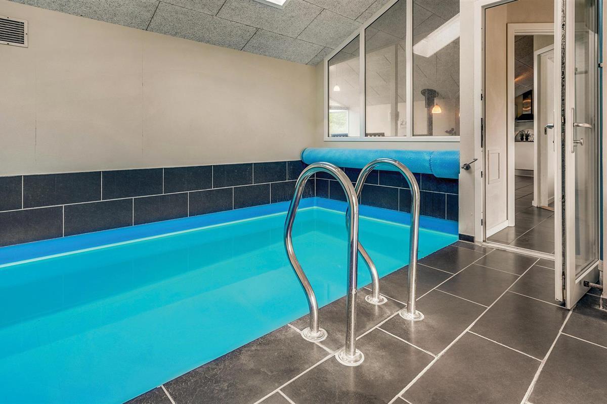 Mooi zwembadhuis in een rustige omgeving met prachtige natuur en veel ruimte voor het gezin. Het vakantiehuis ligt op een groot perceel, op slechts 200 m van een mooi en kindvriendelijk badstrand, en vormt het decor voor uw heerlijke vakantie hier. In de zwembadruimte zult u zeker vele uren doorbrengen met zwemplezier en ontspanning. U vindt er ook een wellnessruimte met whirlpool en sauna. Als u nog meer wilt spelen, vindt u hier ook airhockey, etc. De grote woonkamer staat open voor de keuken en de eetkamer en is zeer licht dankzij de grote panoramische ramen. Er zijn vier mooie slaapkamers met goede bedden en twee slaapplaatsen op de Hems. Er zijn twee badkamers en het huis is geschikt voor de grote familie of meerdere gezinnen die samen op vakantie willen. Geniet van de mooie zomerdagen en heldere avonden met een bal op het grote grasveld, speel op de schommel of in de zandbak. Ook het grote terras met barbecue nodigt uit tot vele aangename uren in de buitenlucht.