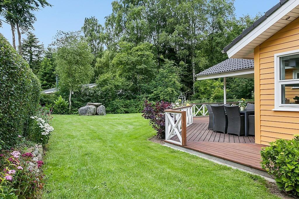 Outdoor living has perfect conditions on the large, partially covered terrace, where holiday meals, coffee breaks and long summer evenings can be enjoyed in peace and quiet. Here you can find both sunshine and shelter, while birds chirp in the background and the scent of summer fills the air. The garden is designed with both children and adults in mind – children can have fun on the swing or build sandcastles in the sandbox, while adults lean back with a good book or a cool drink in hand. The terrace quickly becomes a natural meeting point where the day’s experiences are shared and new holiday memories are created under the open sky.