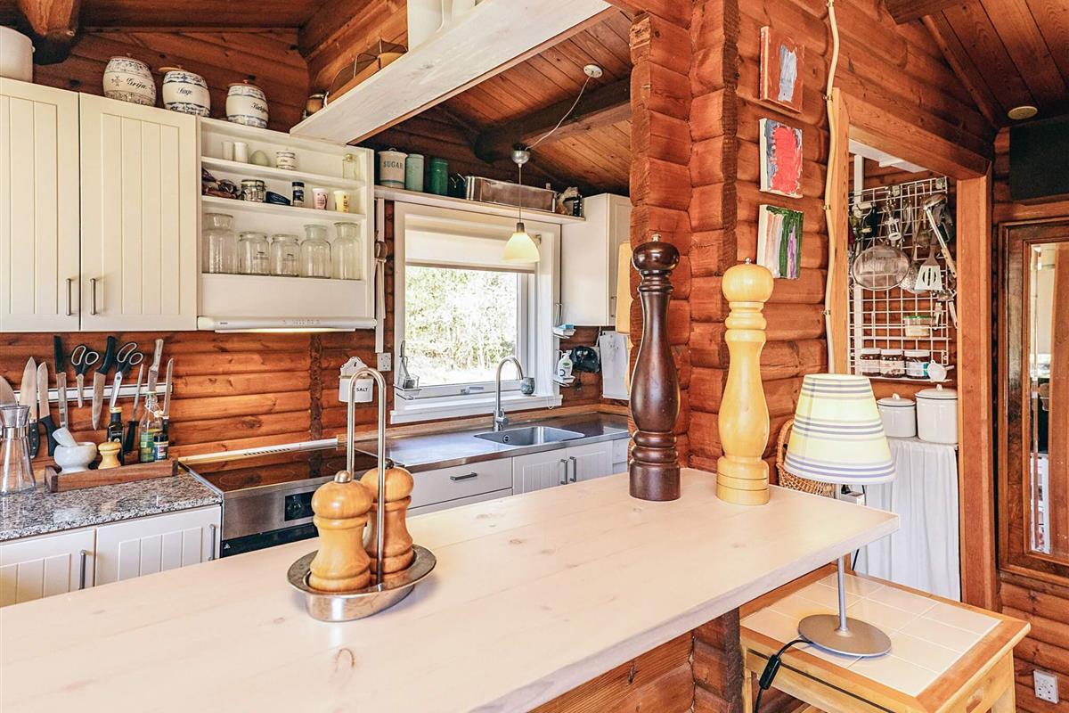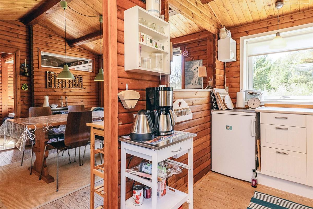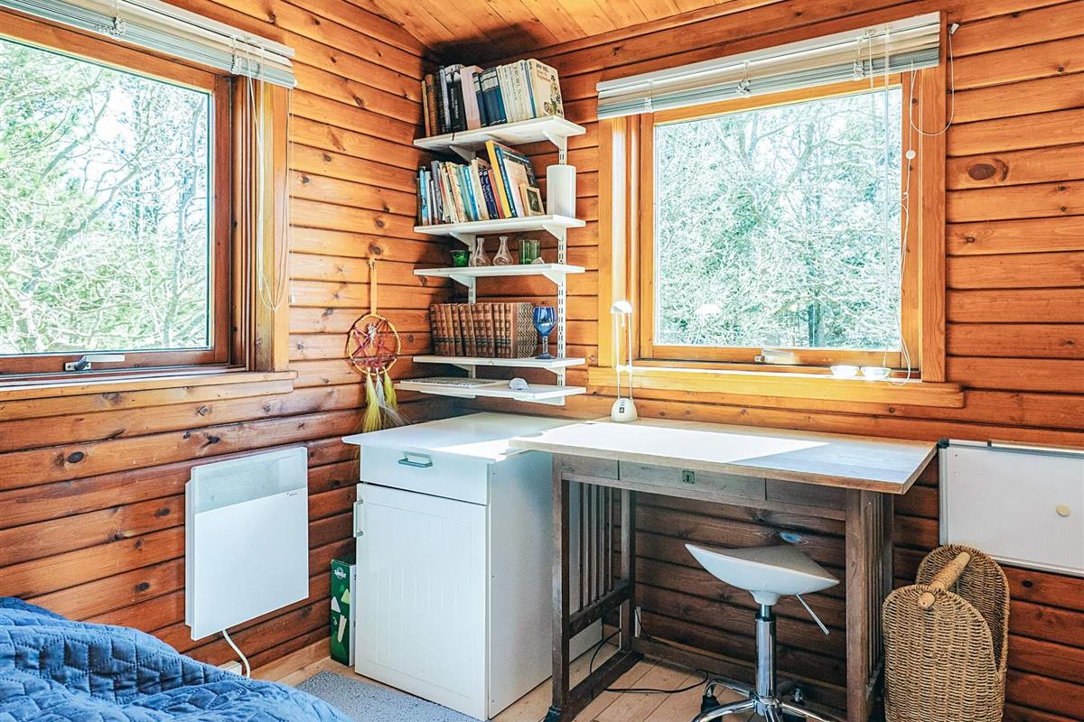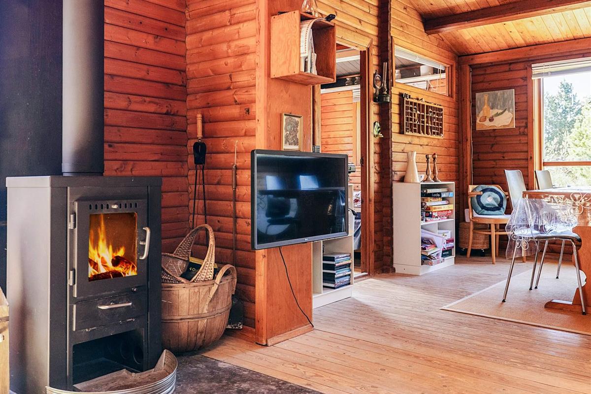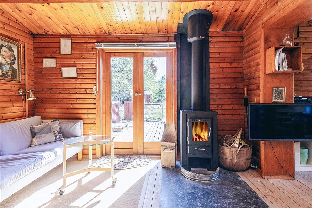 Das Ferienhaus besteht aus einer gut ausgestatteten Küche, einem Wohnzimmer mit gemütlichem Holzofen und Fernseher mit integriertem Chromecast, einem Schlafzimmer mit Doppelbett sowie einem 2. Zimmer mit Doppelbett und zwei Kojen im Etagenbett. Das Haus verfügt über ein Badezimmer mit Dusche.
