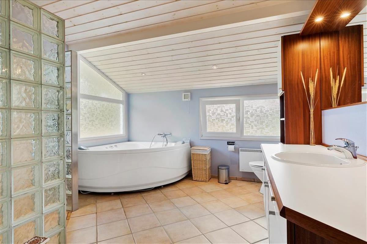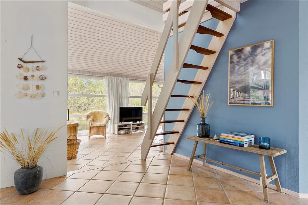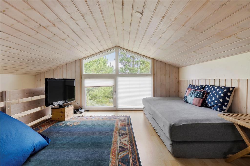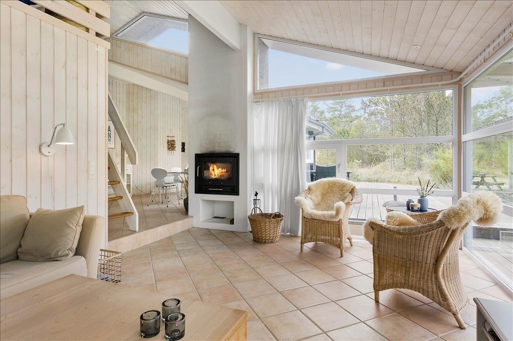 Sobald du das Ferienhaus betrittst, spürst du, wie die Ruhe einkehrt. Die große Fensterfront im Wohnbereich holt die Natur direkt ins Wohnzimmer, und die hellen, bis unter das Dach offenen Decken sorgen für Luftigkeit und Großzügigkeit, während das warme Licht des Holzofens zu gemütlichen Stunden mit Spielen, Gesprächen und echter Nähe einlädt. Die Einrichtung ist schlicht und freundlich, mit einer offenen Wohnküche, in der du die Mahlzeiten des Urlaubs ganz entspannt zubereiten kannst, ohne vom Geschehen ausgeschlossen zu sein. Auf dem Hems können sich Kinder oder Teenager mit einem Film zurückziehen, und zwei Badezimmer – eines davon mit Whirlpool und Sauna – sorgen dafür, dass sich die ganze Familie nach einem langen Tag in der Natur verwöhnen lassen kann. Hier findest du ein Ferienhaus, in dem man sich sofort wie zu Hause fühlt.