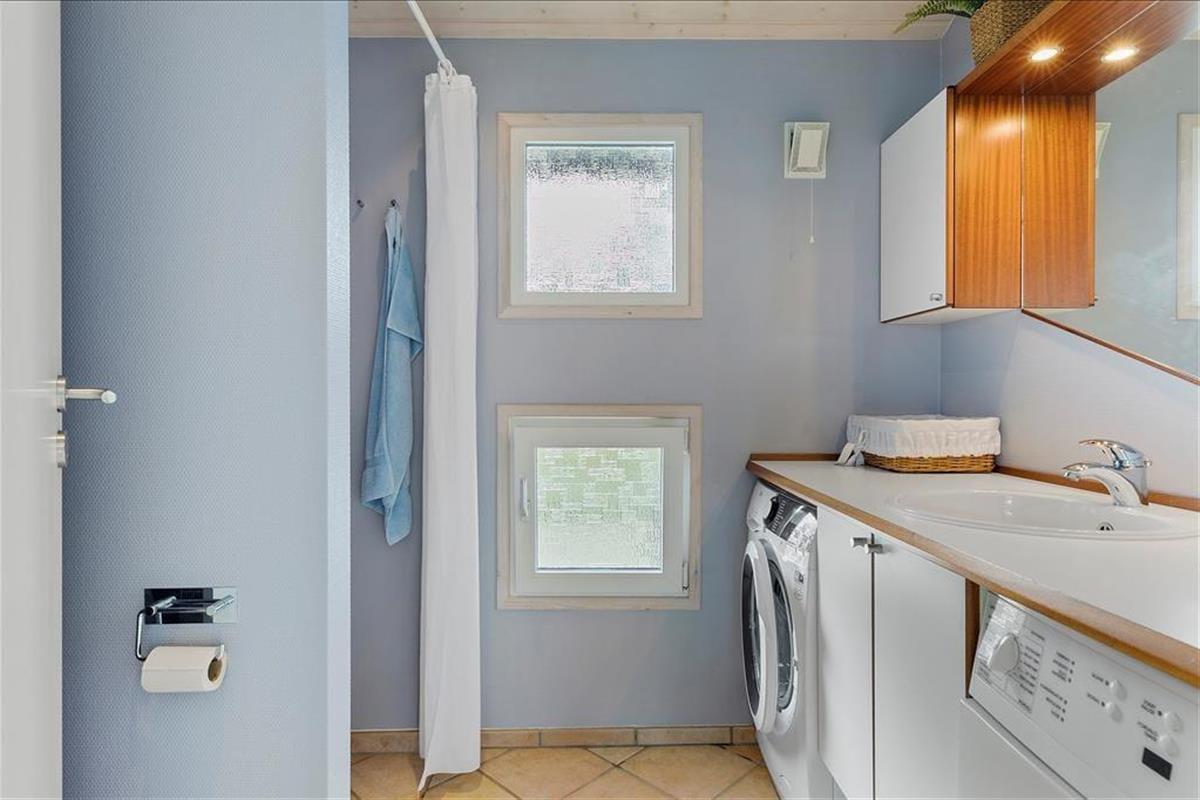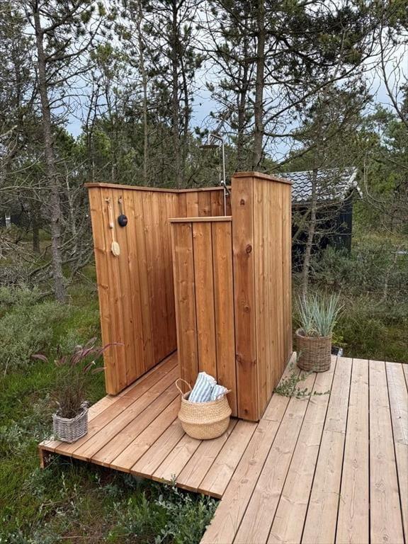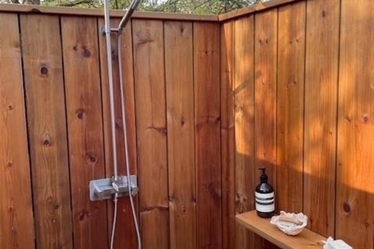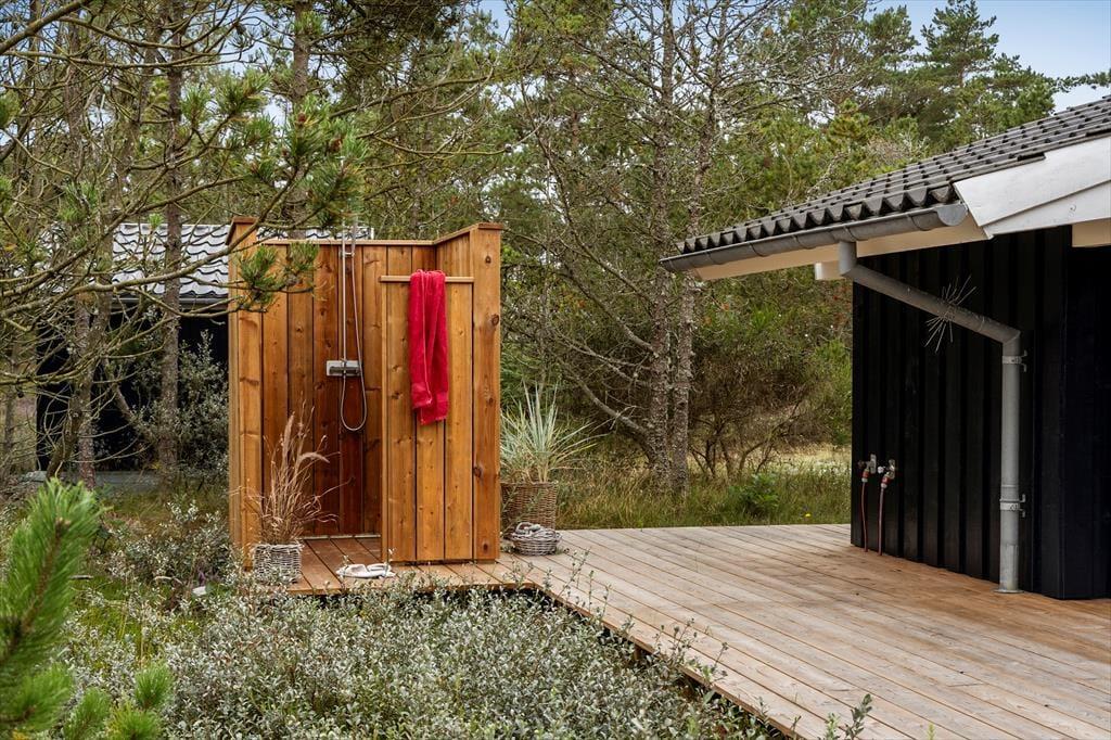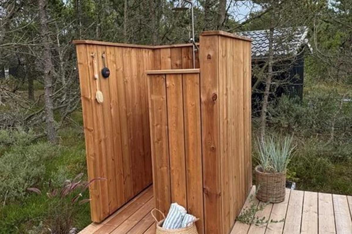 Auf dem großen Naturgrundstück sind es nur Vogelgesang und das Rauschen des Windes in den Baumwipfeln, die die Ruhe unterbrechen. Hier gibt es viel Platz zum Spielen, Entspannen und um die Sonne den ganzen Tag über zu genießen. Du kannst den Morgen mit einer Dusche unter der Außendusche beginnen – mit warmem und kaltem Wasser – und später mit deinem Morgenkaffee auf eine der schönen Terrassen umziehen. Die Terrasse lädt auch zu langen Grillabenden und einem Leben im Freien vom frühen Morgen bis zum späten Abend ein. Wenn der Tau fällt, ist es perfekt, sich mit einer Decke und einer Tasse heißem Kakao zusammenzukuscheln, während die Dunkelheit sich über die Baumkronen legt. Das uneinsehbare Grundstück bietet ideale Bedingungen für pure Erholung – mitten in der Natur und weit weg vom Alltag.