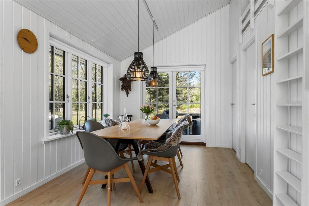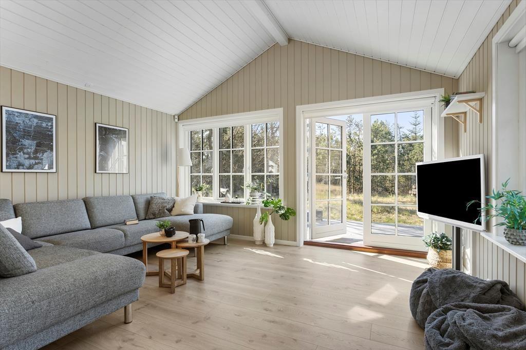 Das neu erbaute Ferienhaus aus dem Jahr 2022 empfängt dich mit einer einladenden und harmonischen Atmosphäre. Die weißen Sprossenfenster lassen viel Licht herein und bilden einen schönen Kontrast zur dunklen Holzfassade. Im Inneren ist die Raumaufteilung ideal, sodass ausreichend Platz für Entspannung und geselliges Beisammensein vorhanden ist. Das Wohnzimmer ist das Herz des Hauses, wo du mit deinen Liebsten gemütliche Abende auf dem Sofa verbringen oder lange Abendessen am Esstisch genießen kannst. Die offene Küche ermöglicht es, auch beim Kochen für die Urlaubsmahlzeiten beisammen zu sein. Das gesamte Ferienhaus strahlt Qualität und Komfort aus, damit du einen erholsamen Urlaub in wunderschöner Umgebung genießen kannst.