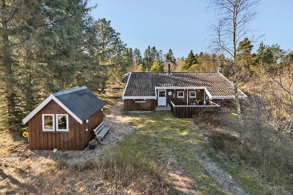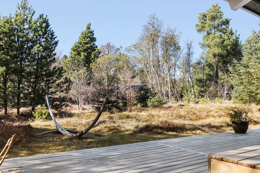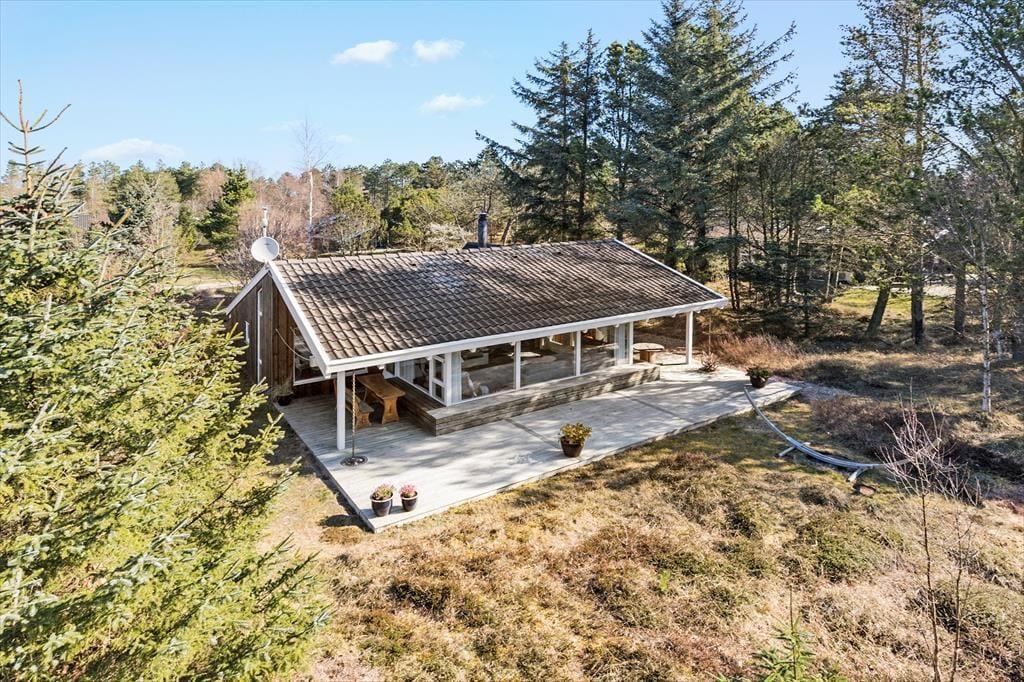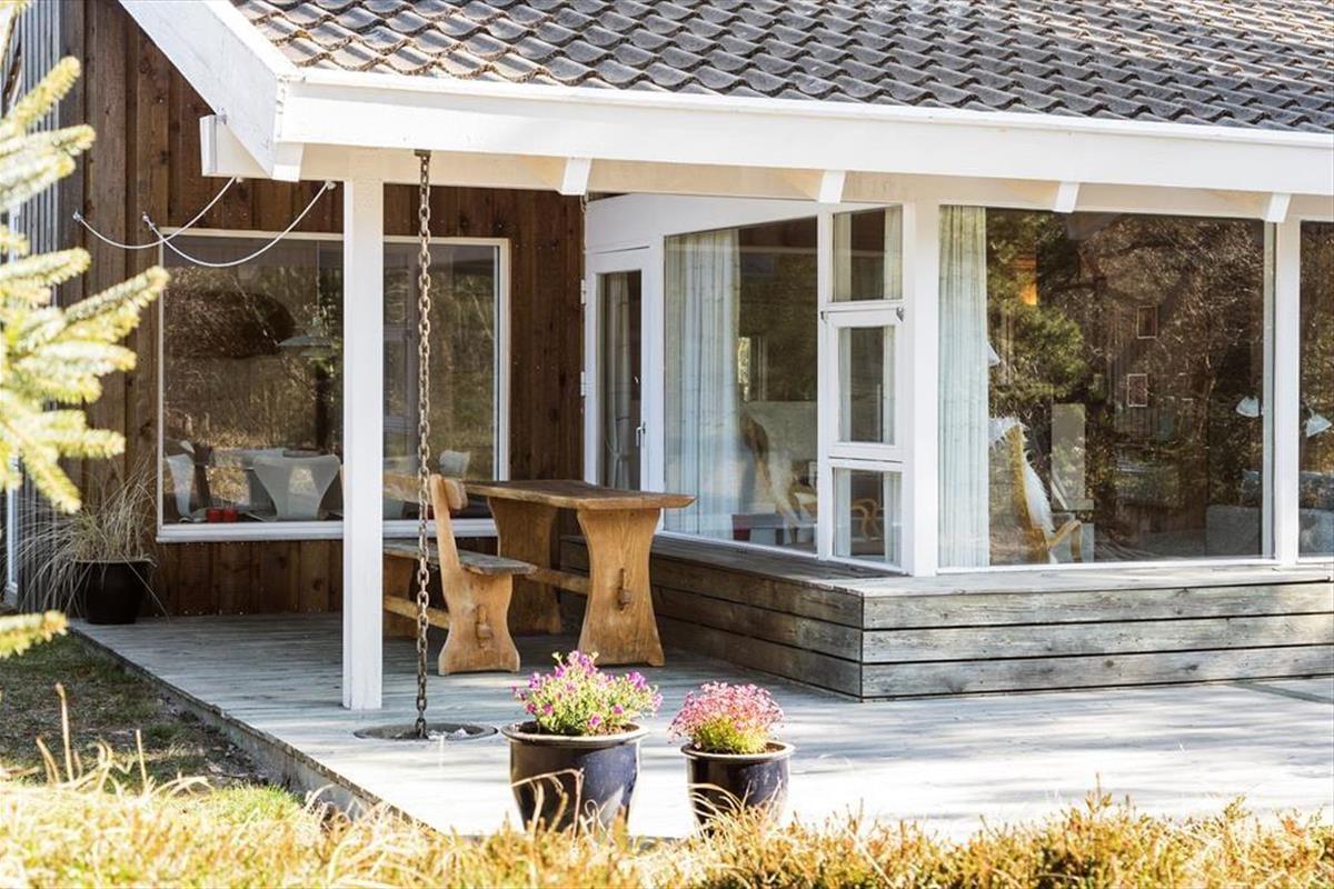 Das Ferienhaus liegt auf einem schönen Naturgrundstück, auf dem sowohl Menschen als auch Tiere die friedliche Umgebung in vollen Zügen genießen können. Die großzügigen Terrassenbereiche laden dazu ein, den Tag unter freiem Himmel zu verbringen – vom Morgenkaffee in den ersten Sonnenstrahlen bis zum Abendessen vom Grill, während die Sonne untergeht. Die nach Süden ausgerichtete Terrasse bietet sowohl überdachte als auch offene Bereiche, sodass du immer einen Platz findest, der zum Wetter passt. Der Blick auf die wilde, grüne Vegetation sorgt für eine ganz besondere Stimmung, und der Gesang der Vögel wird zum natürlichen Soundtrack deiner Urlaubstage.