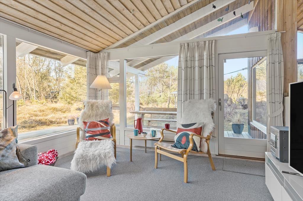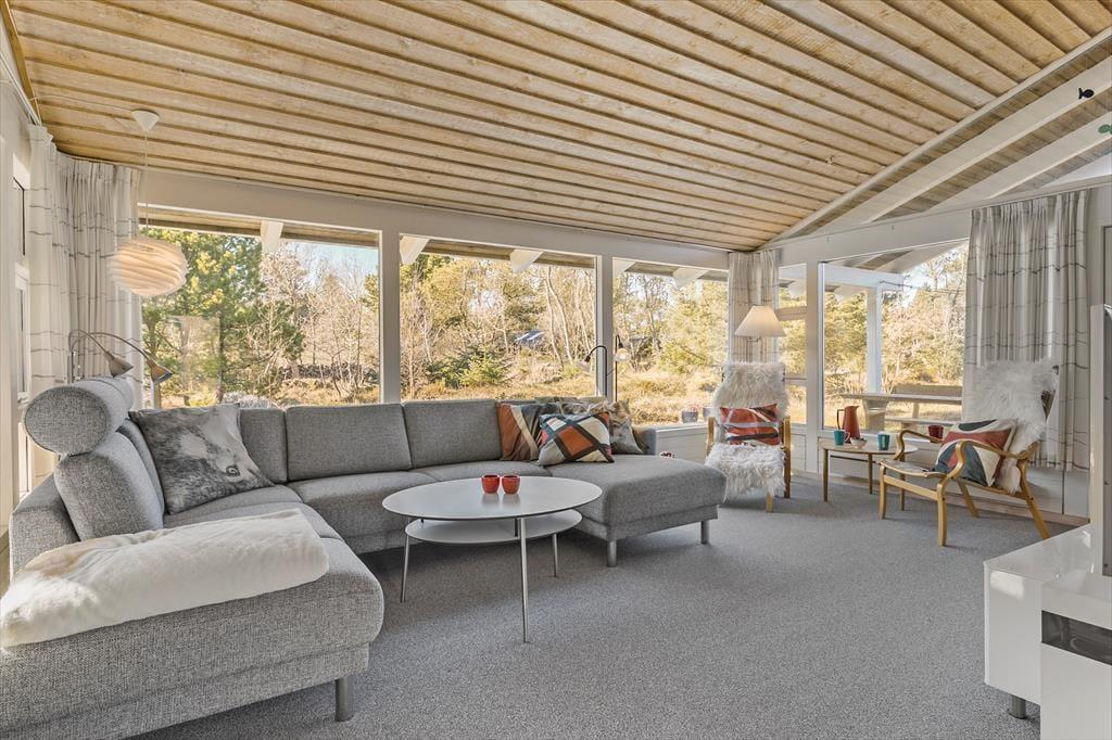 Suchst du einen Ort, an dem Natur, Ruhe und Gemütlichkeit perfekt zusammenpassen? In der Straße Musvågevej 55 in Lodskovvad findest du ein helles und charmantes Ferienhaus, das von friedlichem, grünen Umfeld umgeben ist. Hier kannst du das Leben auf den großen Terrassenbereichen genießen, lange Spaziergänge in der Umgebung unternehmen und anschließend zur wohligen Wärme des Kaminofens zurückkehren – und wenn du deinen Hund mitbringst, ist er ebenfalls herzlich willkommen.