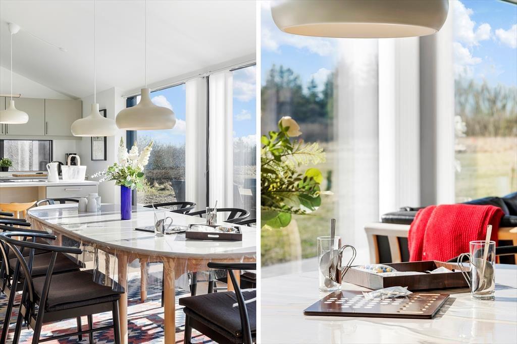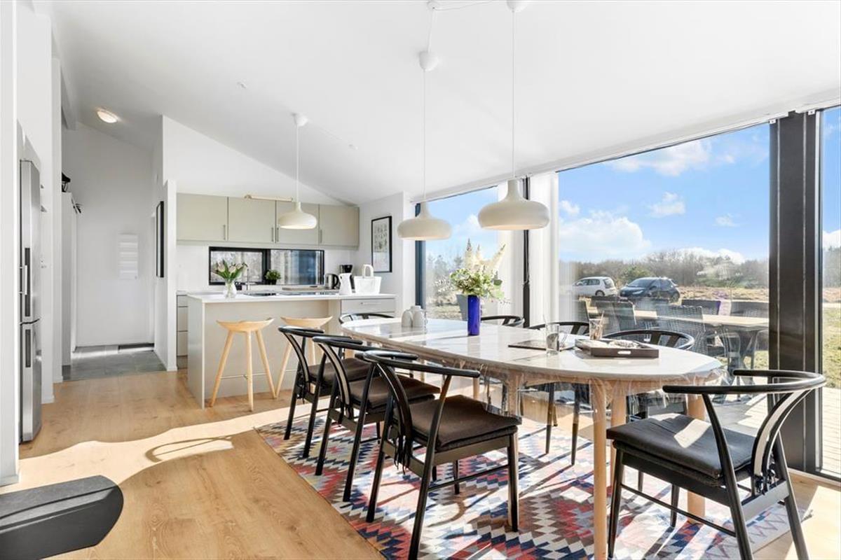 Das Ferienhaus empfängt Sie mit einer geräumigen und gemütlichen Atmosphäre. Hier gibt es viel Platz, um sich mit Familie und Freunden im großen Wohnbereich zu versammeln, wo das Licht durch die Fenster strömt und Sie sich nach einem Tag in der Natur in bequemen Möbeln entspannen können. Die gut ausgestattete Küche ist offen mit dem Wohnzimmer verbunden, sodass Sie gemeinsam kochen oder gemütlich am Esstisch zusammensitzen können. Das Ferienhaus ist zudem hundefreundlich, sodass auch Ihr vierbeiniger Freund den Urlaub mit Ihnen verbringen kann. Hier sind alle Voraussetzungen für einen wundervollen und entspannten Urlaub mit Fokus auf Gemeinsamkeit und Gemütlichkeit gegeben.