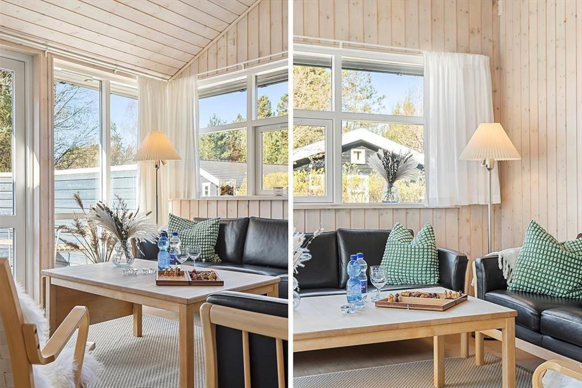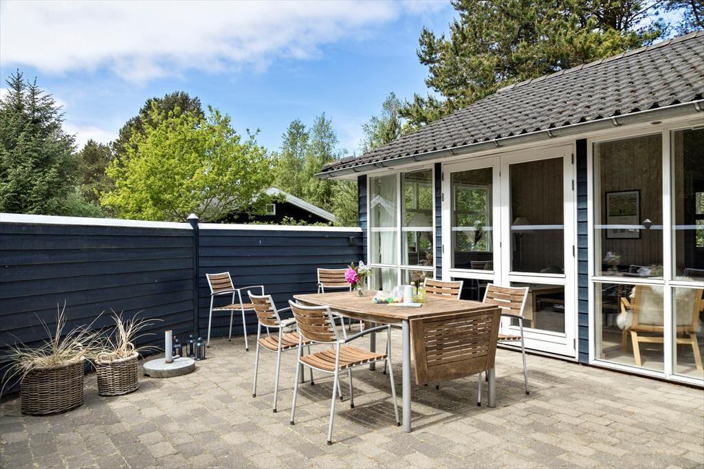 Vom Wohnzimmer aus hast du direkten Zugang zu einer schönen Terrasse, die schnell zum Lieblingsplatz der Familie werden kann, wenn der Sommer in Lodskovvad Einzug hält. Dank der Südausrichtung ist die Terrasse herrlich sonnig, und der Sichtschutzzaun bietet sowohl Schutz als auch Privatsphäre, wenn du in den Liegestühlen ein Sonnenbad nimmst, im Schatten des Sonnenschirms Karten spielst oder das Abendessen auf dem Grill zubereitest. An der Ostseite des Hauses befindet sich eine offene Terrasse, auf der du in den ersten Sonnenstrahlen deinen Morgenkaffee genießen kannst, während deine Familie und die malerische Umgebung langsam erwachen.