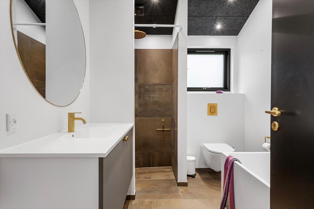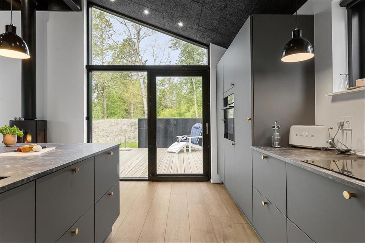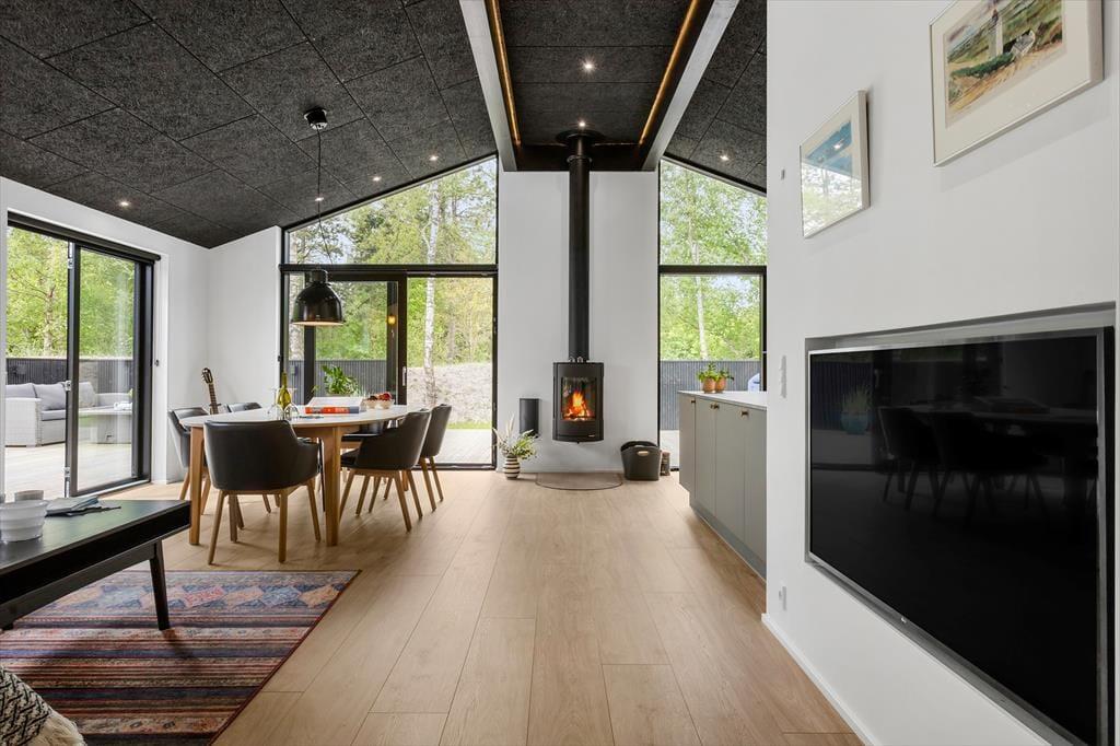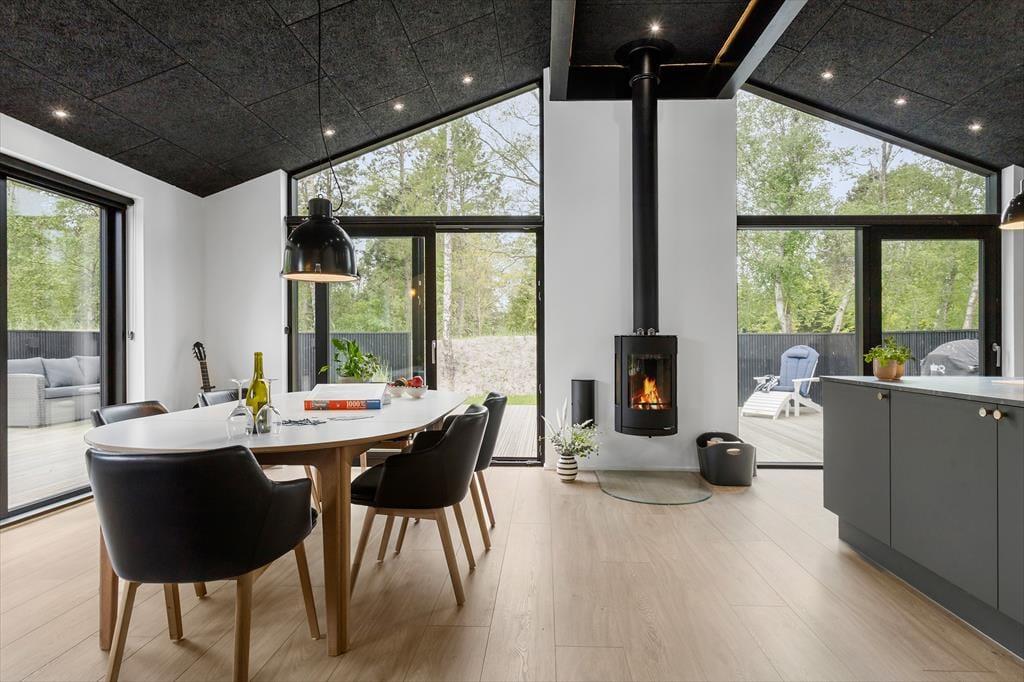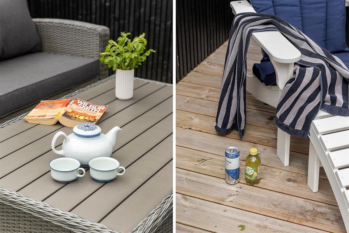 Die herrlichen Außenbereiche bieten den perfekten Rahmen für das Leben im Freien. Auf der großen Holzterrasse finden Sie sonnige sowie windgeschützte Ecken – ideal für Kaffee am Vormittag, Sonnenbaden oder Grillabende unter freiem Himmel. Das grüne Grundstück liegt idyllisch und ruhig in der Nähe des Waldes, bietet Privatsphäre und ein naturnahes Erlebnis. Kinder können frei spielen, während die Erwachsenen die Aussicht auf Baumwipfel und Vogelgezwitscher genießen.