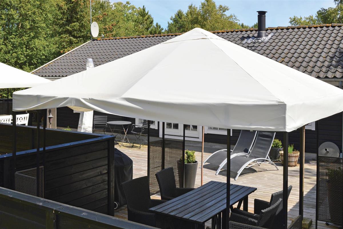 Het vakantiehuis is omgeven door verschillende ruime terrassen op het oosten, zuiden en westen. Hier vind je gezellig tuinmeubilair en gazebo's waar je van de zon kunt genieten terwijl je kinderen op de duinen spelen en de natuur verkennen.