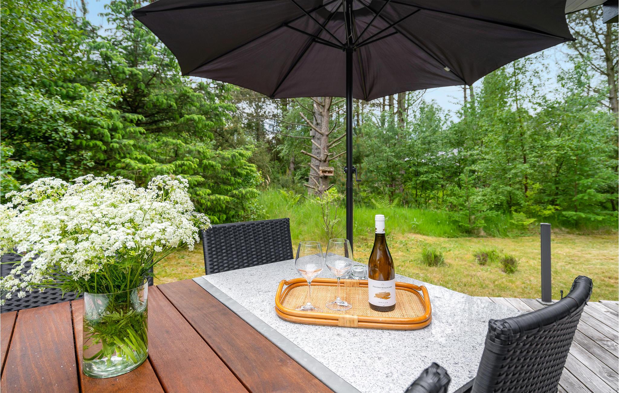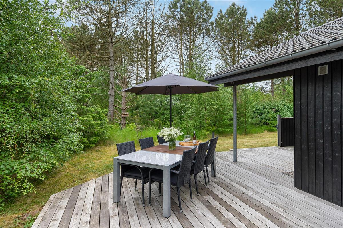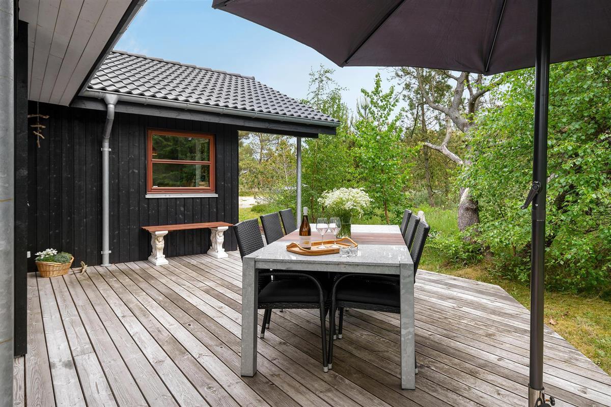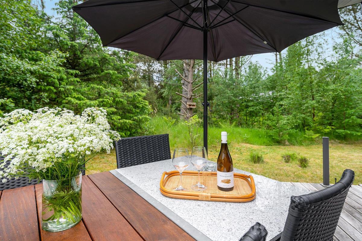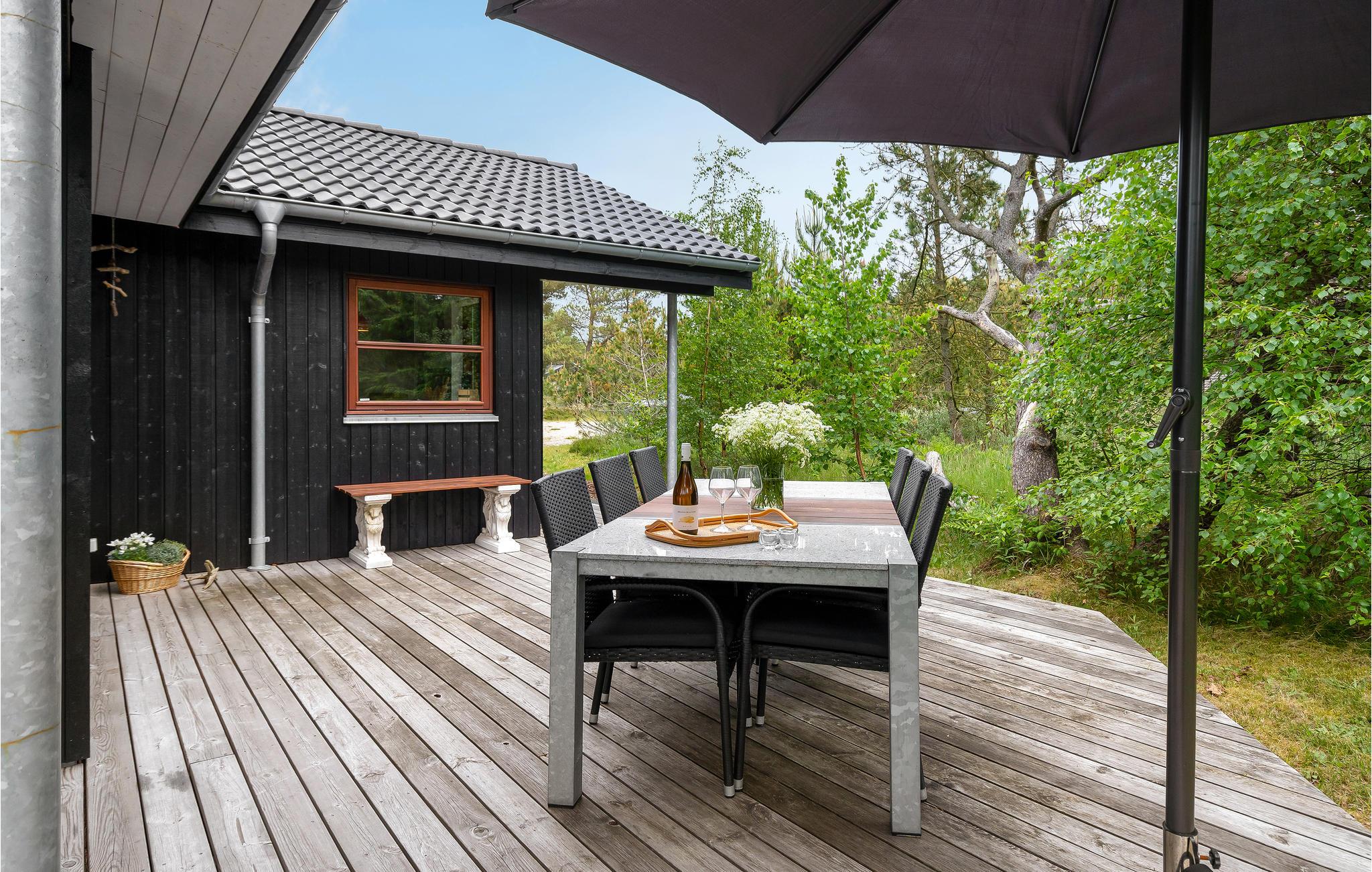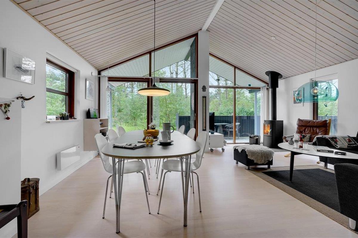 Comfortabel en energiezuinig vakantiehuis nabij Ålbæk strand, met houtkachel en ruime terrassen voor een ontspannen verblijf.
