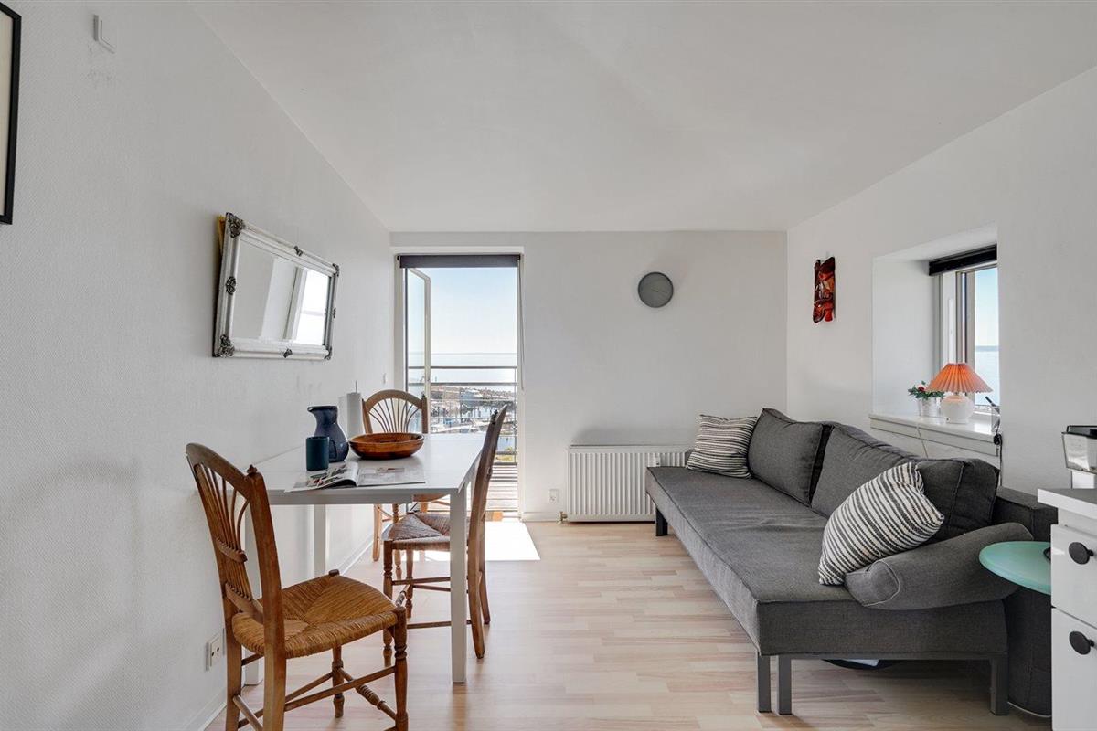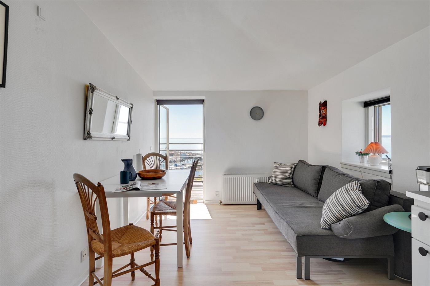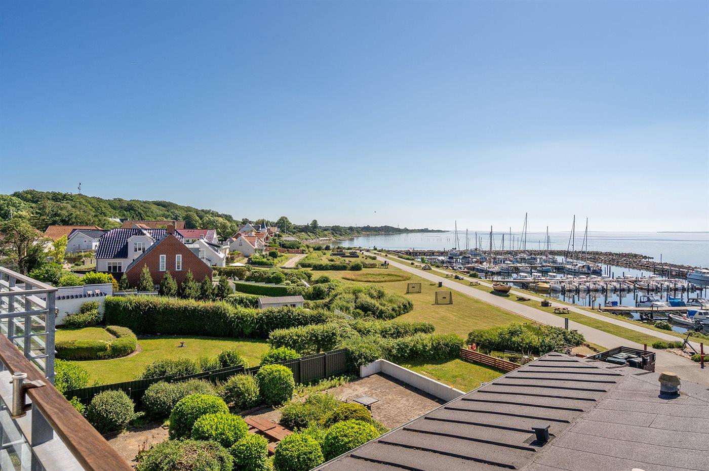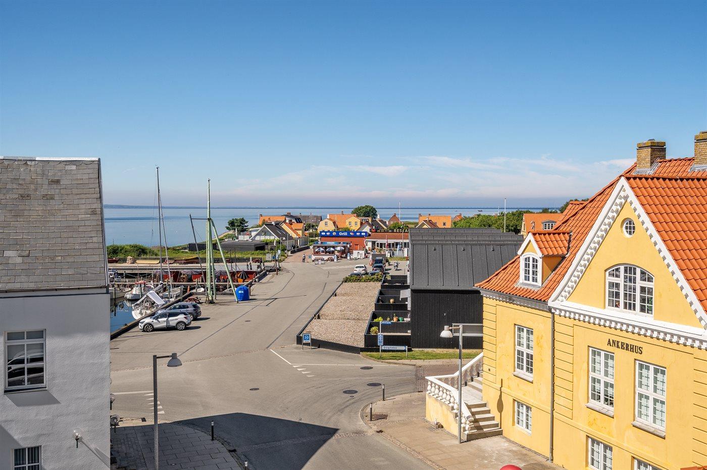 Deze sfeervolle tweede verdieping vakantieappartement biedt een prachtig uitzicht over het Langelandsbæltet en de gezellige haven van Lohals.