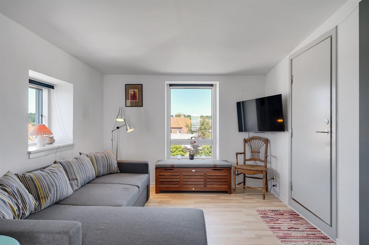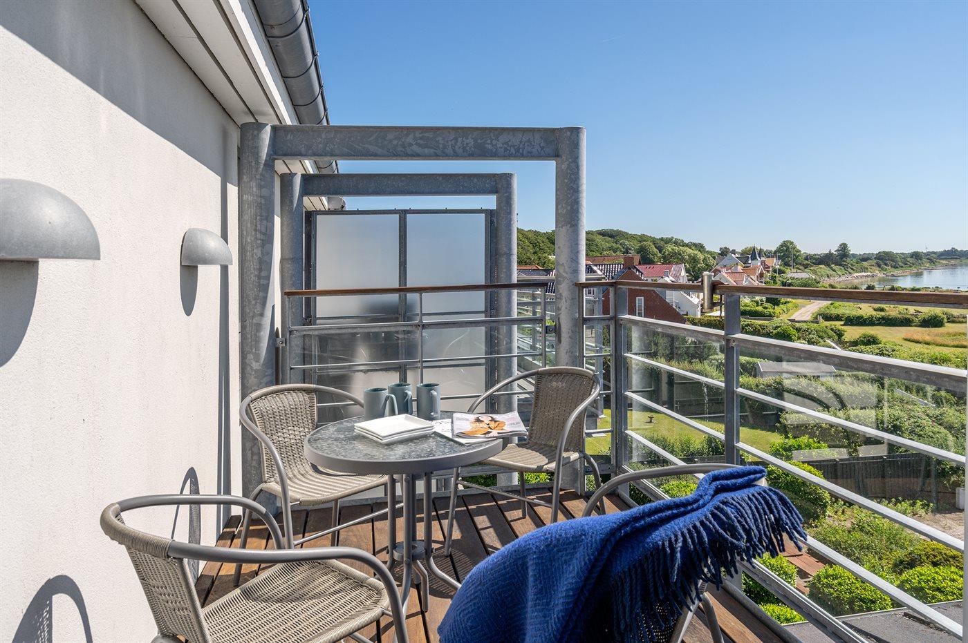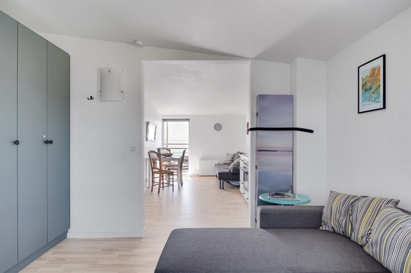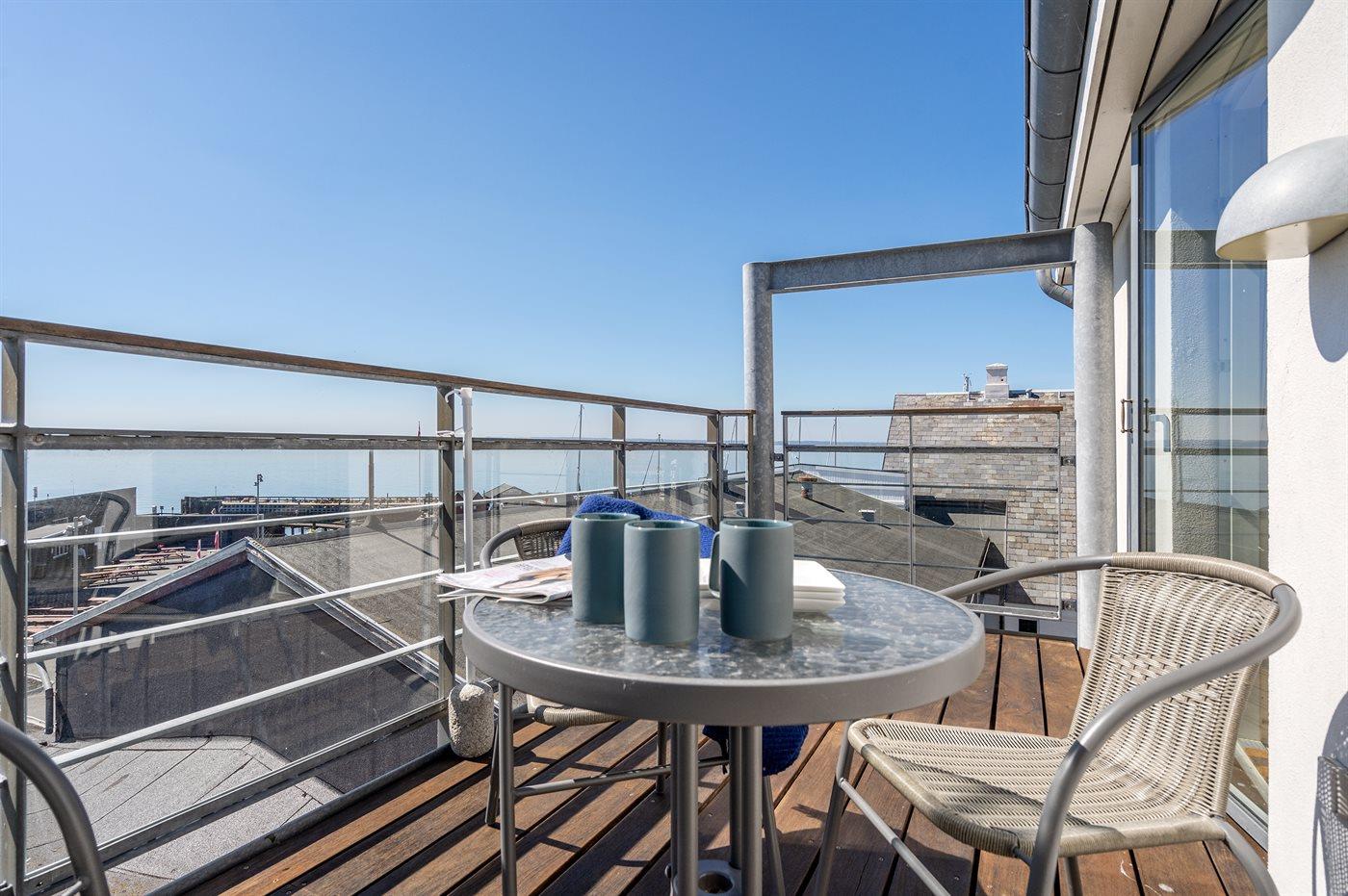 Deze sfeervolle tweede verdieping vakantieappartement biedt een prachtig uitzicht over het Langelandsbæltet en de gezellige haven van Lohals.