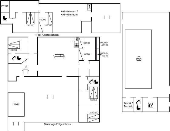 Het binnenzwembad biedt de gelegenheid om heerlijk te spelen en gezellig samen te zijn. Het zwembad is 5 m breed, 10 m lang en van 0,8 m tot 2,5 m diep. Er is vloerverwarming in het zwembadgebied.