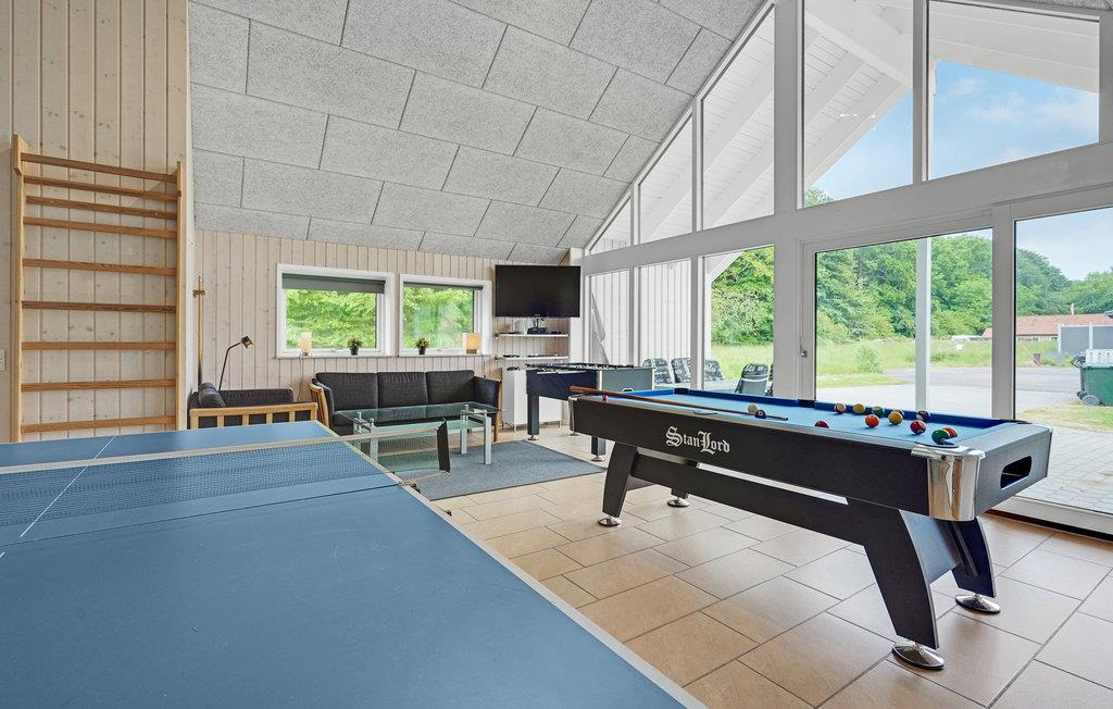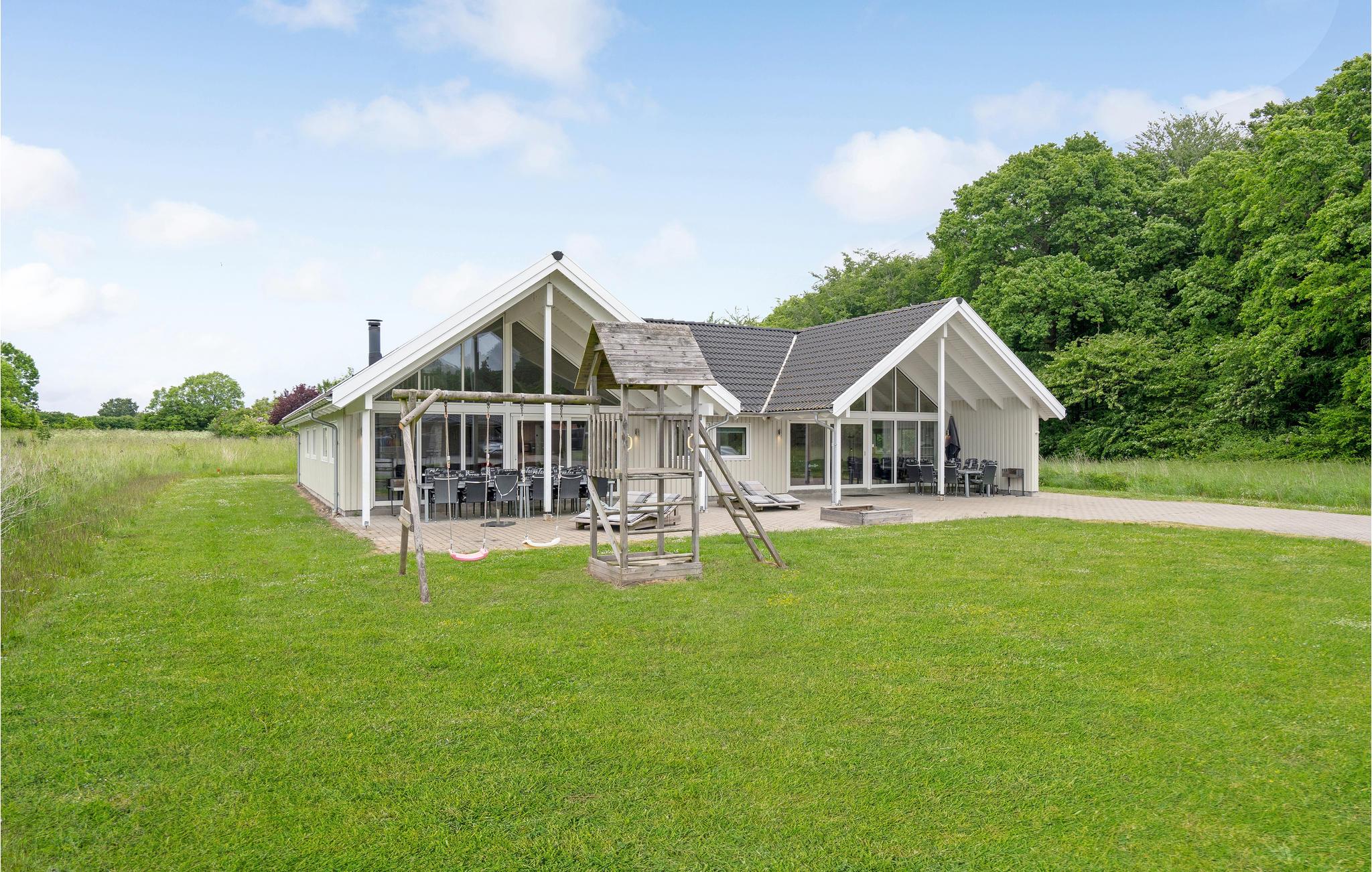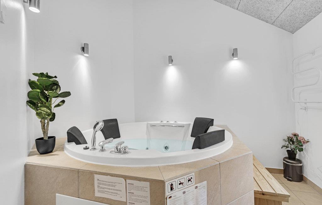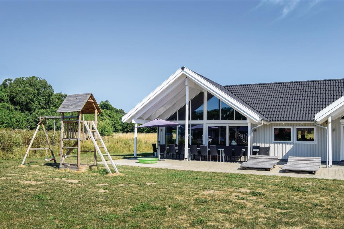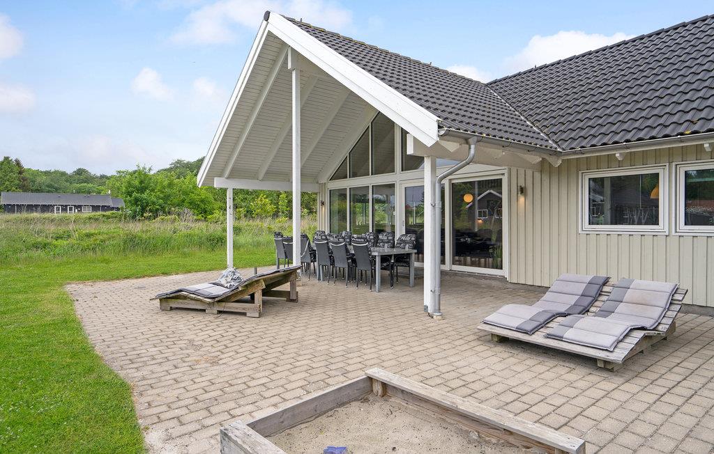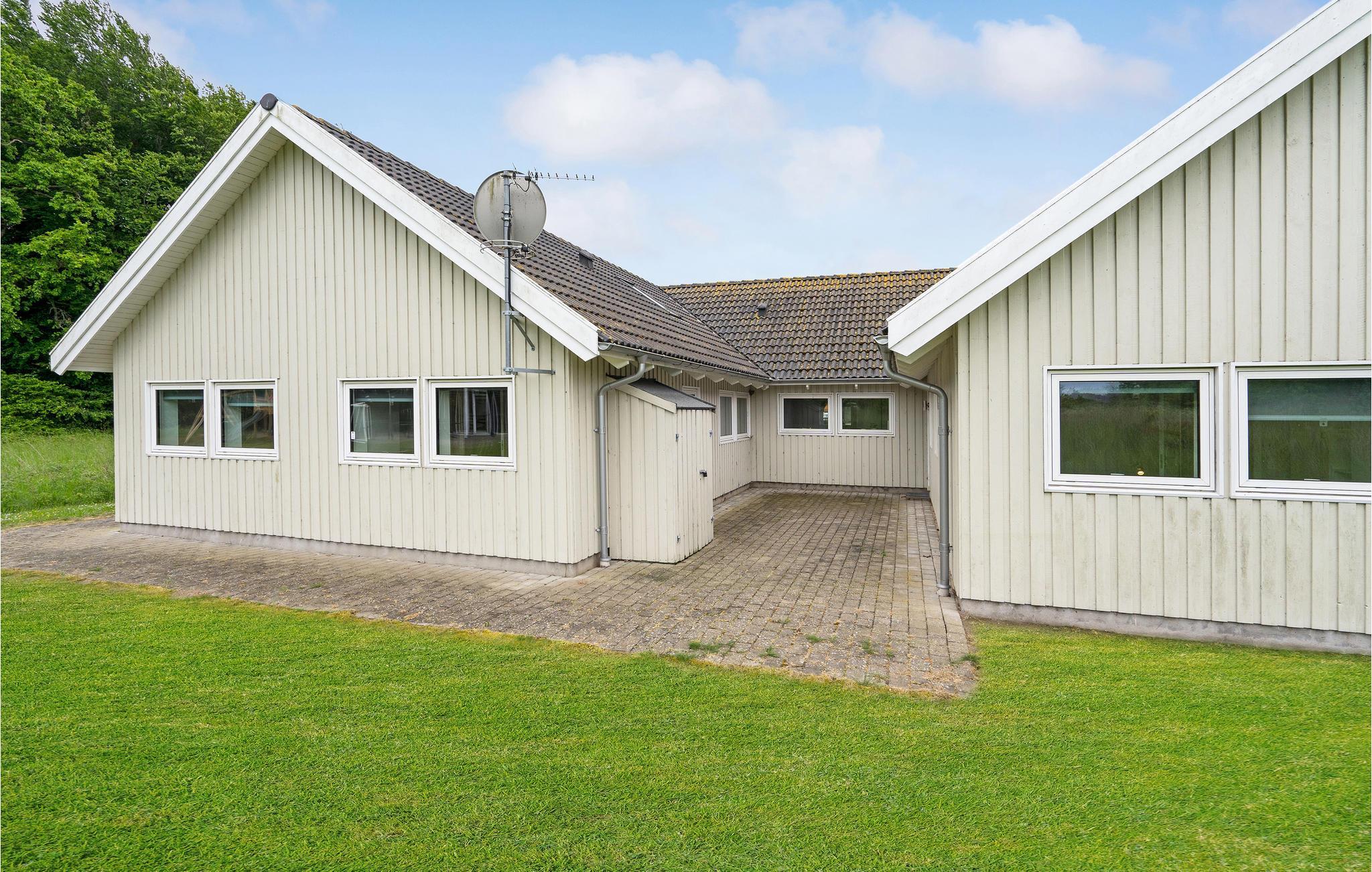 Fantastische kwaliteit houten huis in Lohals. Het is licht en mooi ingericht en herbergt moderne apparatuur. Er zijn 6 slaapplaatsen op slaapzolders. Er is een grote keuken-woonkamer in het midden van het huis en dient als ruimte voor gezellige samenkomsten om te koken en te ontspannen voor het gezellige vuur van de open haard. Ernaast is de activiteitenruimte. Een van de 4 badkamers in het huis heeft een whirlpool en toegang tot een sauna voor 3 tot 4 personen. Op het terras van 150 m², waarvan 50 m² overdekt, kunt u heerlijk zitten en genieten van uw vakantie. Op warme avonden kunt u hier ook barbecueën. In het charmante Lohals kunt u een mooie wandeling maken in de haven en langs de jachthaven.