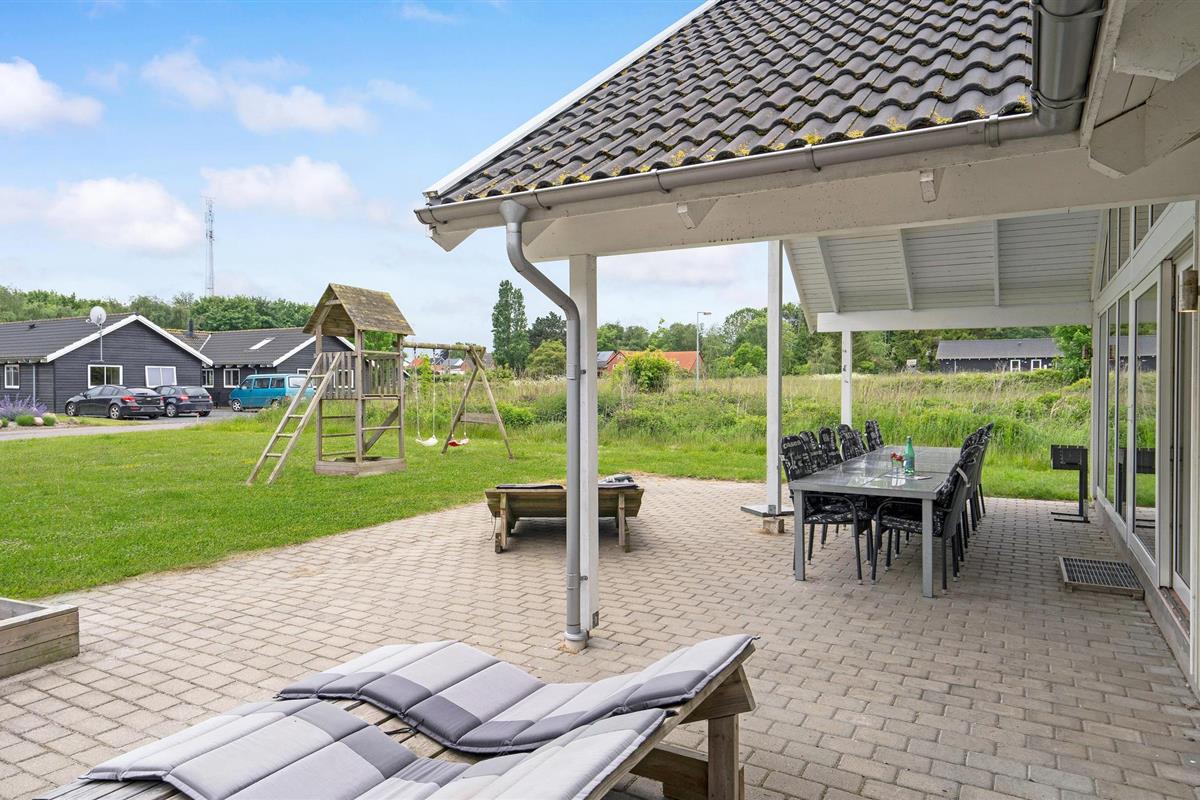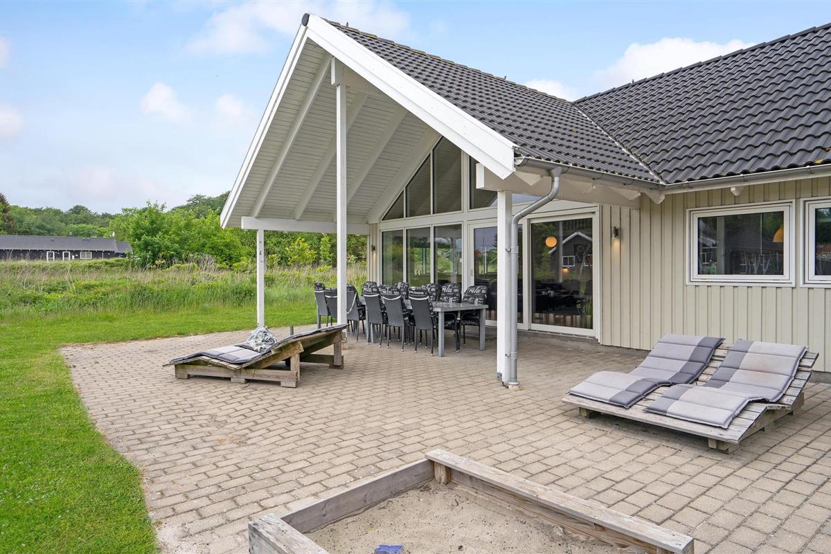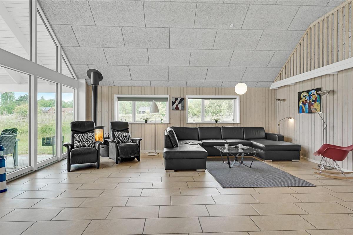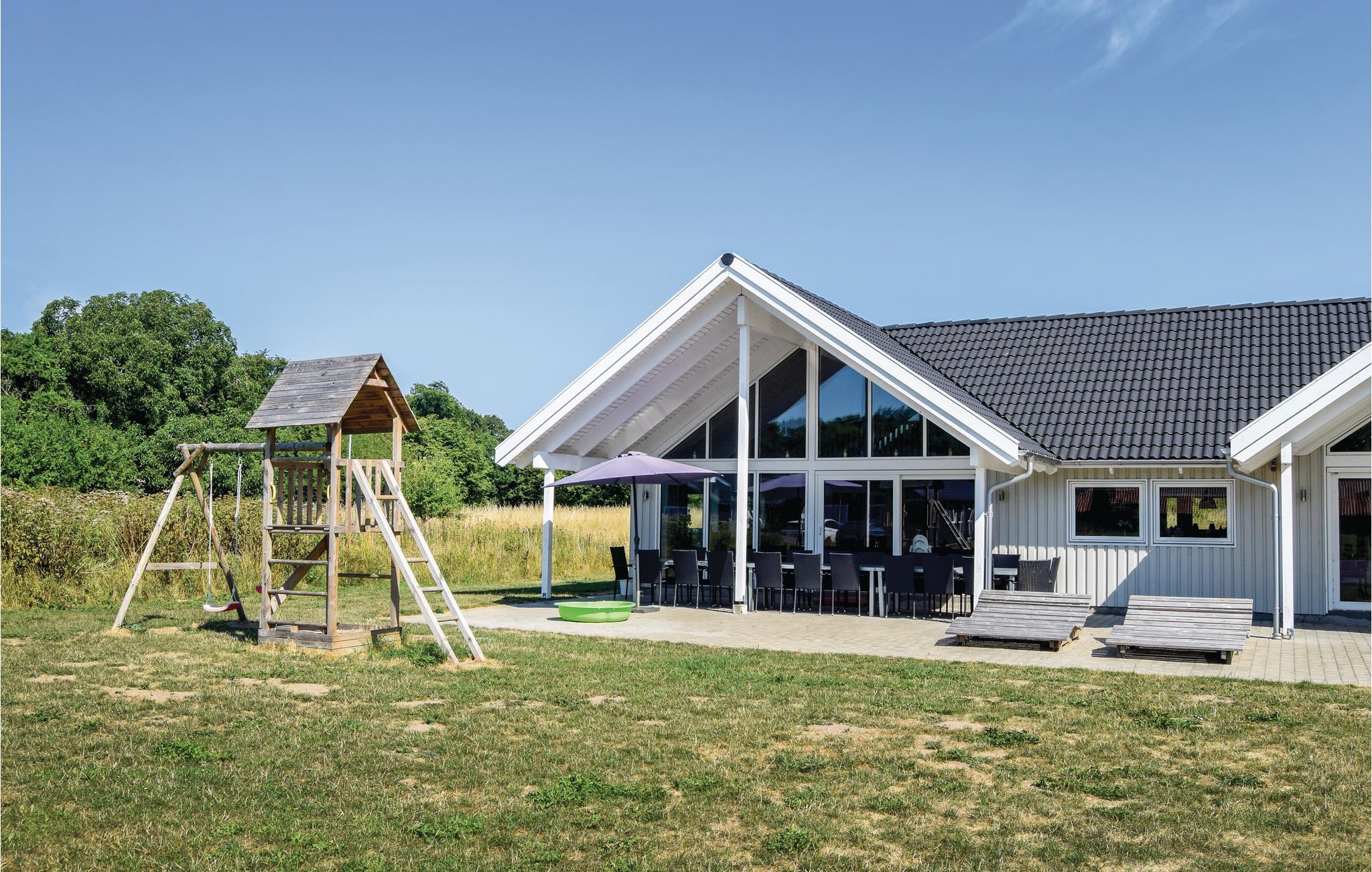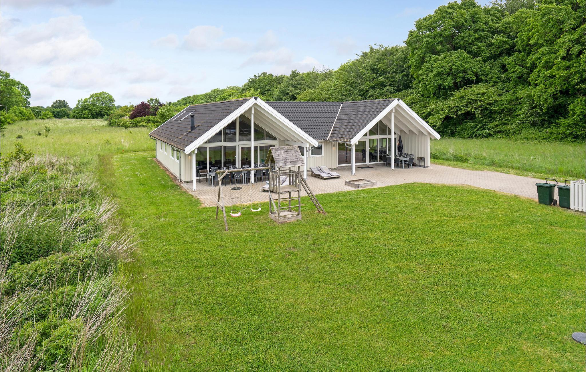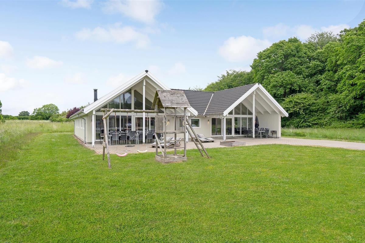Fantastische kwaliteit houten huis in Lohals. Het is licht en mooi ingericht en herbergt moderne apparatuur. Er zijn 6 slaapplaatsen op slaapzolders. Er is een grote keuken-woonkamer in het midden van het huis en dient als ruimte voor gezellige samenkomsten om te koken en te ontspannen voor het gezellige vuur van de open haard. Ernaast is de activiteitenruimte. Een van de 4 badkamers in het huis heeft een whirlpool en toegang tot een sauna voor 3 tot 4 personen. Op het terras van 150 m², waarvan 50 m² overdekt, kunt u heerlijk zitten en genieten van uw vakantie. Op warme avonden kunt u hier ook barbecueën. In het charmante Lohals kunt u een mooie wandeling maken in de haven en langs de jachthaven.