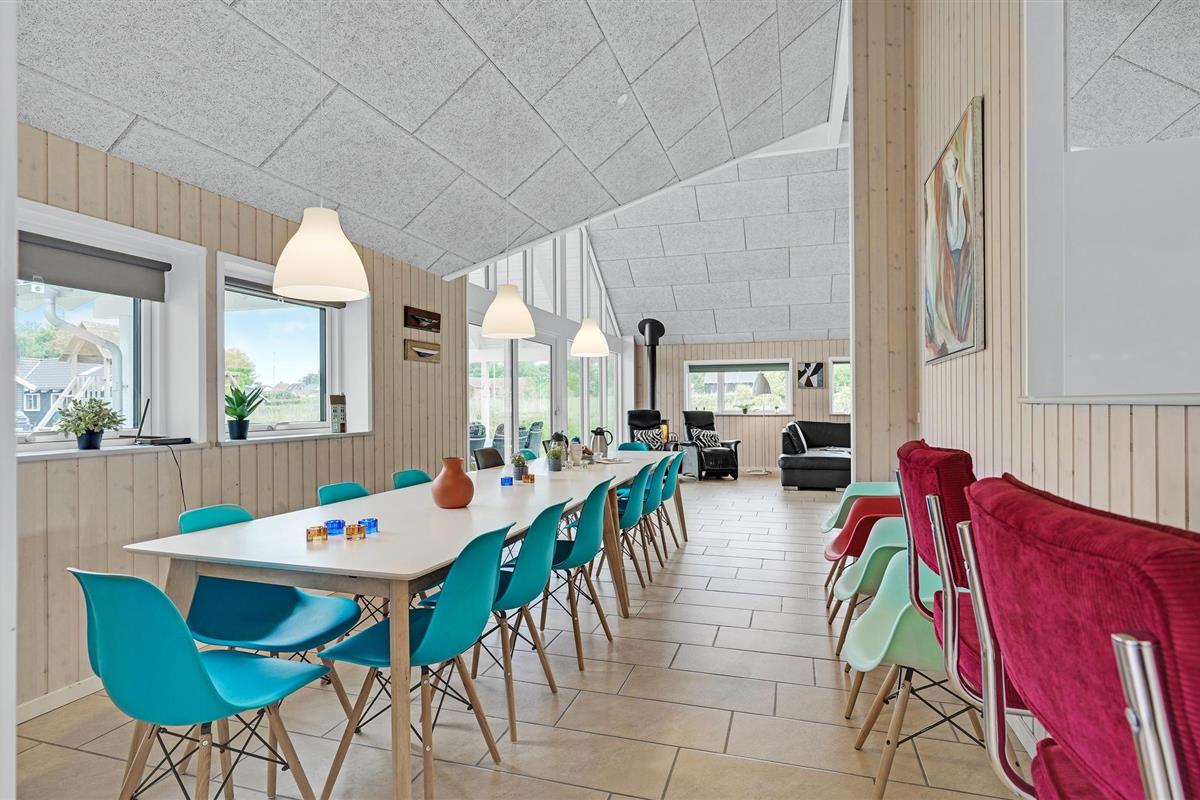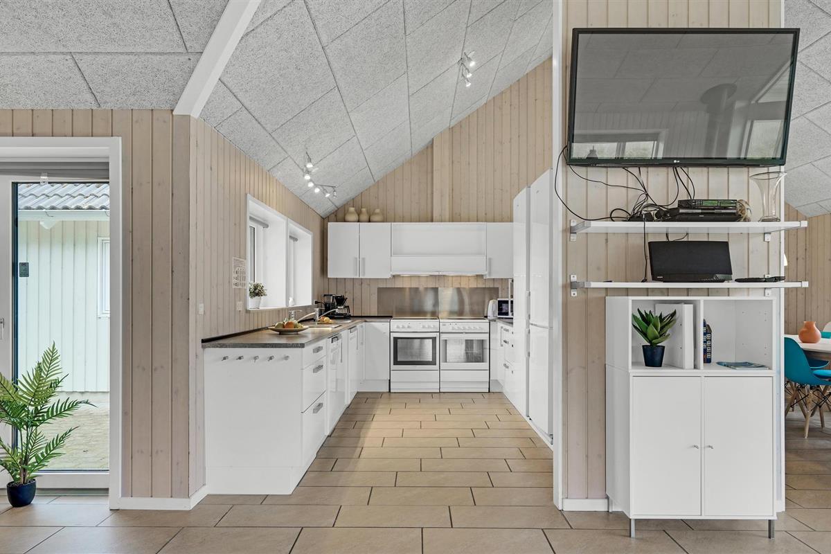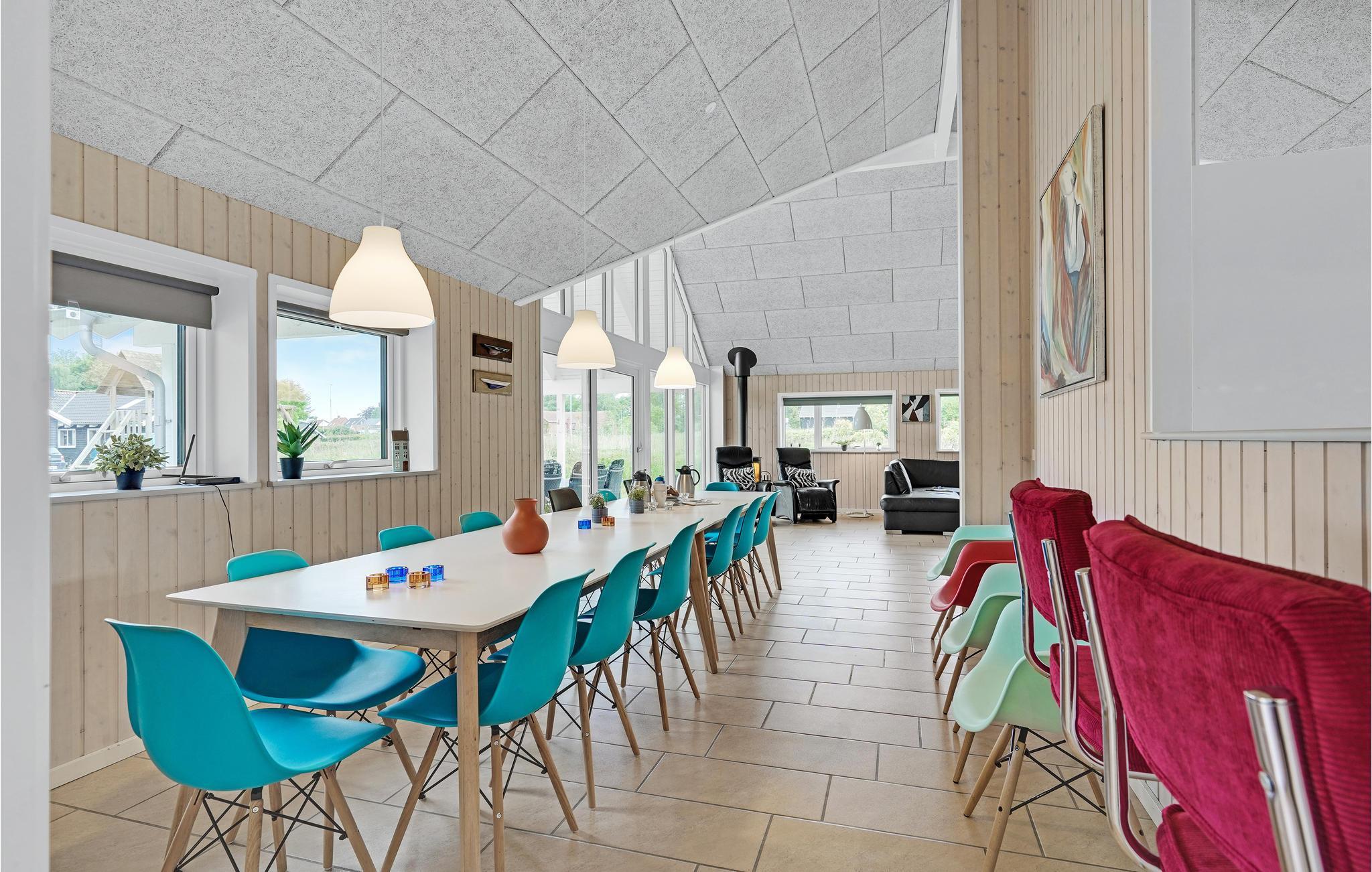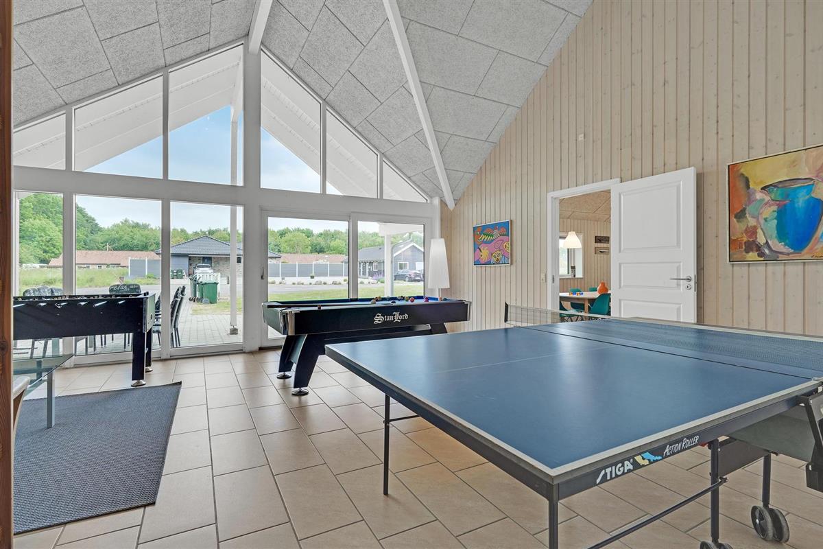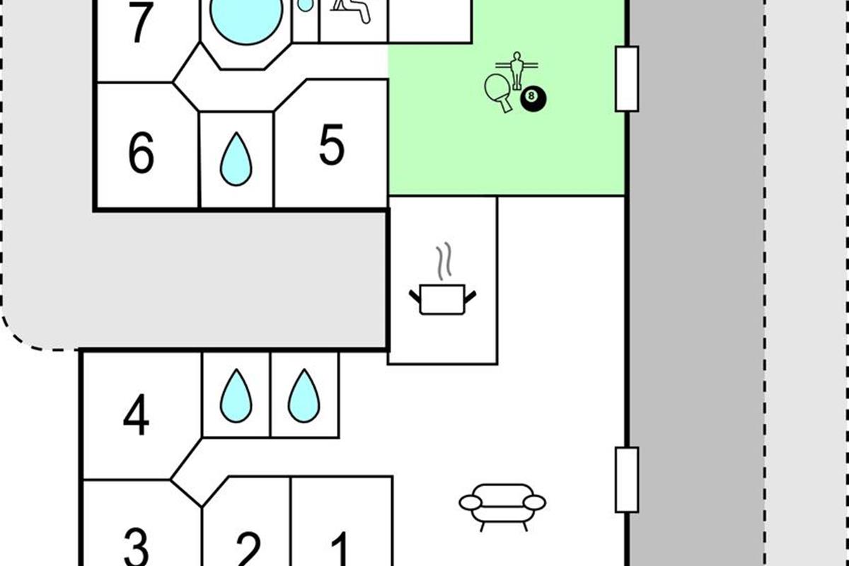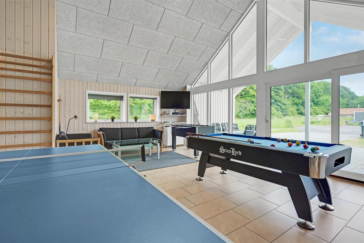 Fantastische kwaliteit houten huis in Lohals. Het is licht en mooi ingericht en herbergt moderne apparatuur. Er zijn 6 slaapplaatsen op slaapzolders. Er is een grote keuken-woonkamer in het midden van het huis en dient als ruimte voor gezellige samenkomsten om te koken en te ontspannen voor het gezellige vuur van de open haard. Ernaast is de activiteitenruimte. Een van de 4 badkamers in het huis heeft een whirlpool en toegang tot een sauna voor 3 tot 4 personen. Op het terras van 150 m², waarvan 50 m² overdekt, kunt u heerlijk zitten en genieten van uw vakantie. Op warme avonden kunt u hier ook barbecueën. In het charmante Lohals kunt u een mooie wandeling maken in de haven en langs de jachthaven.