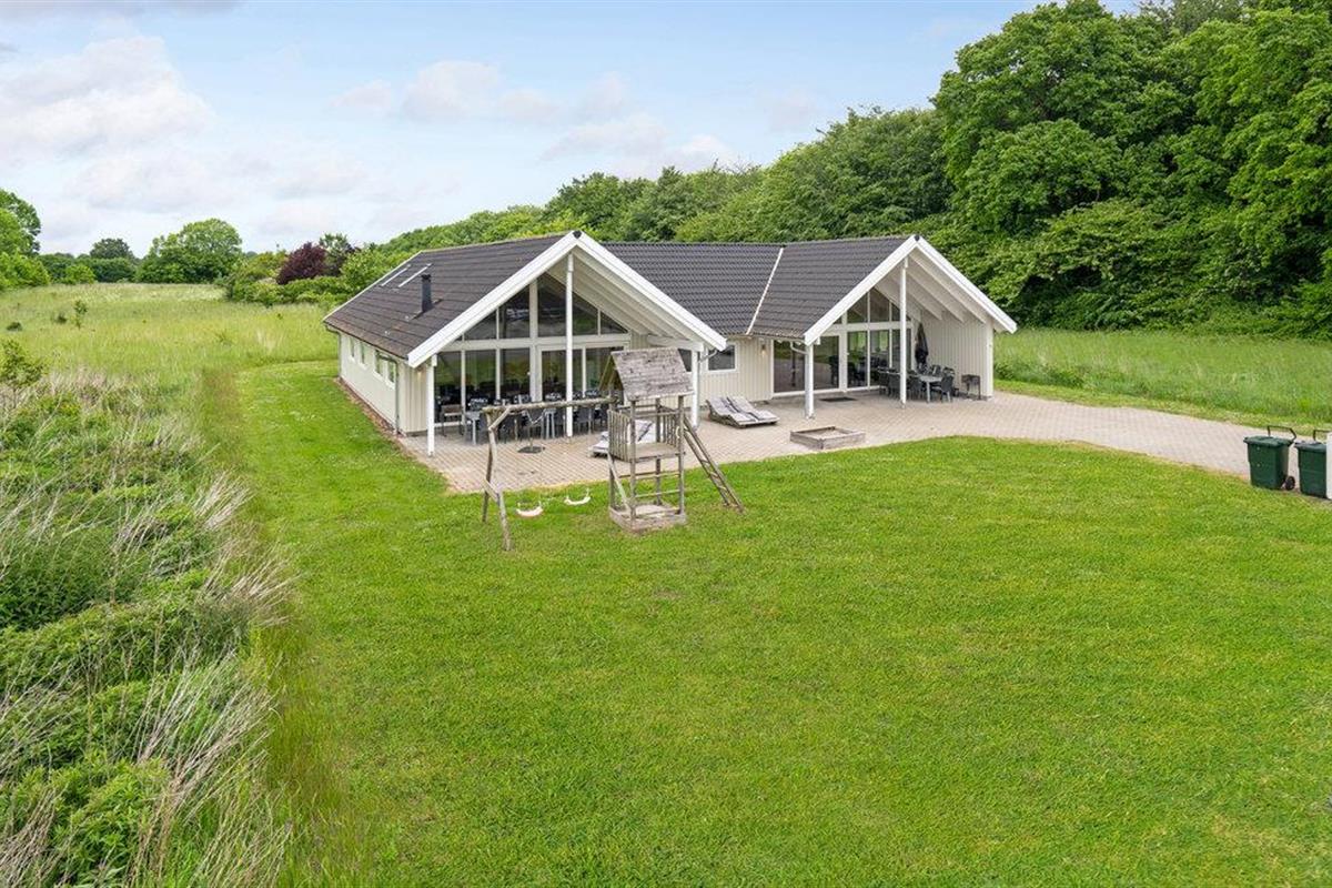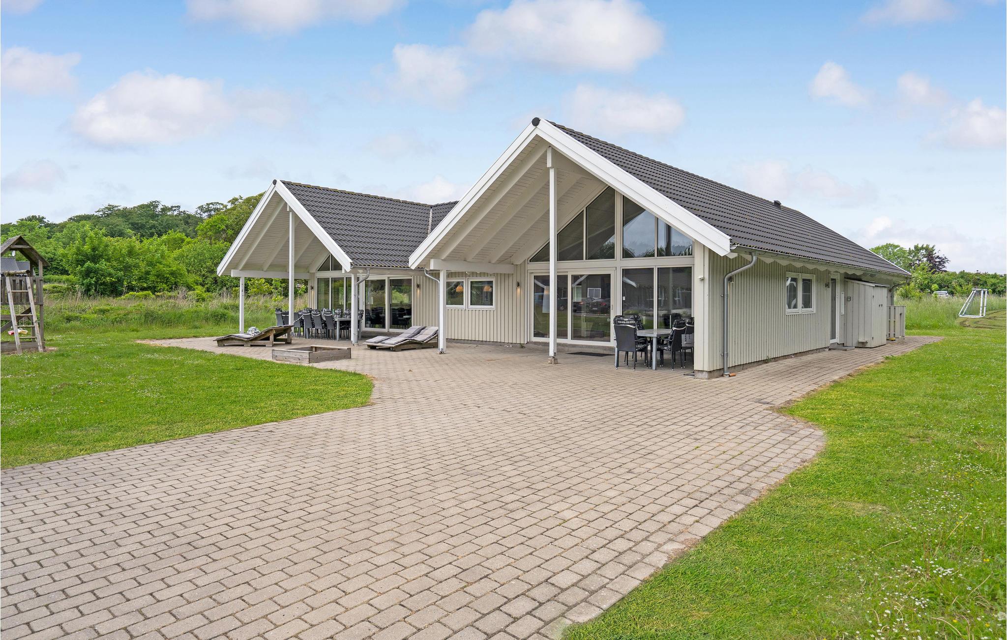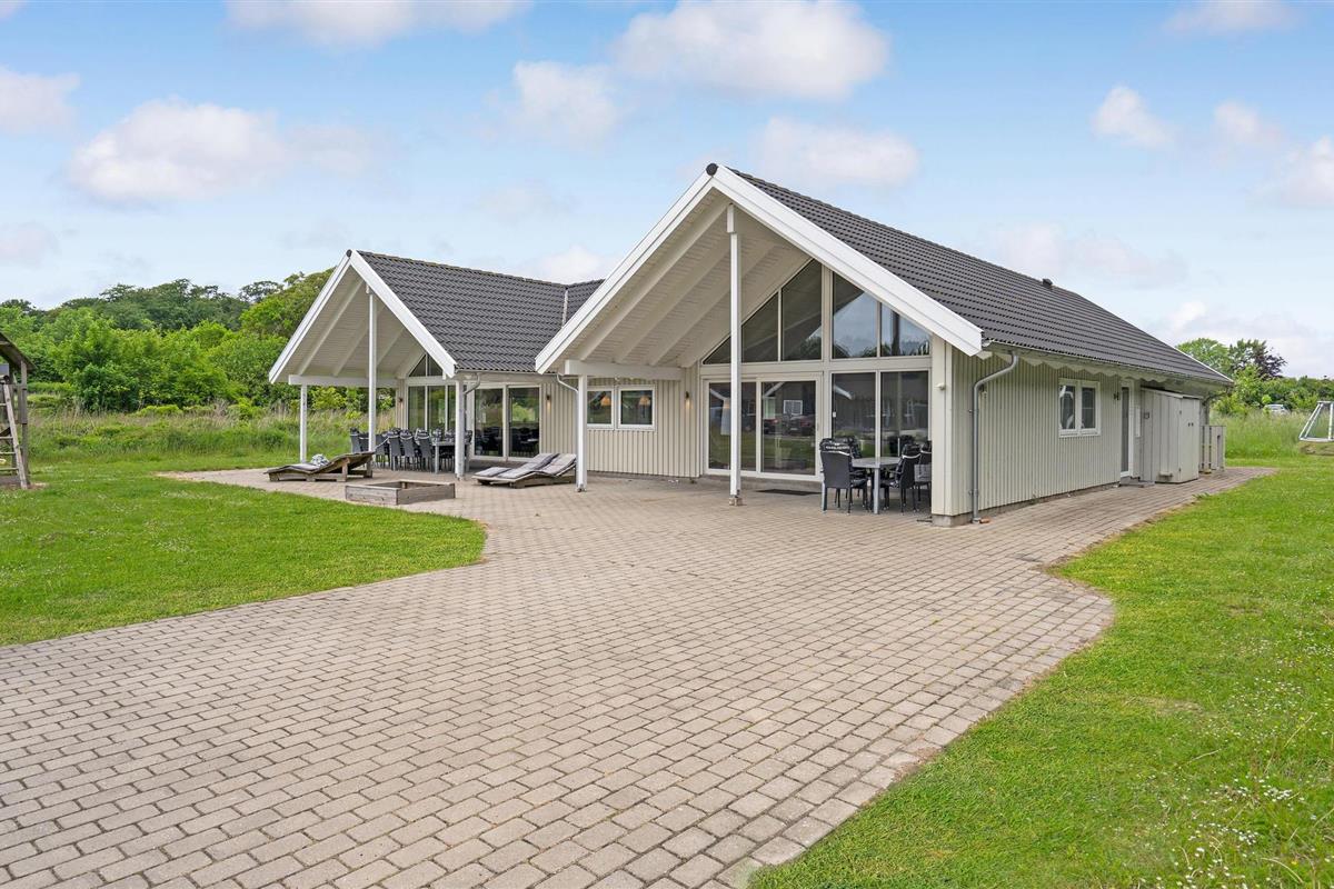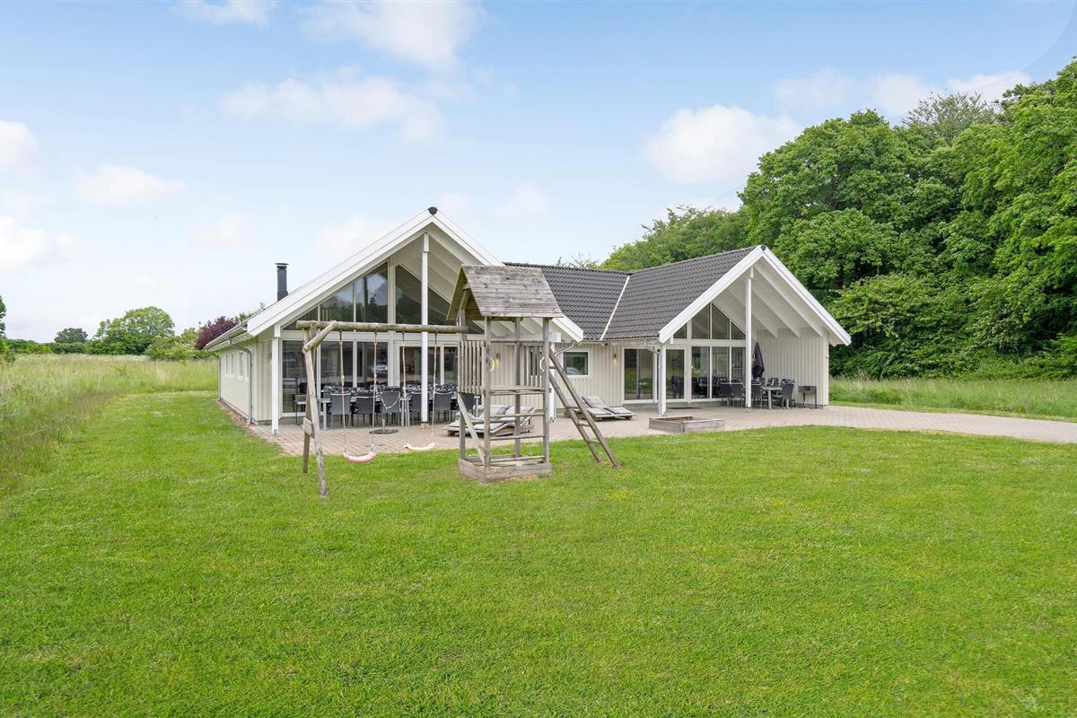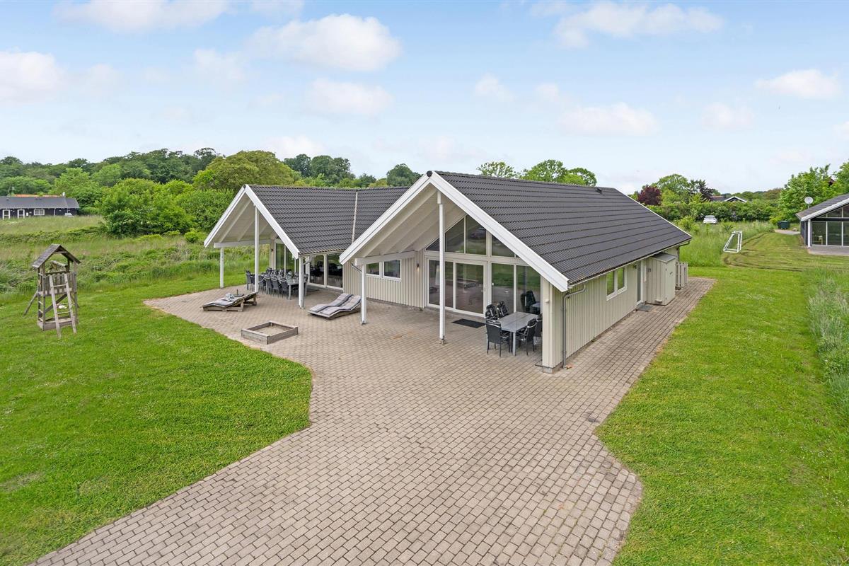 Licht en modern houten vakantiehuis met sauna, whirlpool, grote keuken en activiteitenruimte in Lohals, dicht bij zee.