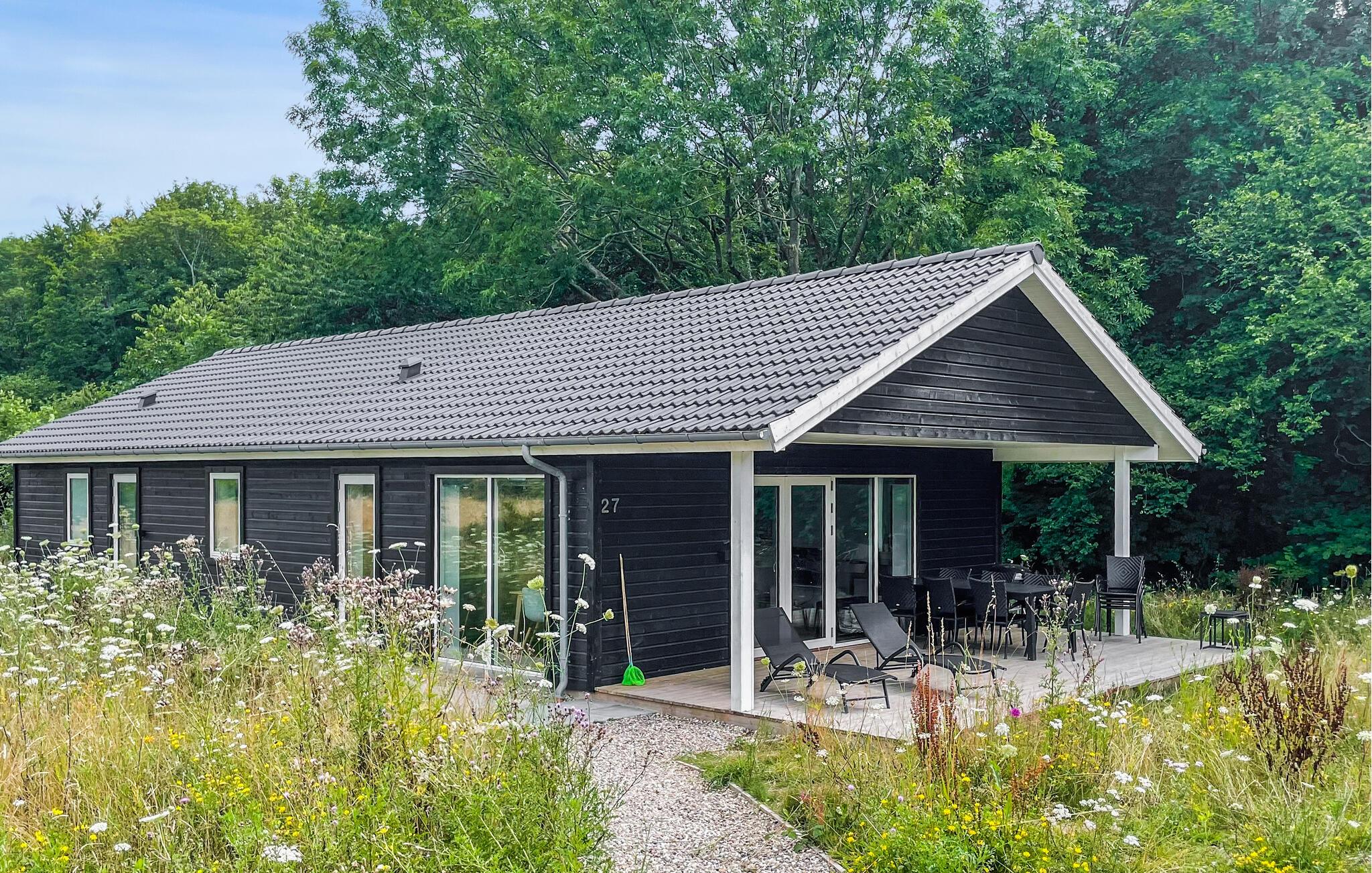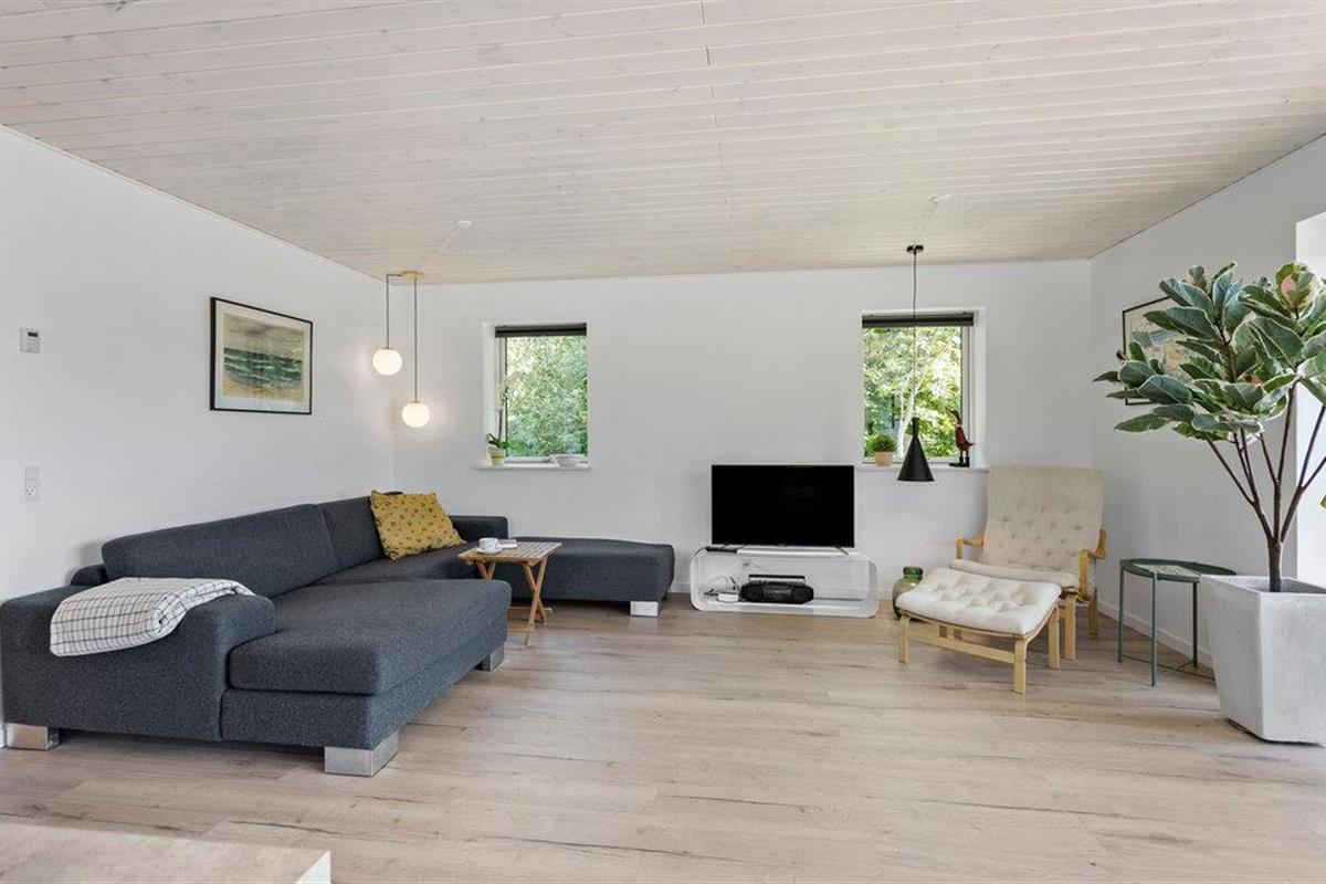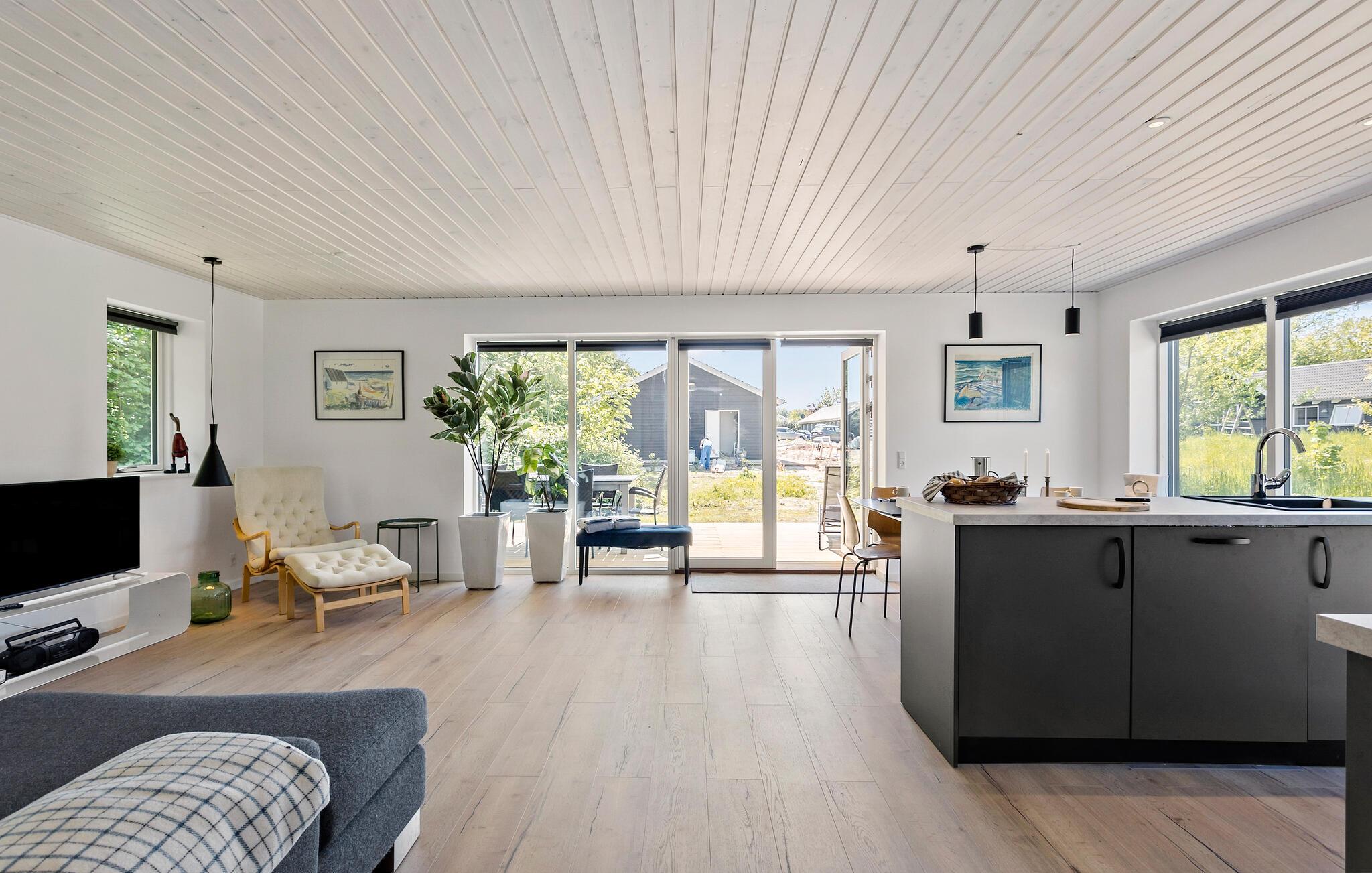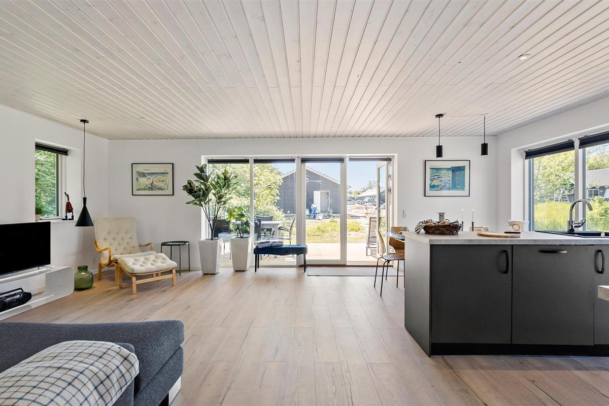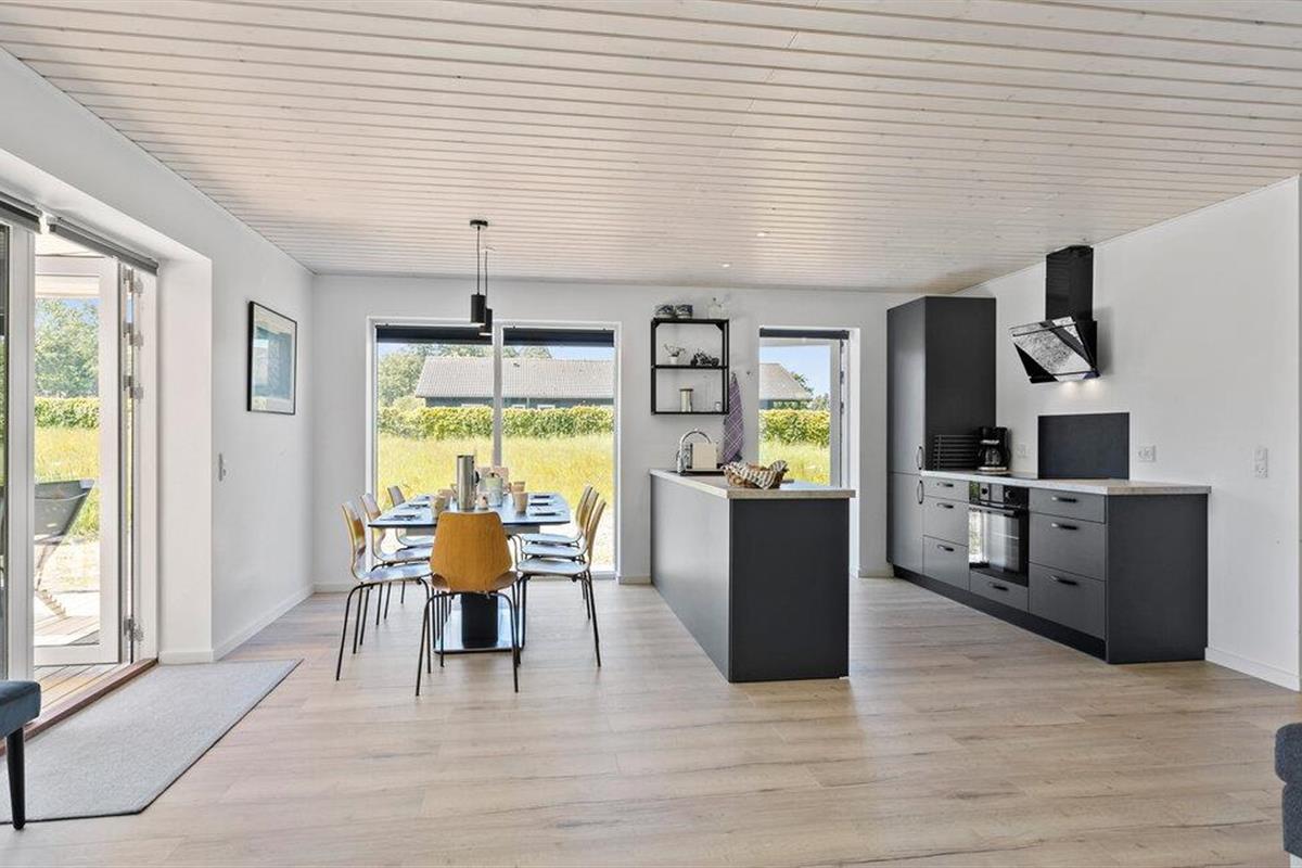 Geniet van een modern vakantiehuis op Langeland met whirlpool, open keuken en prachtig natuurterrein.
