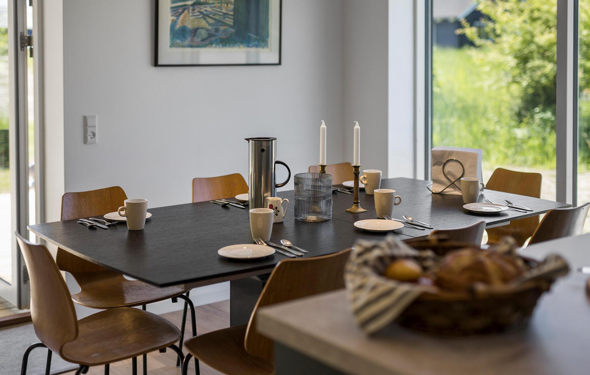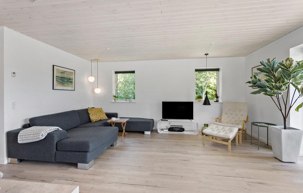 Dit vakantiehuis in het noorden van het eiland Langeland biedt ruimte voor een groot gezin. Het huis is licht ingericht en biedt een open woonconcept en grote ramen die van verschillende kanten licht binnenlaten in de ruime woonkamer en een prachtig uitzicht op het landschap bieden. Ontspan in de comfortabele zithoek en kom tot rust. De open keuken nodigt uit om samen te koken en heeft alles wat je nodig hebt voor je maaltijden. Dineer aan de eettafel met uitzicht op de tuin. Een whirlpool zorgt ook voor ontspanning en een goede sfeer.