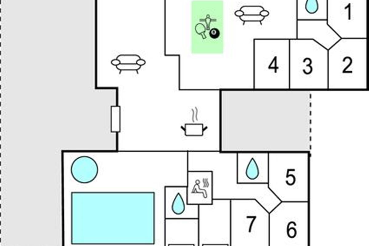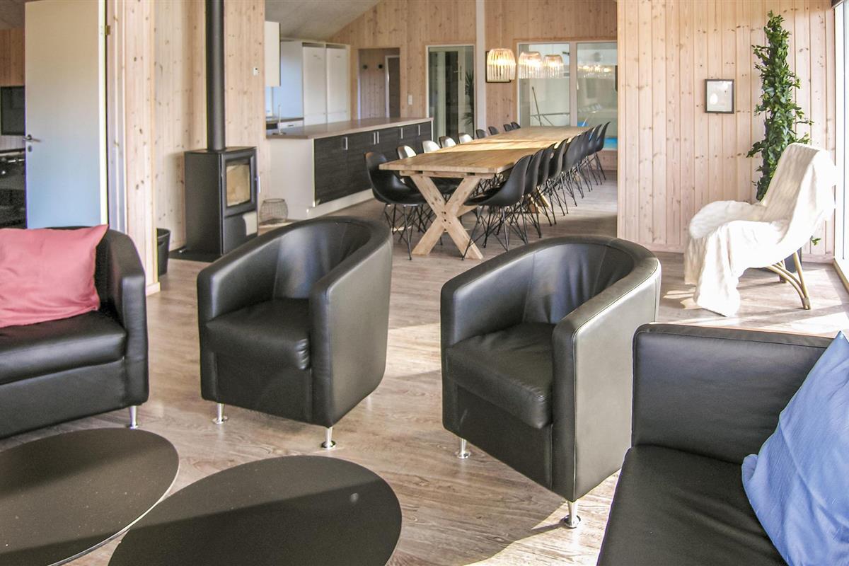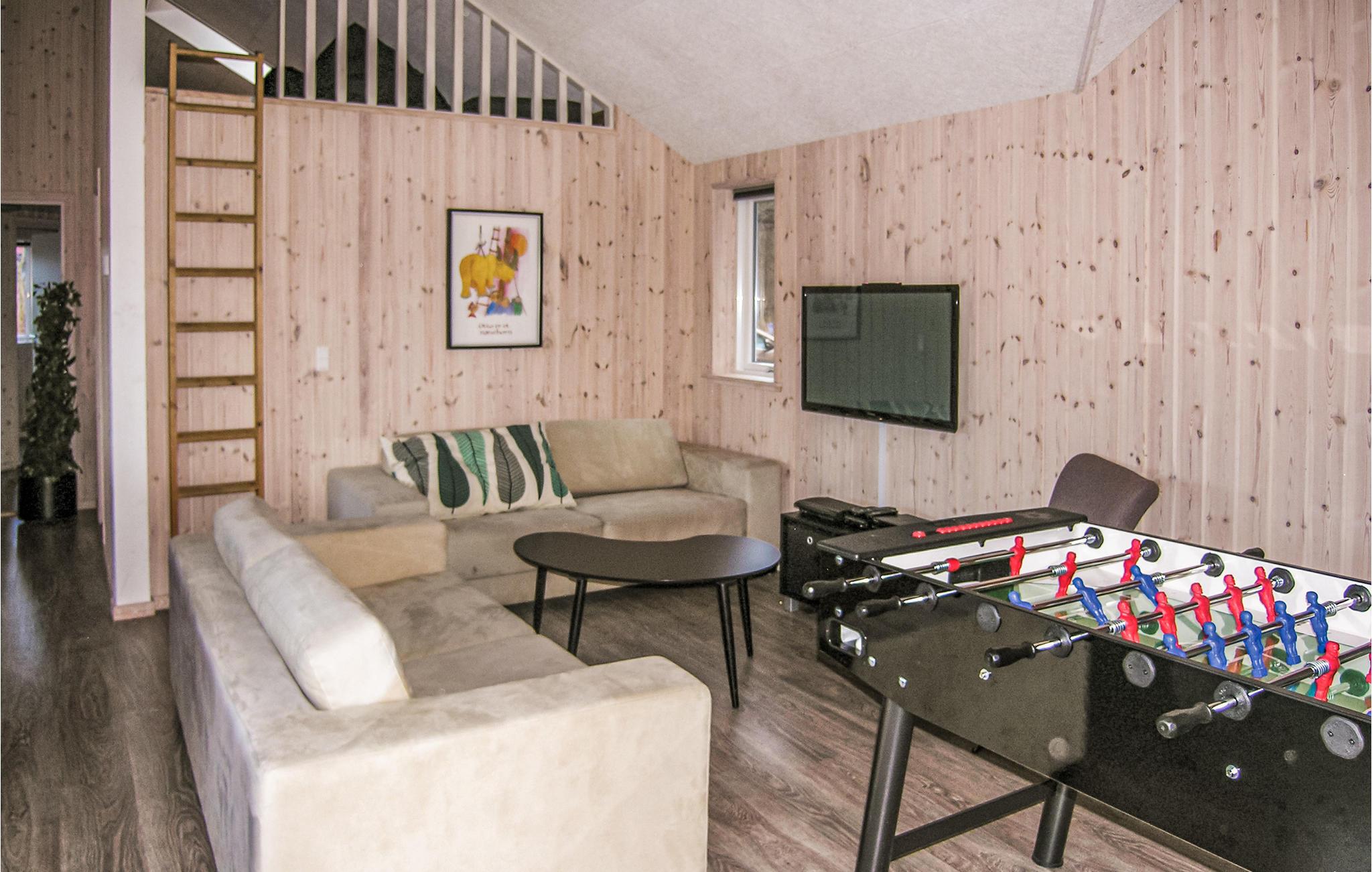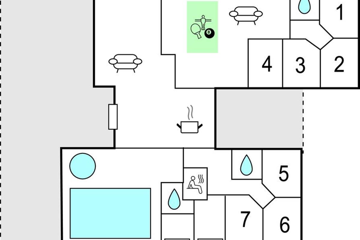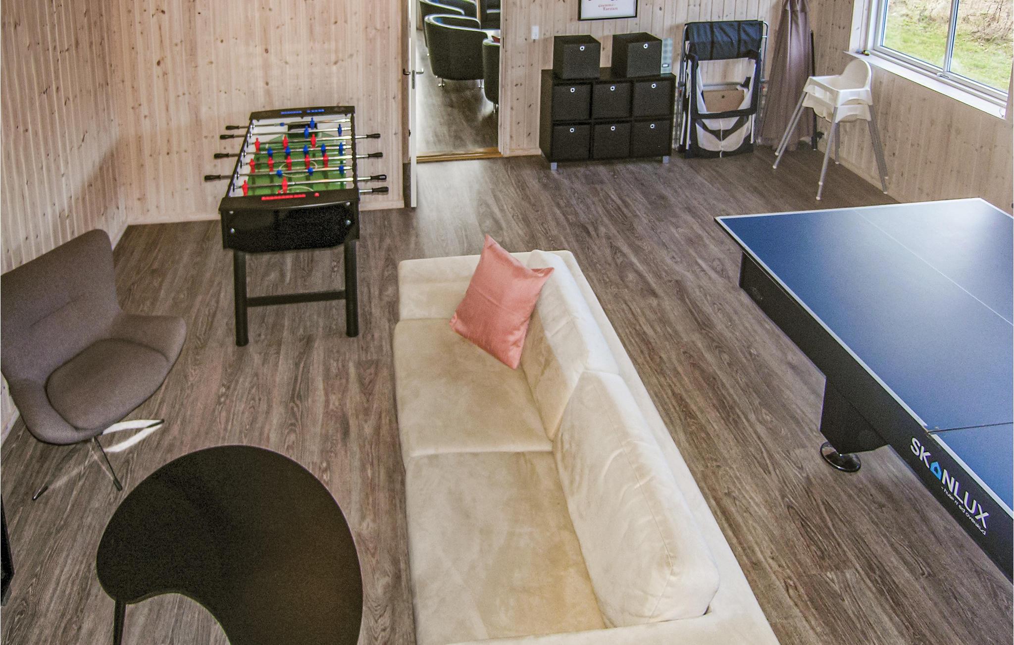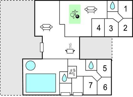 Uitnodigend, gezellig vakantiehuis. In het midden bevindt zich de keuken-woonkamer, hier kun je alles samen doen, van relaxen tot koken. Vooral rond de knisperende open haard is het gezellig. Nintendo Wii, Playstation 3, biljart, tafelvoetbal en biljart zorgen voor afwisseling. Zwembad, whirlpool en sauna laten niets te wensen over. Het terras is bijzonder geschikt om te barbecueën op de lange zomeravonden. Het voorschot voor de verbruikskosten en de eindschoonmaak wordt ter plaatse en contant betaald. Beddengoed, handdoeken, kinderstoel en kinderbedje kunnen bij het servicekantoor worden gehuurd.