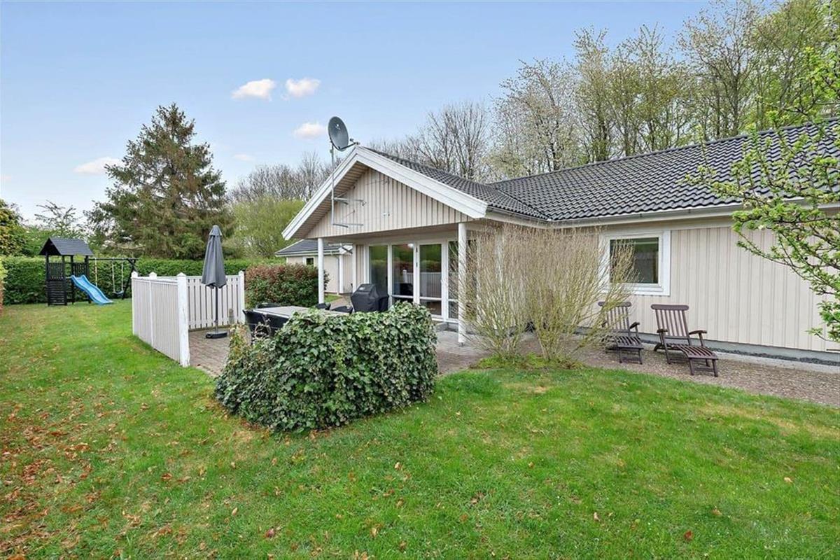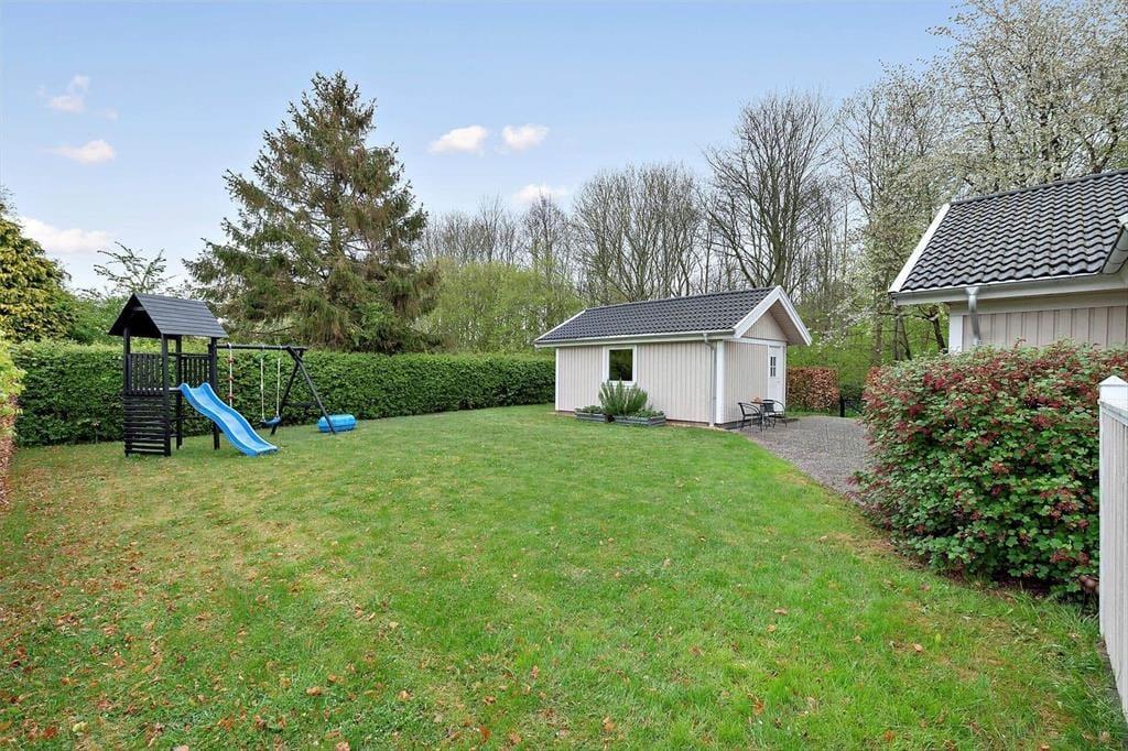 Genießen Sie das Leben im Freien Der Garten rund um das Ferienhaus ist eine kleine Oase, in der sowohl Kinder als auch Erwachsene Platz finden, um sich zu entspannen und zu spielen. Die teilweise überdachte Terrasse ist der perfekte Ort, um den Morgenkaffee zu genießen oder abends zu grillen, während die Sonne über Langeland untergeht. Für die jüngsten Familienmitglieder ist der Garten ein Paradies mit Schaukeln und einer Rutsche, wo viele Stunden mit Spielen und Lachen verbracht werden können. Der große Rasen lädt zu Ballspielen und anderen Outdoor-Aktivitäten ein, während der Carport dafür sorgt, dass das Auto im Schatten steht, wenn die Sonne hoch am Himmel steht. In diesem gemütlichen und privaten Garten können Sie wirklich die Urlaubsatmosphäre genießen, wenn die Ruhe einkehrt und der Duft von Grillgut in den Sommerabend zieht.