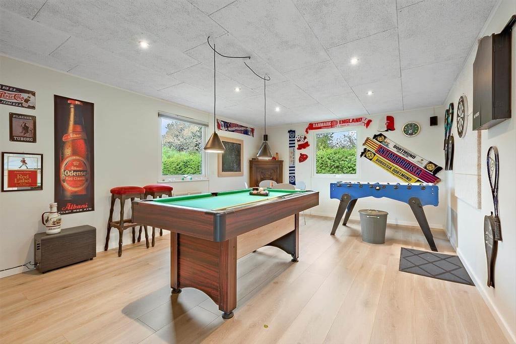 Willkommen im Haus Sobald Sie dieses einladende Ferienhaus betreten, werden Sie sofort die helle und ruhige Atmosphäre spüren, die das gesamte Haus prägt. Das Ferienhaus ist geschmackvoll mit modernen Möbeln und Details eingerichtet, die eine entspannte und angenehme Stimmung erzeugen. Die drei Schlafzimmer bieten bequeme Betten und gemütliche Rahmenbedingungen, sodass Sie und Ihre Familie nach einem erlebnisreichen Tag gut schlafen können. In der offenen, gut ausgestatteten Küche mit unter anderem Airfryer und Kaffeemaschine für ganze Bohnen, haben Sie zahlreiche Möglichkeiten, köstliche Mahlzeiten zuzubereiten, die am Esstisch oder auf der teilüberdachten Terrasse im Freien genossen werden können. Im Haus finden Sie auch 2 schöne Badezimmer mit Dusche, Fußbodenheizung und Haartrockner. Nach dem Abendessen können Sie sich im Wohnzimmer zu einem Filmabend versammeln oder vielleicht zieht es Sie in den angrenzenden Anbau mit dem Aktivitätsraum, in dem Sie sich beim Billard, Tischfußball, Dart oder Shuffleboard herausfordern können – alles in komfortablen Umgebungen mit einem praktischen Kühlschrank für kalte Getränke.
