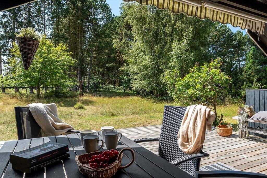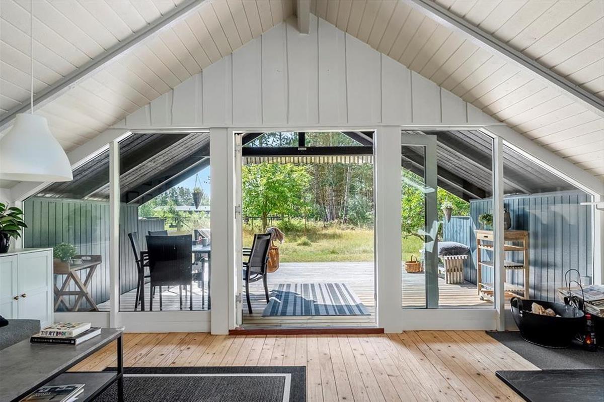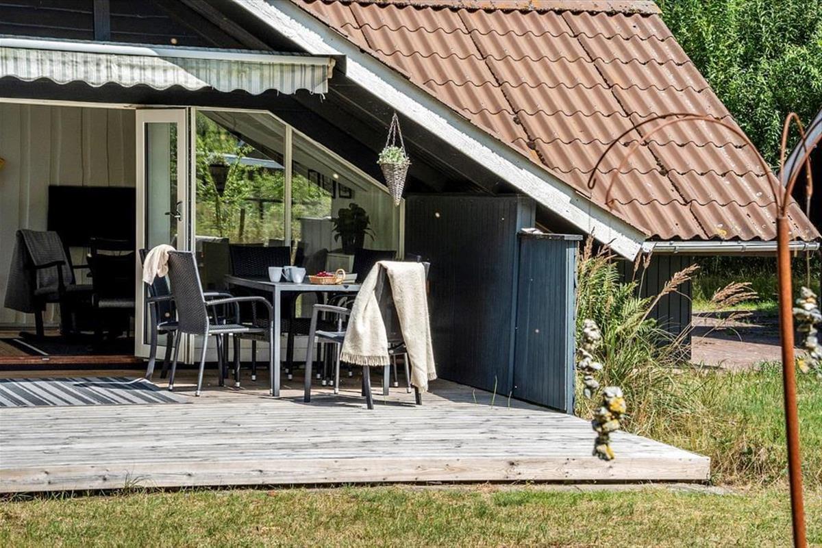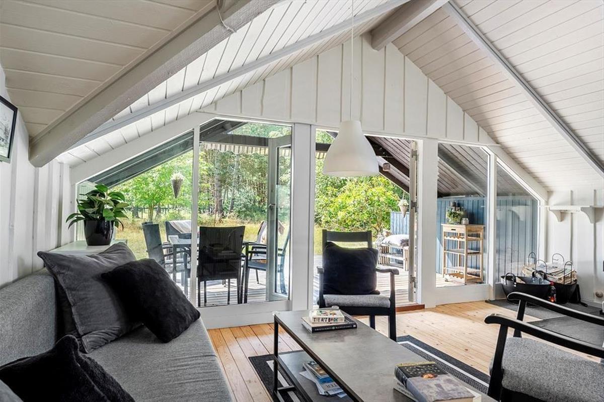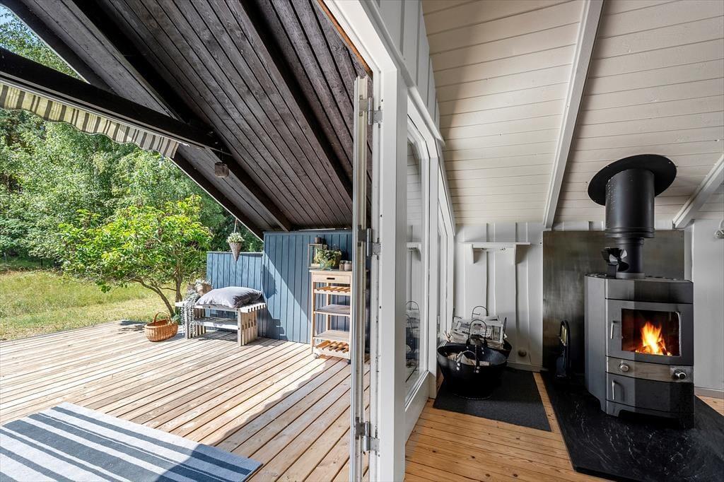 Das Sommerhaus befindet sich auf einem 927 qm großen Grundstück mit viel Platz für Outdoor-Aktivitäten auf der Rasenfläche. Das Haus verfügt über eine schöne Terrasse, die teilweise überdacht ist. Auf der Terrasse befinden sich Gartenmöbel und ein Grill.
