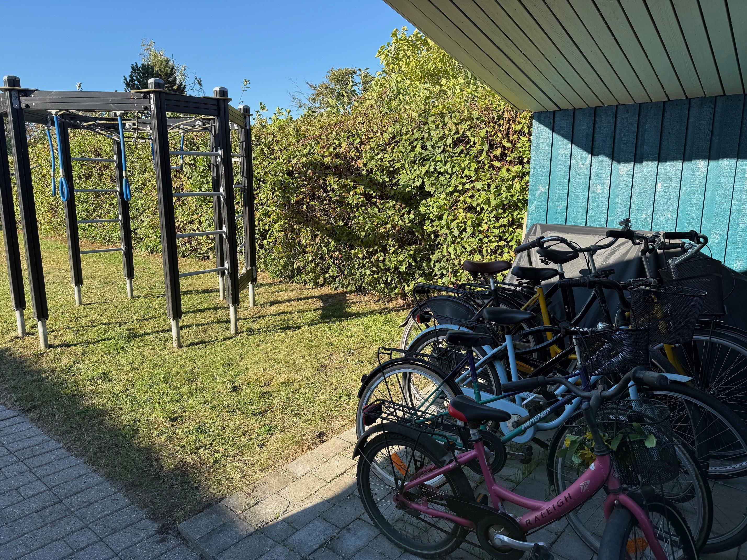 Outdoors: Relax on the large terrace with garden furniture and a grill — ideal for cozy evenings. For the children, there is a swing, climbing frame, moon cars, and various outdoor games. There are 5 bicycles available for use, including 3 children’s bikes in different sizes. Please leave the bikes in good condition for the next guests. The garden is fenced, and there is ample parking for your car.