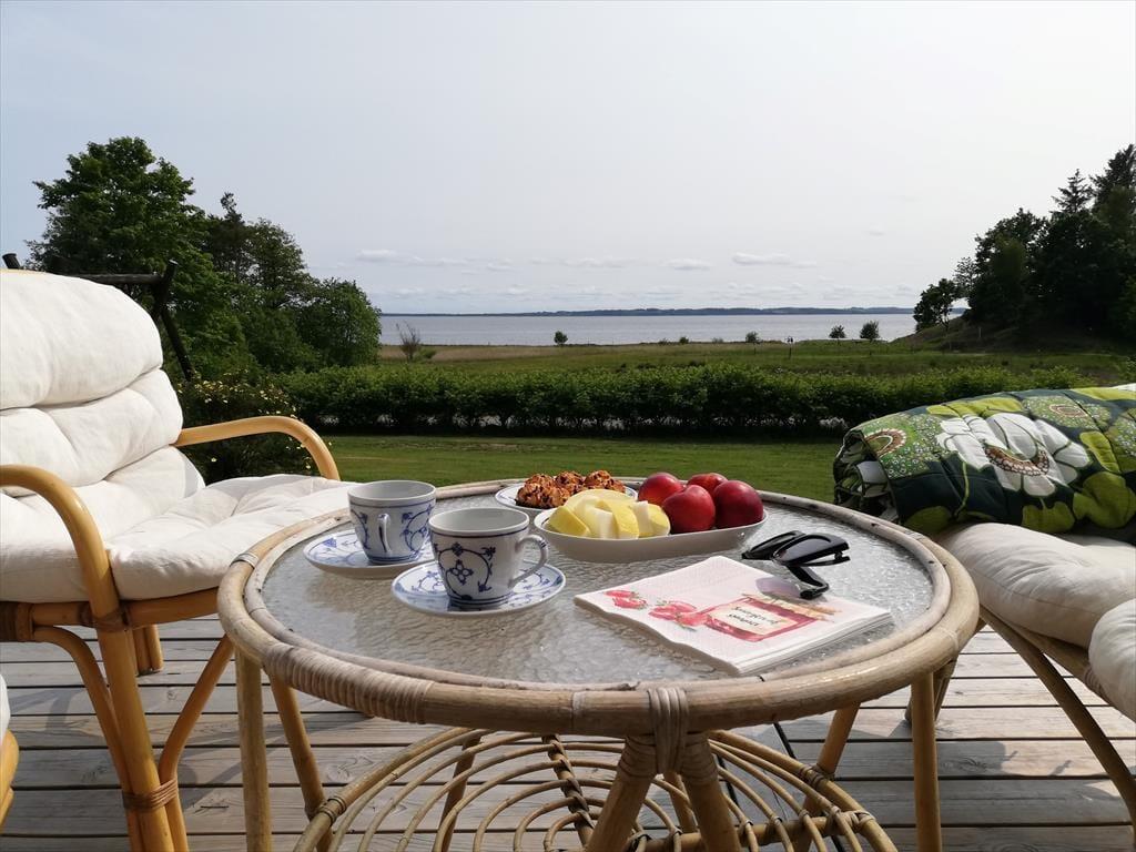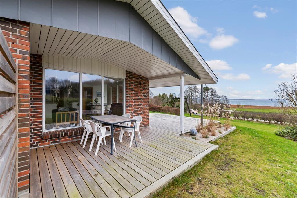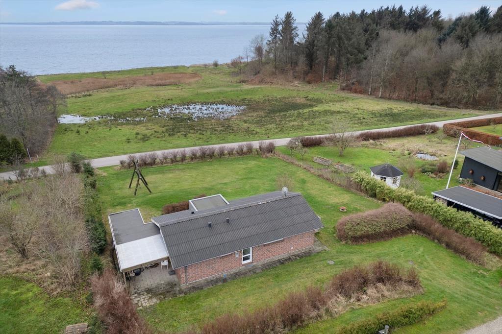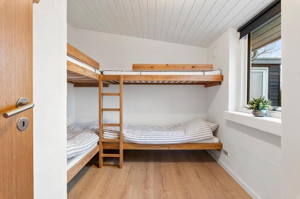 Im Inneren empfängt dich eine helle, moderne und einladende Einrichtung, in der die Räume offen und leicht wirken und das Tageslicht ungehindert einfällt und die entspannte Urlaubsstimmung unterstreicht. Das Wohnzimmer ist der natürliche Treffpunkt des Hauses, und hier lässt es sich wunderbar mit einer Tasse Kaffee niederlassen, während der Blick über die wechselnden Farben des Limfjords schweift. Der Panoramablick sorgt für eine besondere Ruhe, die es leicht macht, den Alltag vollständig hinter sich zu lassen. Küche und Wohnbereich sind offen miteinander verbunden, sodass Gespräche ganz selbstverständlich weitergehen – egal, ob gemeinsam gekocht oder am Esstisch gespielt wird. Wenn der Tag sich dem Ende zuneigt, kannst du dich zurückziehen und die Stille genießen, die nur vom Wind und den leisen Geräuschen der umliegenden Natur unterbrochen wird.