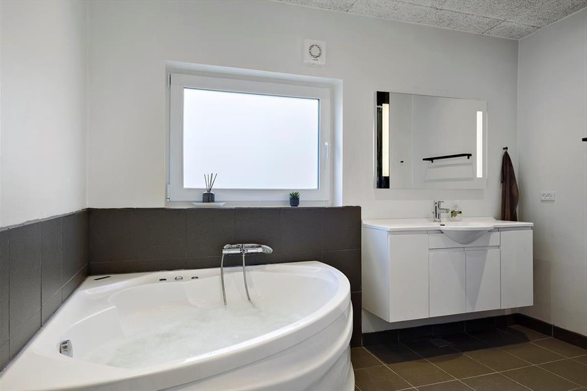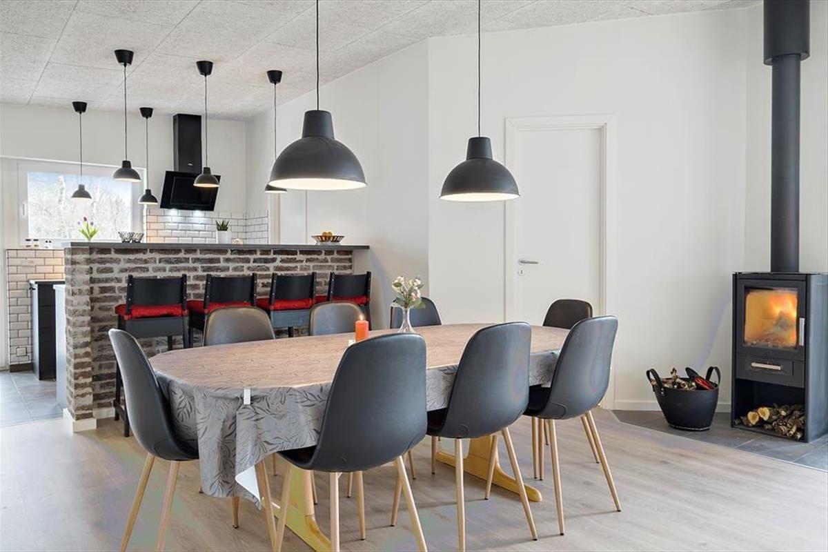 Mit einer Wohnfläche von 113 m² bietet Ihnen dieses ansprechend und modern eingerichtete Ferienhaus aus dem Jahr 2022 viel Raum zur Entfaltung. Das Herzstück des Hauses und somit der zentrale Sammelpunkt aller Mitreisenden ist der große Wohnraum, in dem Sie es sich vor dem romantisch knisternden Kaminofen gemütlich machen oder in der offen integrierten Küche köstliche Leckereien zubereiten und diese im Anschluss am Esstisch in geselliger Runde genießen können. Für ein wenig Unterhaltung sorgen derweil die Bluetooth-Lautsprecher und der Fernseher mit dänischen, schwedischen, norwegischen und deutschen Sendern. Besonders erholsam und entspannt geht es im Whirlpool und in der Sauna des Hauses zu, die sich auf die beiden Badezimmer verteilen. Beide Badezimmer präsentieren sich Ihnen genauso stilvoll und schön wie die übrigen Räumlichkeiten. Die Wohnfläche umfasst zudem vier Schlafzimmer, die alle mit hochwertigen Doppelbetten ausgestattet sind.