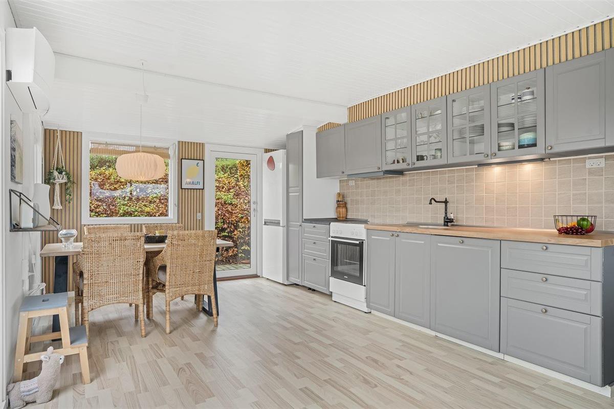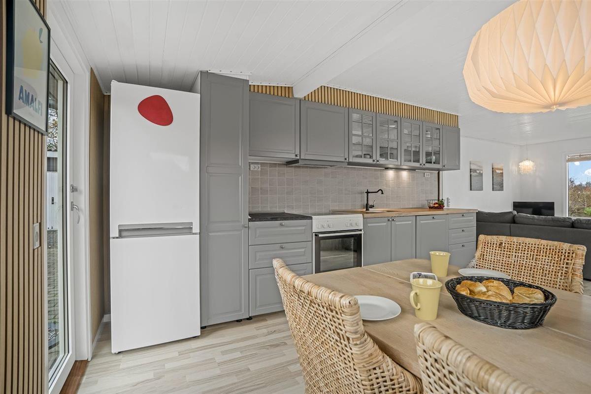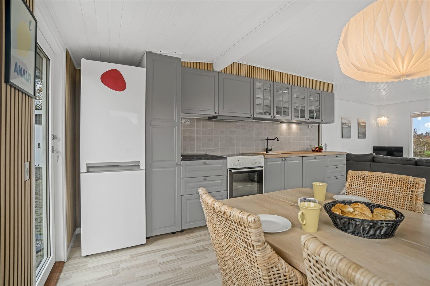 De keuken is uitgerust met koelkast Er is 4 elektrische kookplaten, heteluchtoven, magnetron en vaatwasser.