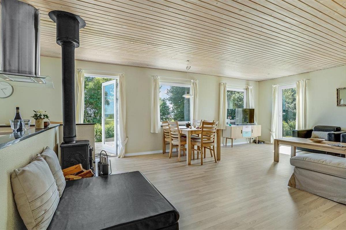 Met een prachtig uitzicht op de Limfjord verwelkomt je vakantiehuis op Louns Strand je in een rustige omgeving en nodigt je uit om te ontsnappen aan het leven van alledag. In het huis wachten lichte en functionele kamers op je. Het huis biedt veel ruimte voor het gezin of een groep vrienden. De open keuken is direct verbonden met het woongedeelte, zodat je kunt genieten van gezellige avonden samen koken en van gezellige uurtjes voor de houtkachel. Gebruik de ruime woonkamer om ontspannen te lezen of om te genieten van het uitzicht door de grote ramen. De eigen sauna en whirlpool zorgen voor nog meer ontspanning.