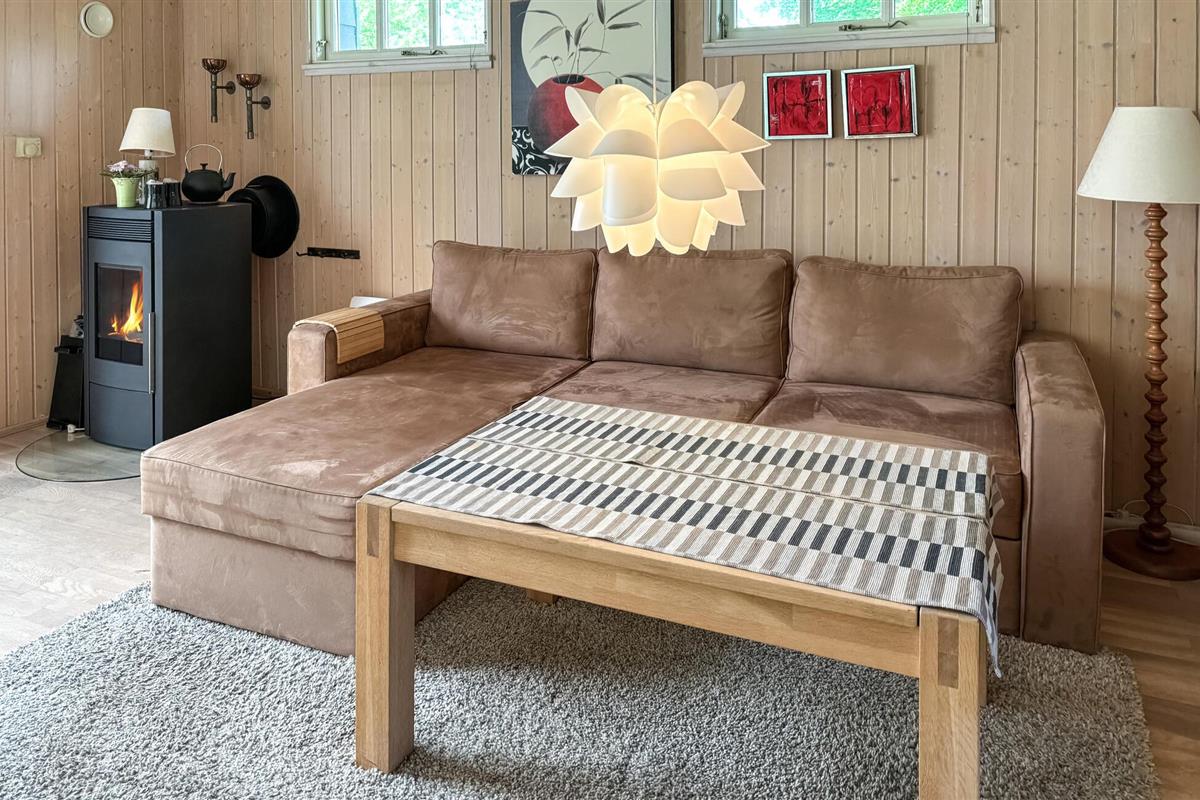 Pure gezelligheid en een echte feel-good sfeer verwelkomen je in dit mooie vakantiehuis niet ver van het fjord. Verheug je op gezellige kookavonden in de knusse keuken en vrolijke spelletjesavonden in de knusse woonkamer, terwijl de houtkachel zachtjes knettert. Rustzoekers vinden gezellige plekjes met uitzicht op het groen voor ontspannen uurtjes lezen.
