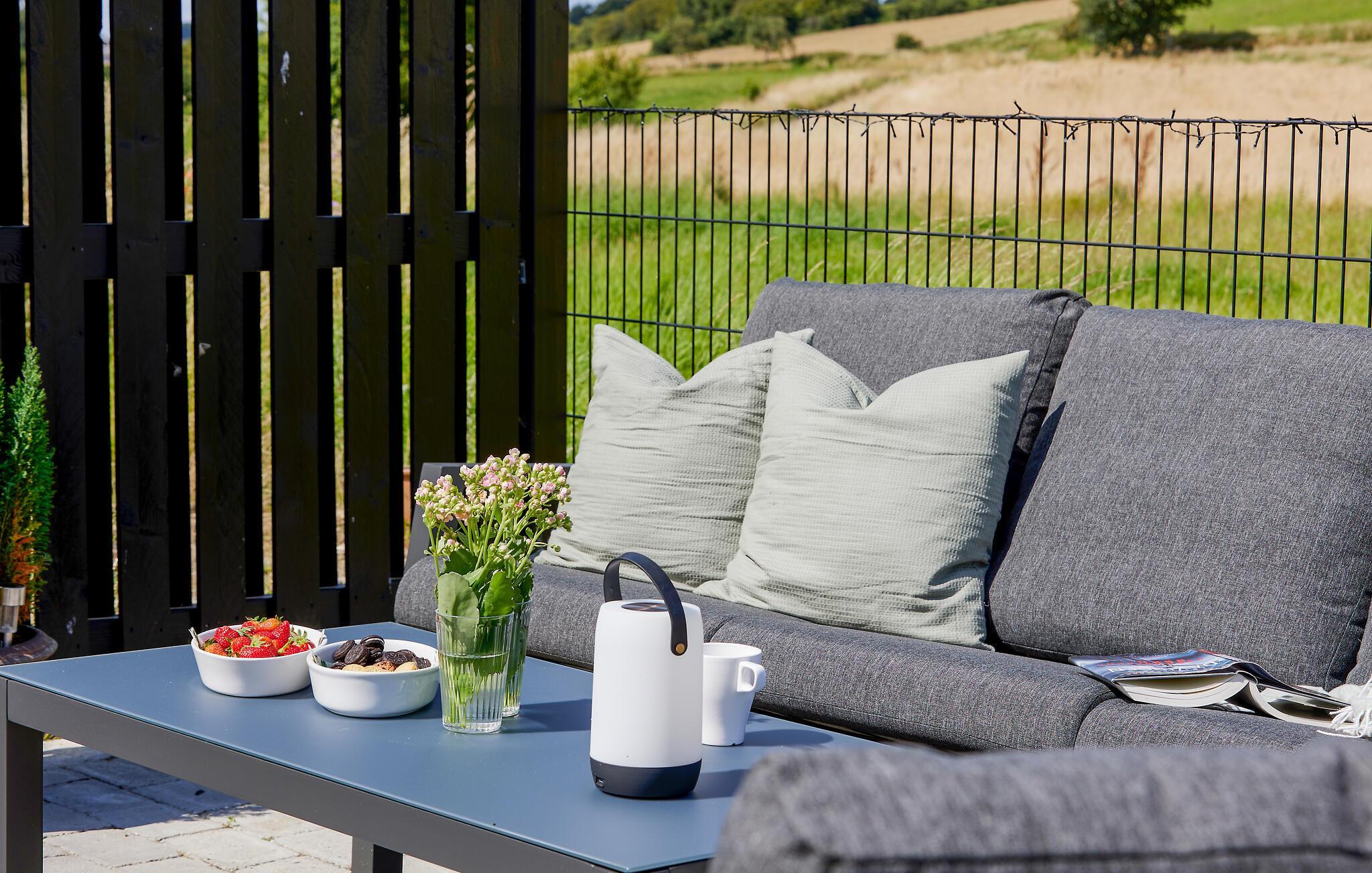 Geniet van de zon op het terras en laat je blik dwalen over de omgeving terwijl je het diner bereidt op de barbecue.